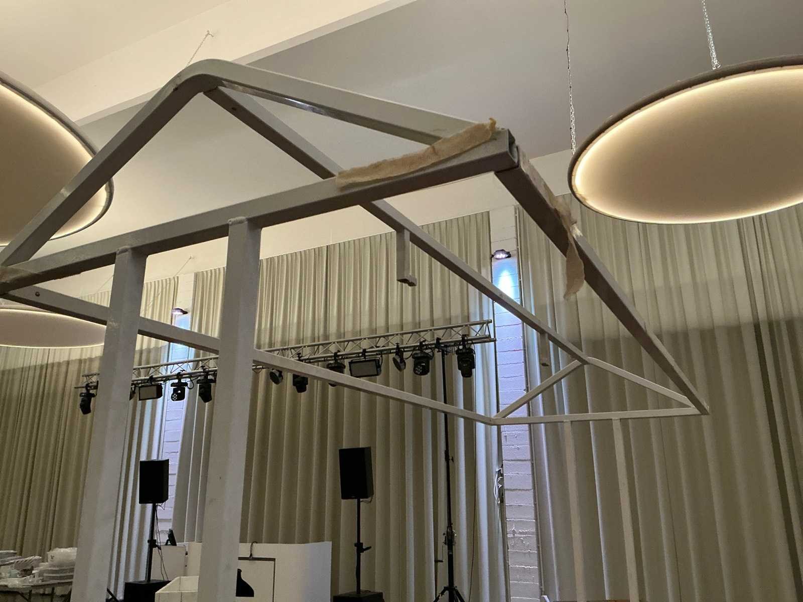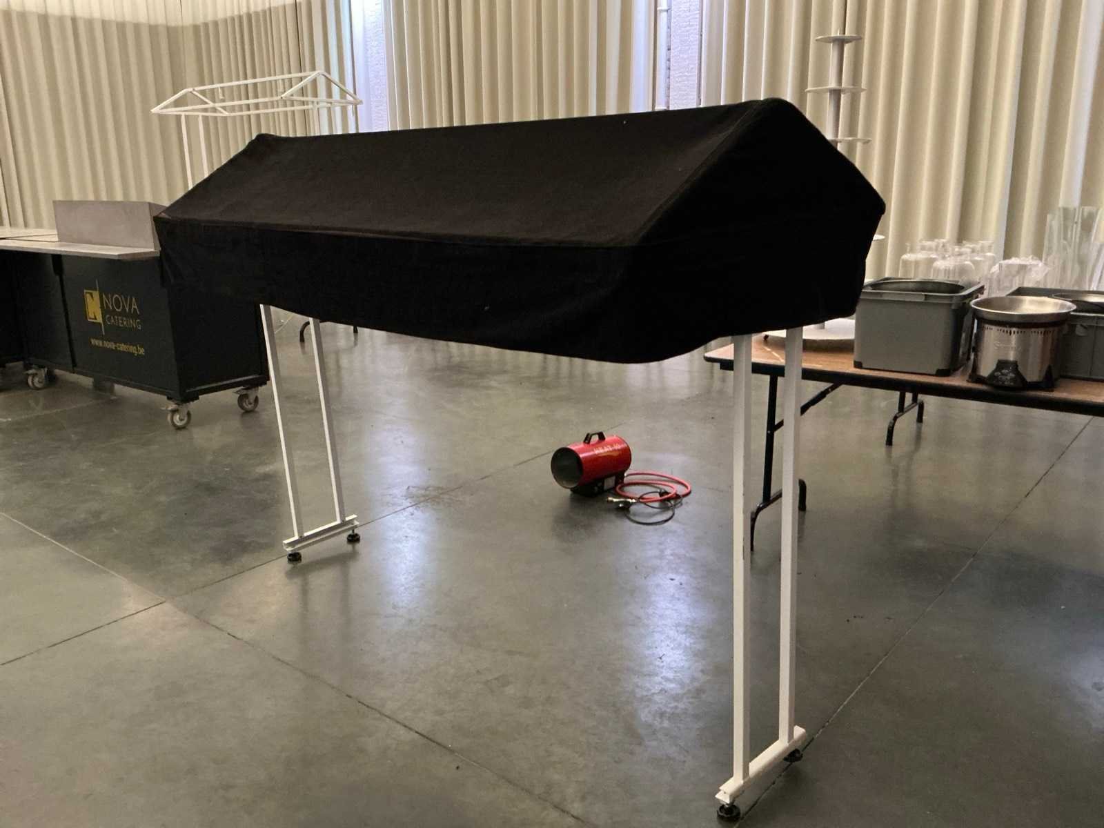 Bestaande uit 2 tafels van 2 meter lang en 3 opzet frames. Inclusief 2 soorten luifels voor “dakgedeelte”. Perfect voor bediening bij evenementen. Nee