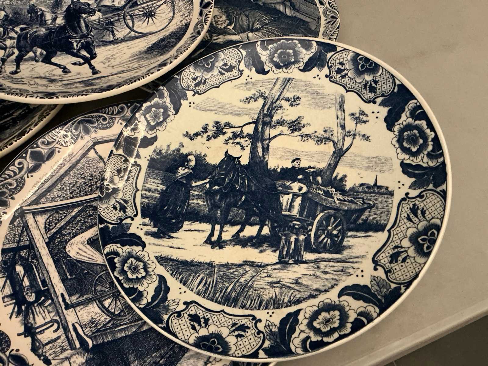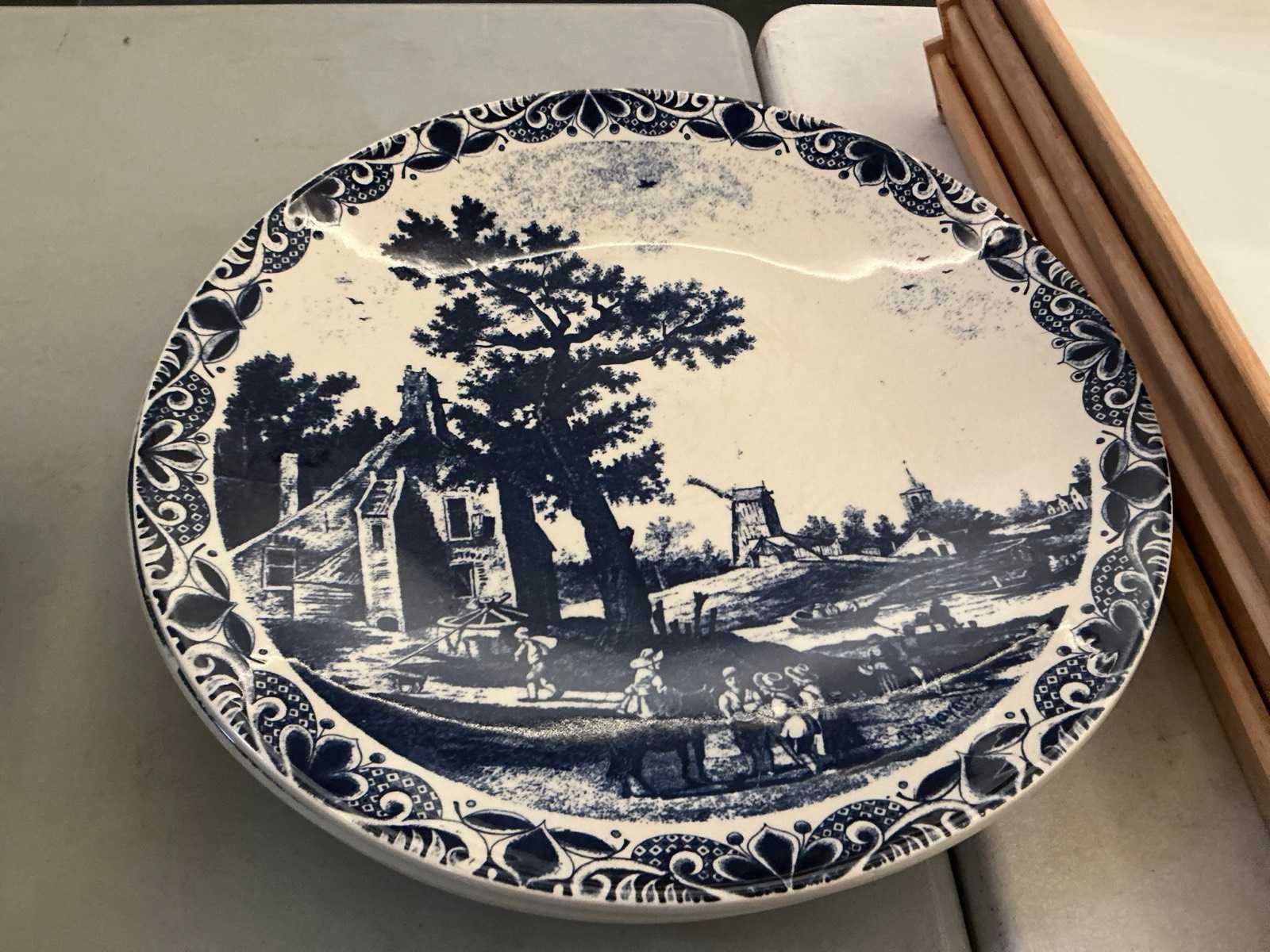17 schalen Delfts Blauw en 34 houten dienplateaus Nee