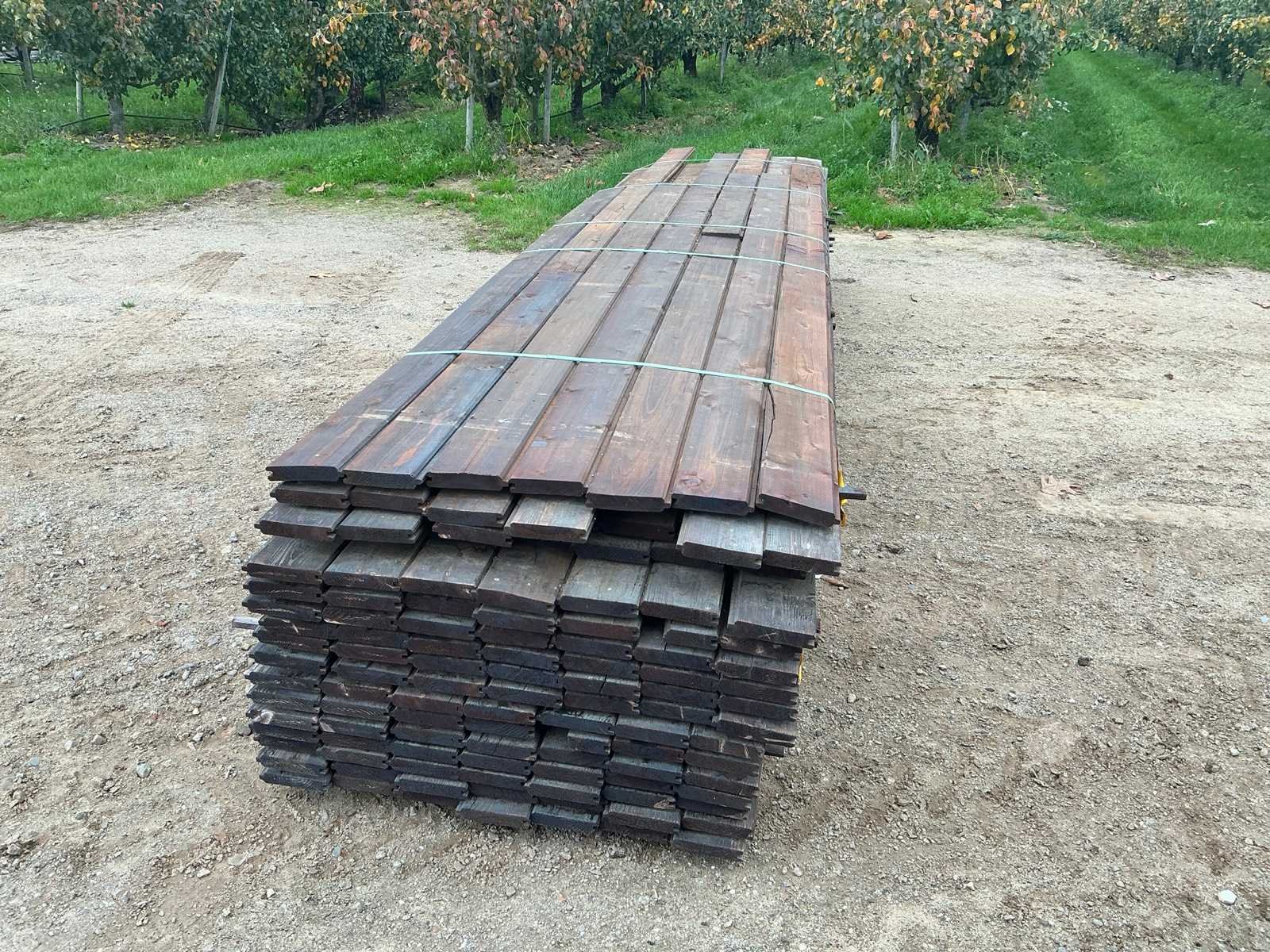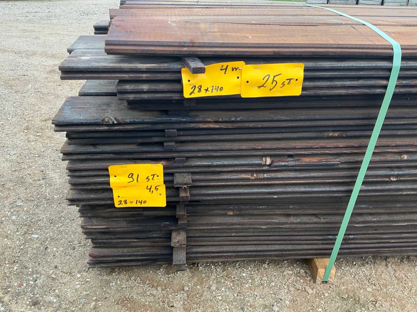Dit lot bestaat uit meerdere geïmpregneerd (behandelde) tand en groef planken. Als toepassing voor omheiningen en stallen. 1 pakket van 25 stuks lengte 4m en 1 pakket van 91 stuks 4,5m. No Merk: Grenen geïmpregneerde tand en groef planken 28x140x450 Houtsoort: Grenen Materiaal: Hout Lengte: 450cm Breedte: 140mm Hoogte: 28mm Kleur: Zwart Leveringsvoorwaarden: Heftruck aanwezig