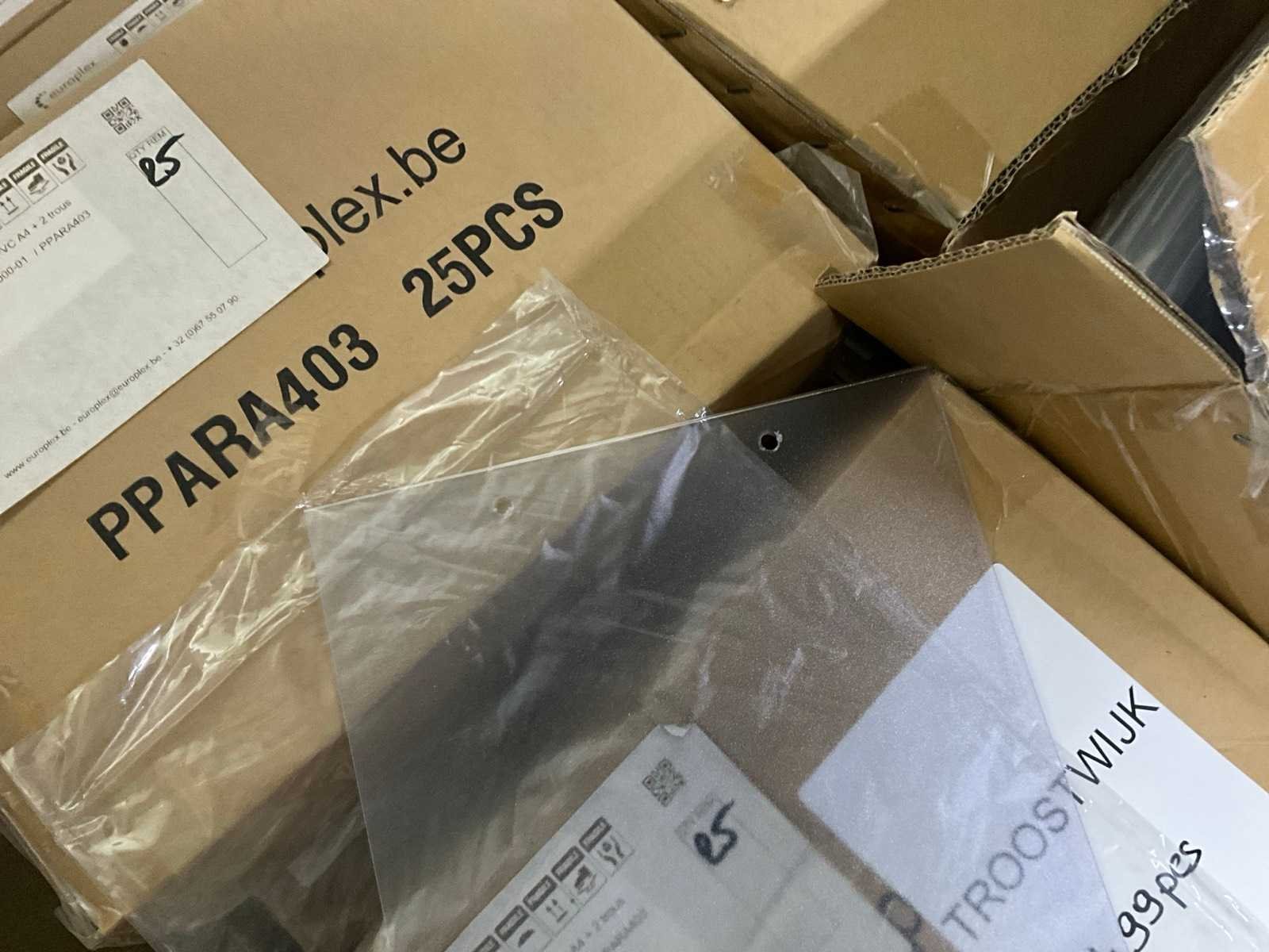 Set plastic zakjes om te plakken met gaten waar de vellen verwisselbaar zijn in A3 - Set van 499 zakjes - Nieuwstaat - nog verpakt - per doos van 25 stuks - Hangt met gaatjes aan de bovenkant van het zakje Verkocht zoals het is - zie foto's Non