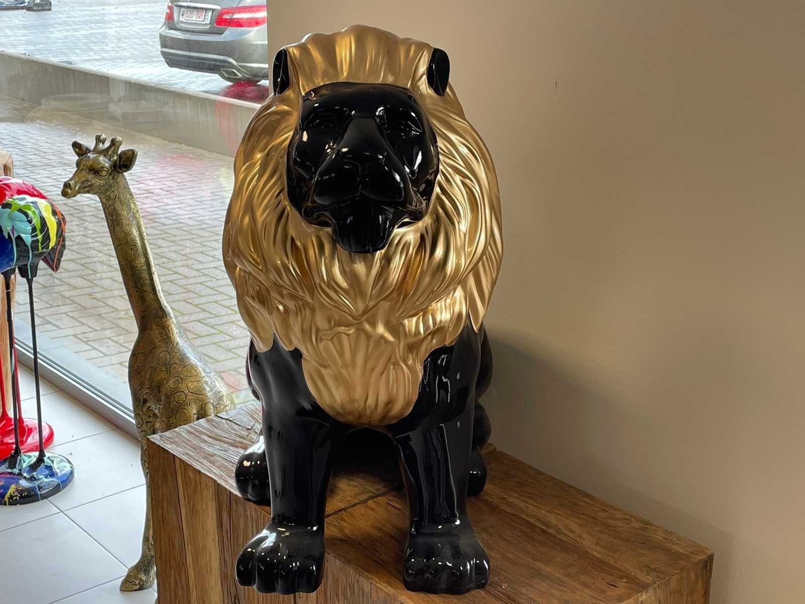 Leeuw zit H70cm Zwart/Goud Polyester / Polystone Stockverkoop wegens stopzetting activiteiten!!! No Hoogte: 70 Materiaal: Polyester Leveringsvoorwaarden: Niet gefundeerd - onverpakt