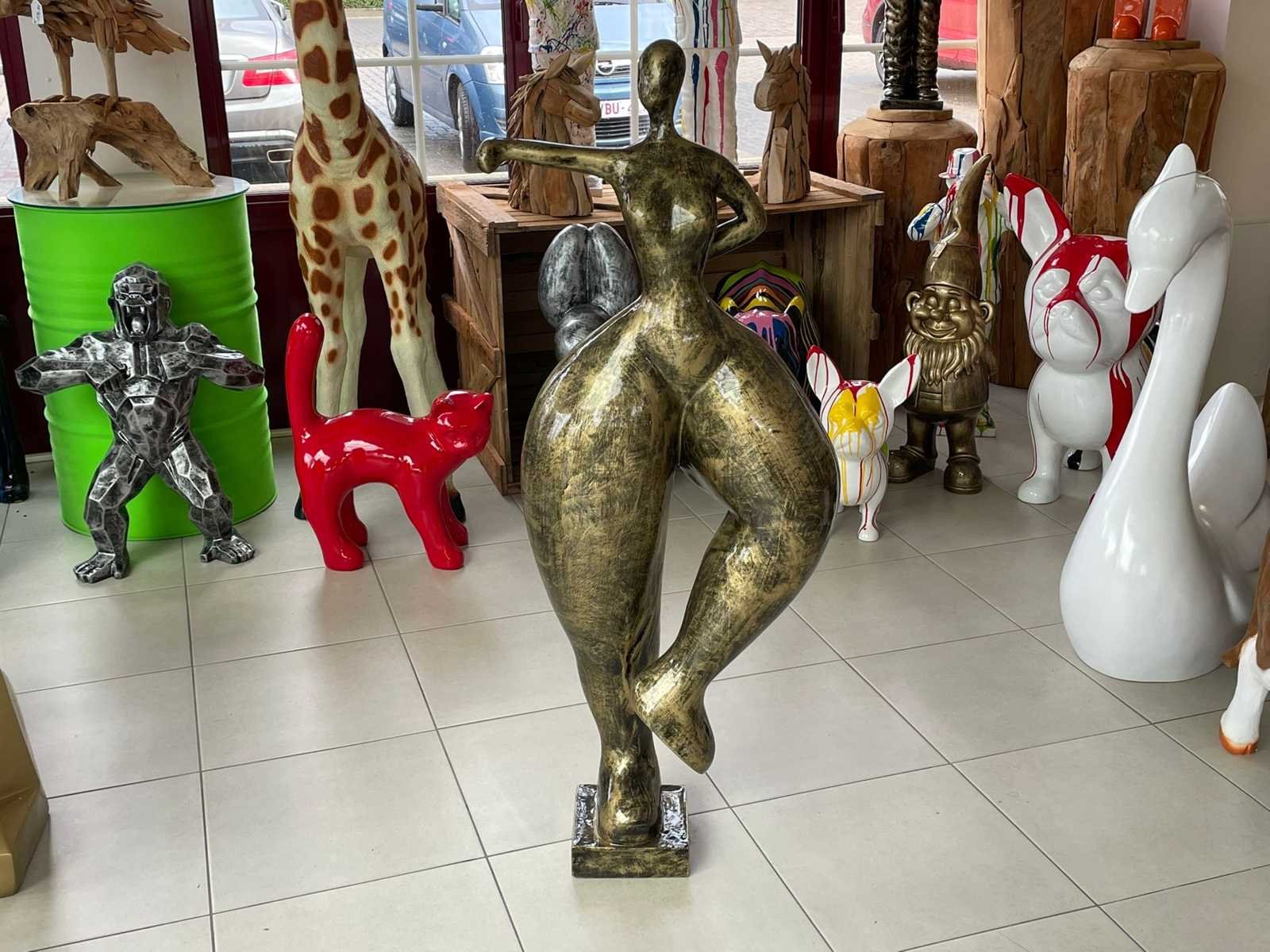 Dame op sokkel H135cm Old Gold Polyester / Polystone Stockverkoop wegens stopzetting activiteiten!!! No Hoogte: 135 Materiaal: Polyester Leveringsvoorwaarden: Niet gefundeerd - onverpakt
