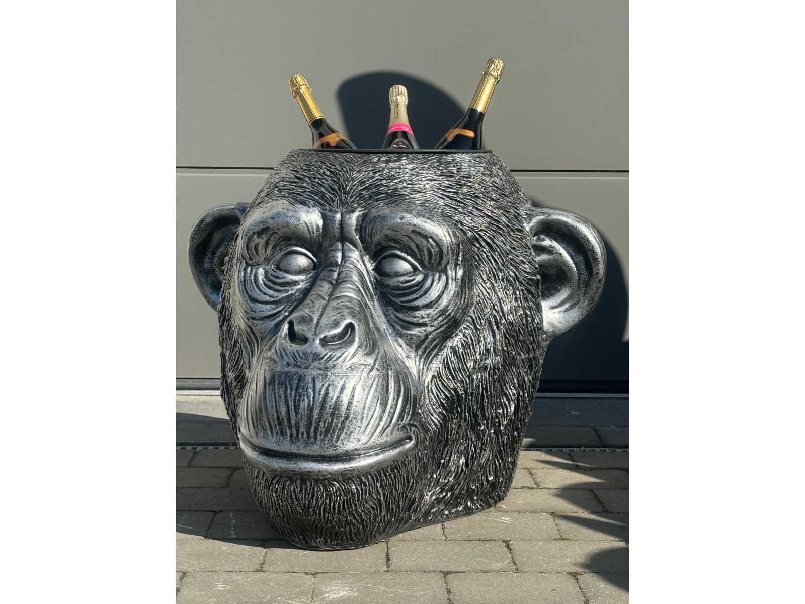 Apenkop als champagne emmer / bloempot (gemengd gebruik) old silver h70cm