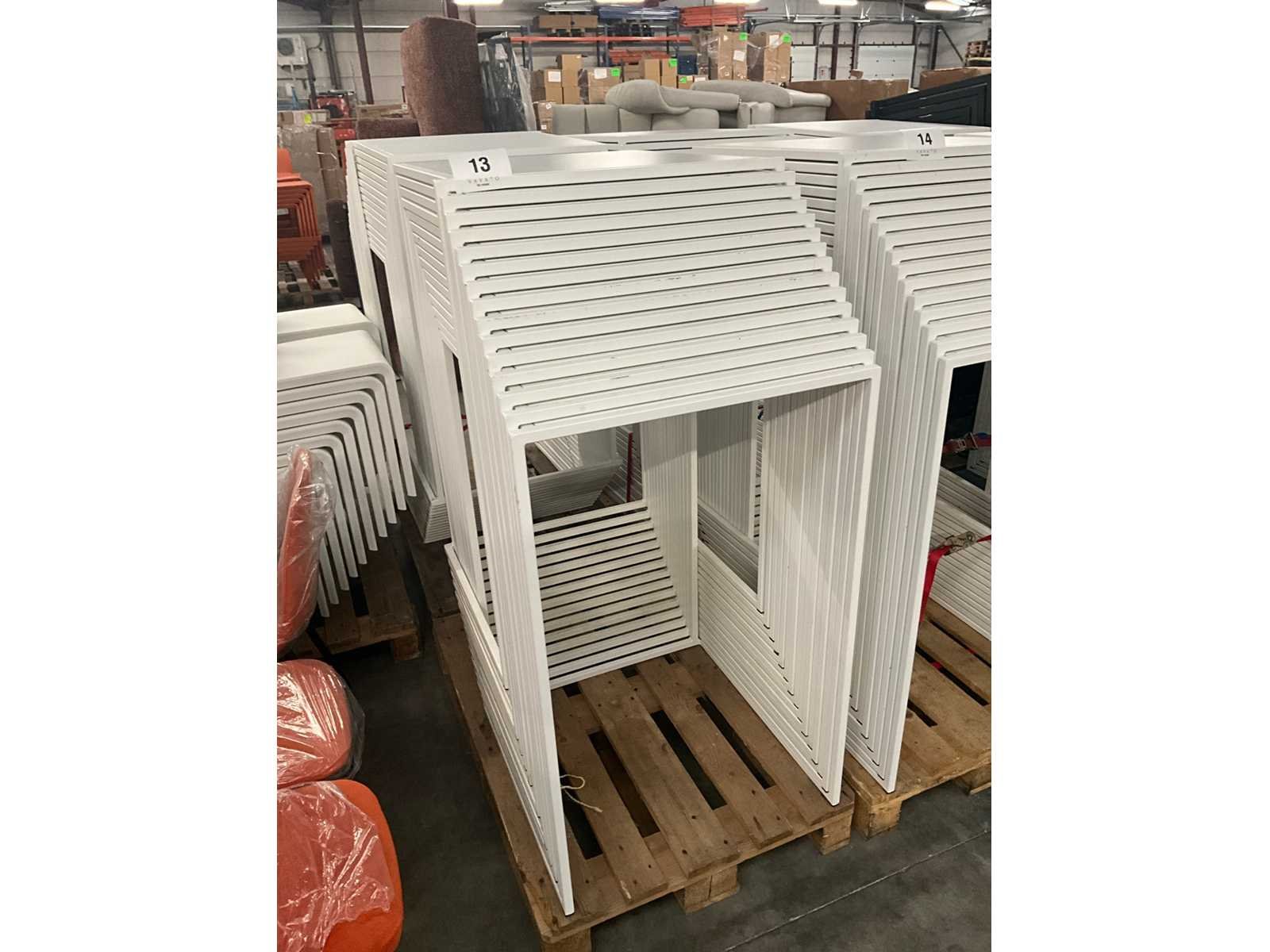 Stapelbaar, op pallet Nee Kleur: Wit Lengte: 70cm Breedte: 70cm Hoogte: 109cm Materiaal: Metaal