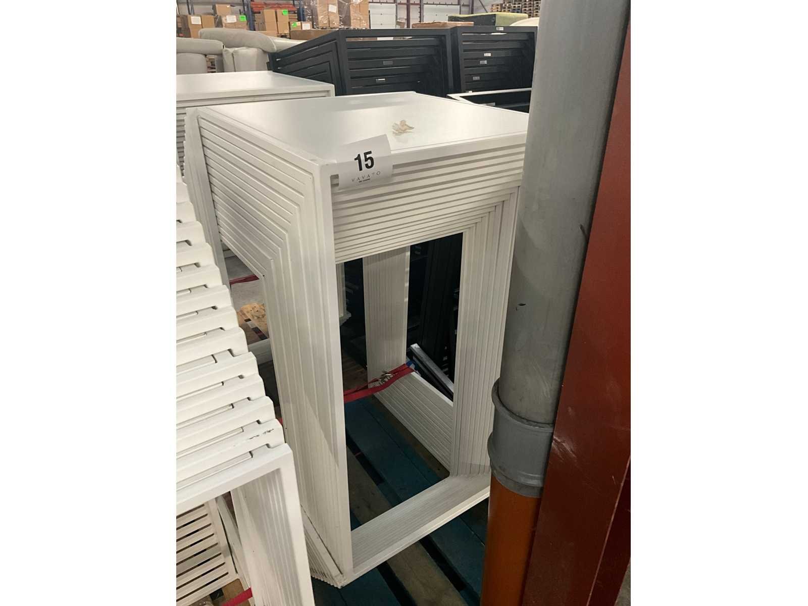 Stapelbaar, op pallet Nee Kleur: Wit Lengte: 70cm Breedte: 70cm Hoogte: 109cm Materiaal: Metaal