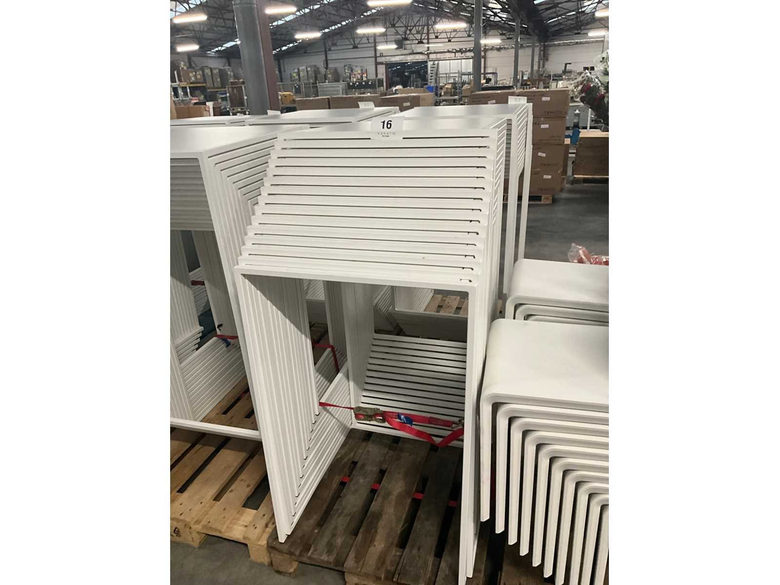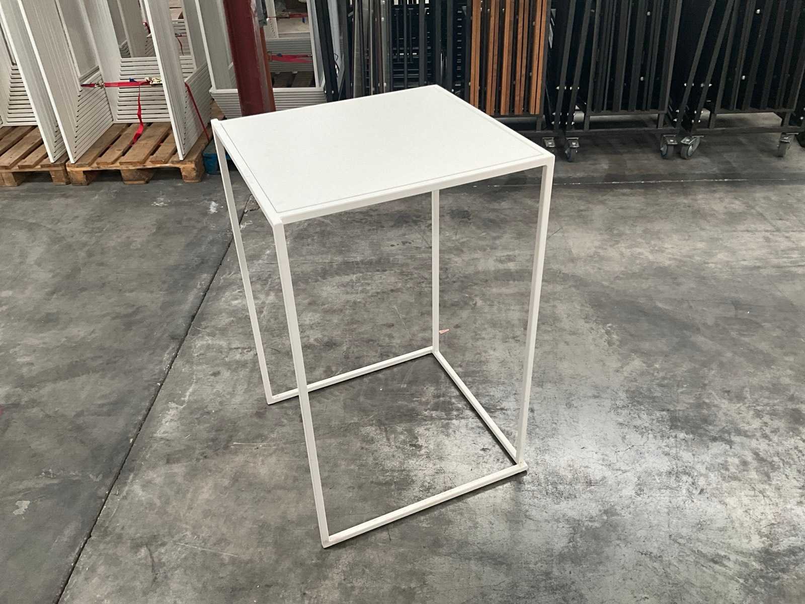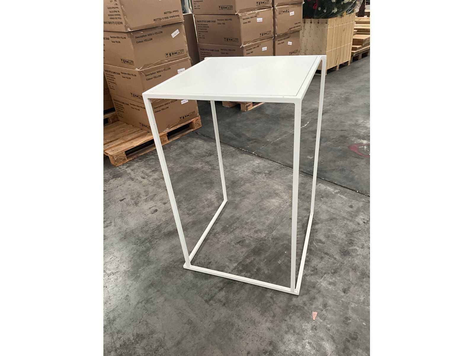 Stapelbaar, op pallet Nee Kleur: Wit Lengte: 70cm Breedte: 70cm Hoogte: 109cm Materiaal: Metaal