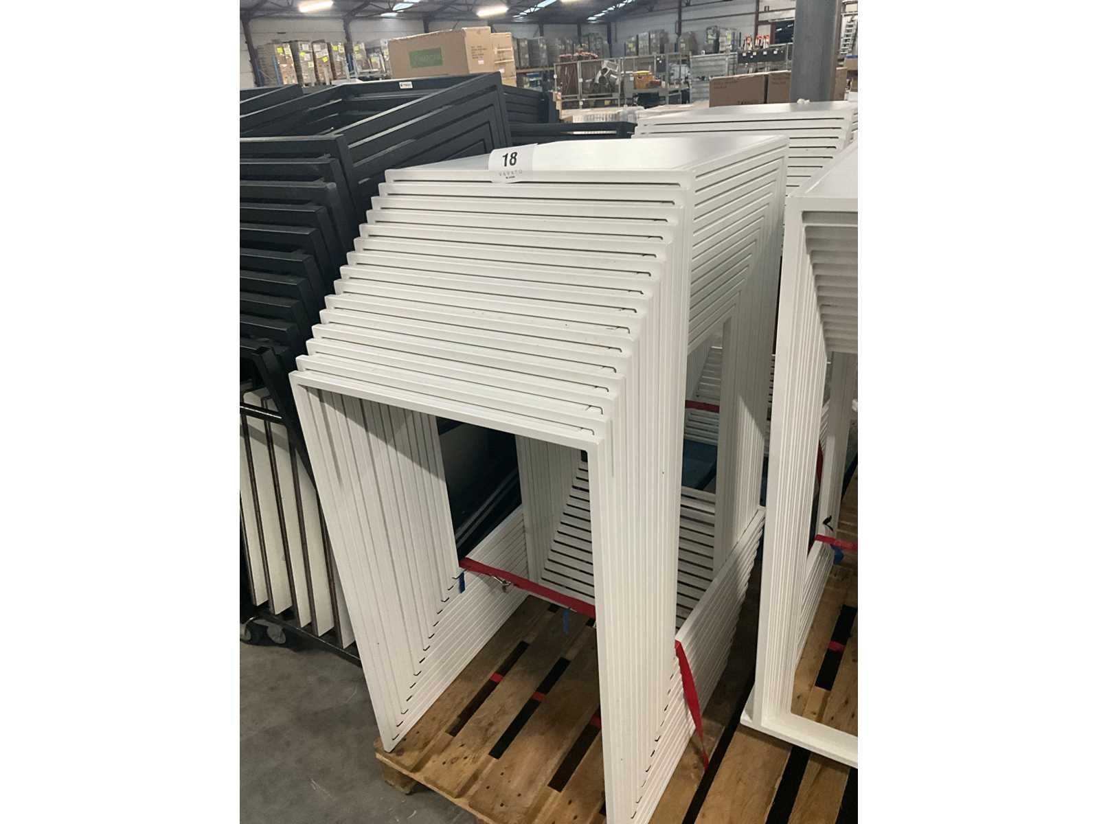 Stapelbaar, op pallet Nee Kleur: Wit Lengte: 70cm Breedte: 70cm Hoogte: 109cm Materiaal: Metaal