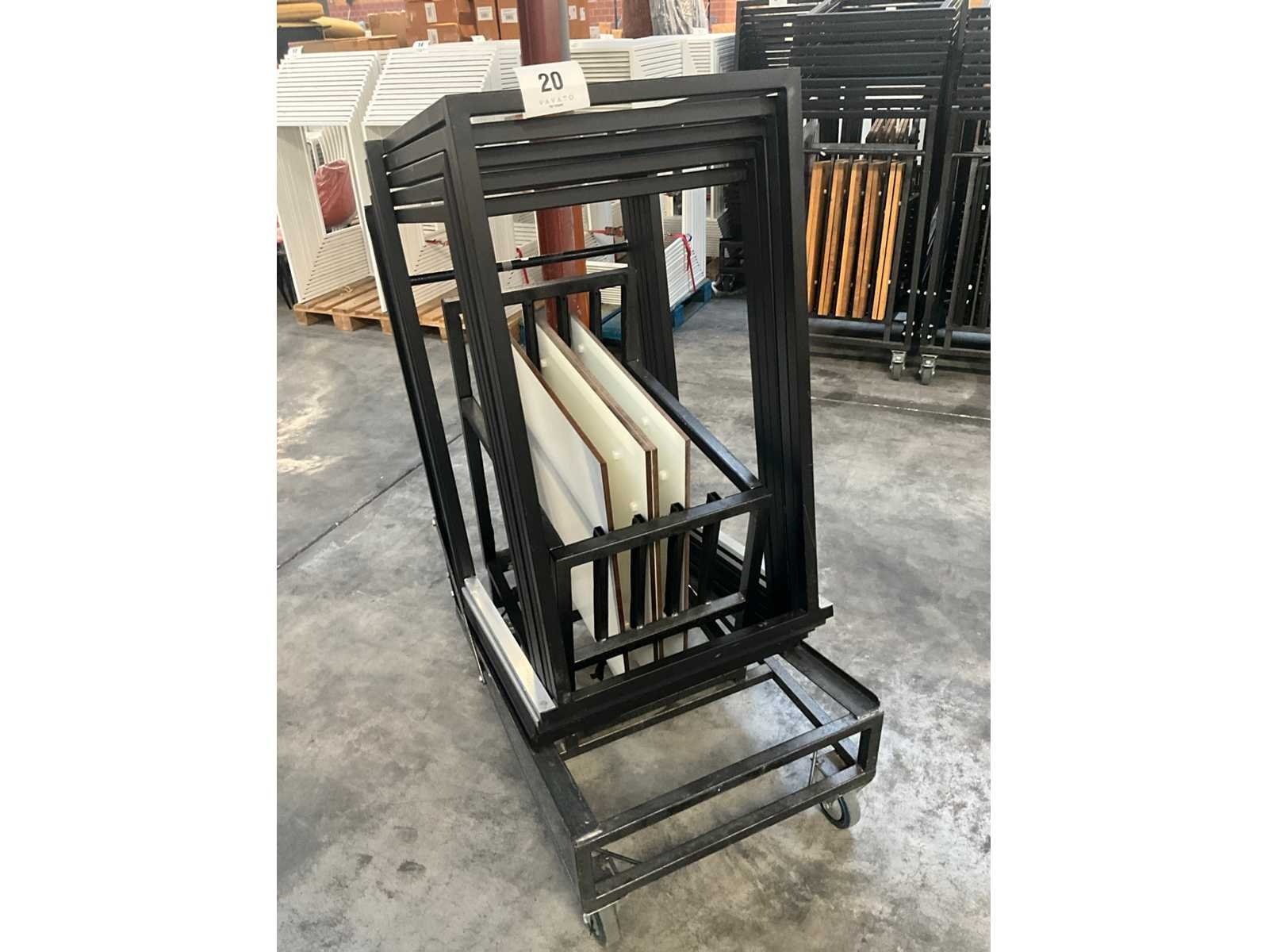 Compleet met 4x houten bovenblad, in verrijdbare kar met afmetingen:68x110x130cm Nee Merk: Flexfurn Lengte: 70cm Breedte: 70cm Hoogte: 110cm