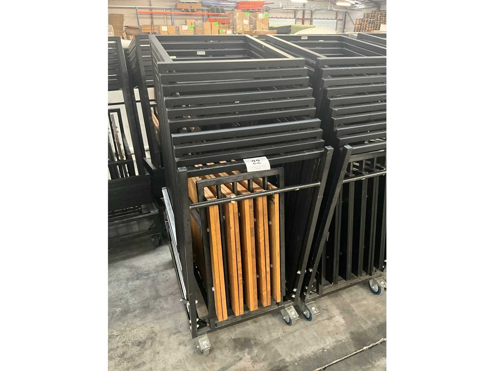 Compleet met 10x houten bovenblad, in verrijdbare kar met afmetingen:68x110x130cm Nee Merk: Flexfurn Lengte: 70cm Breedte: 70cm Hoogte: 110cm