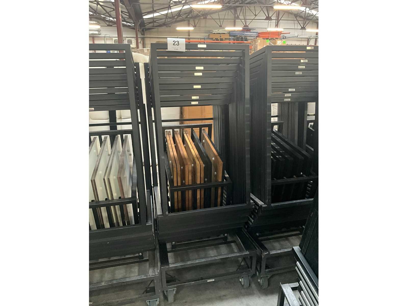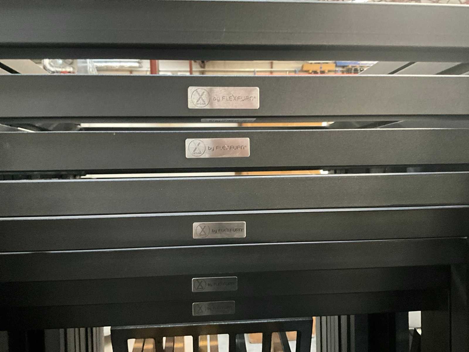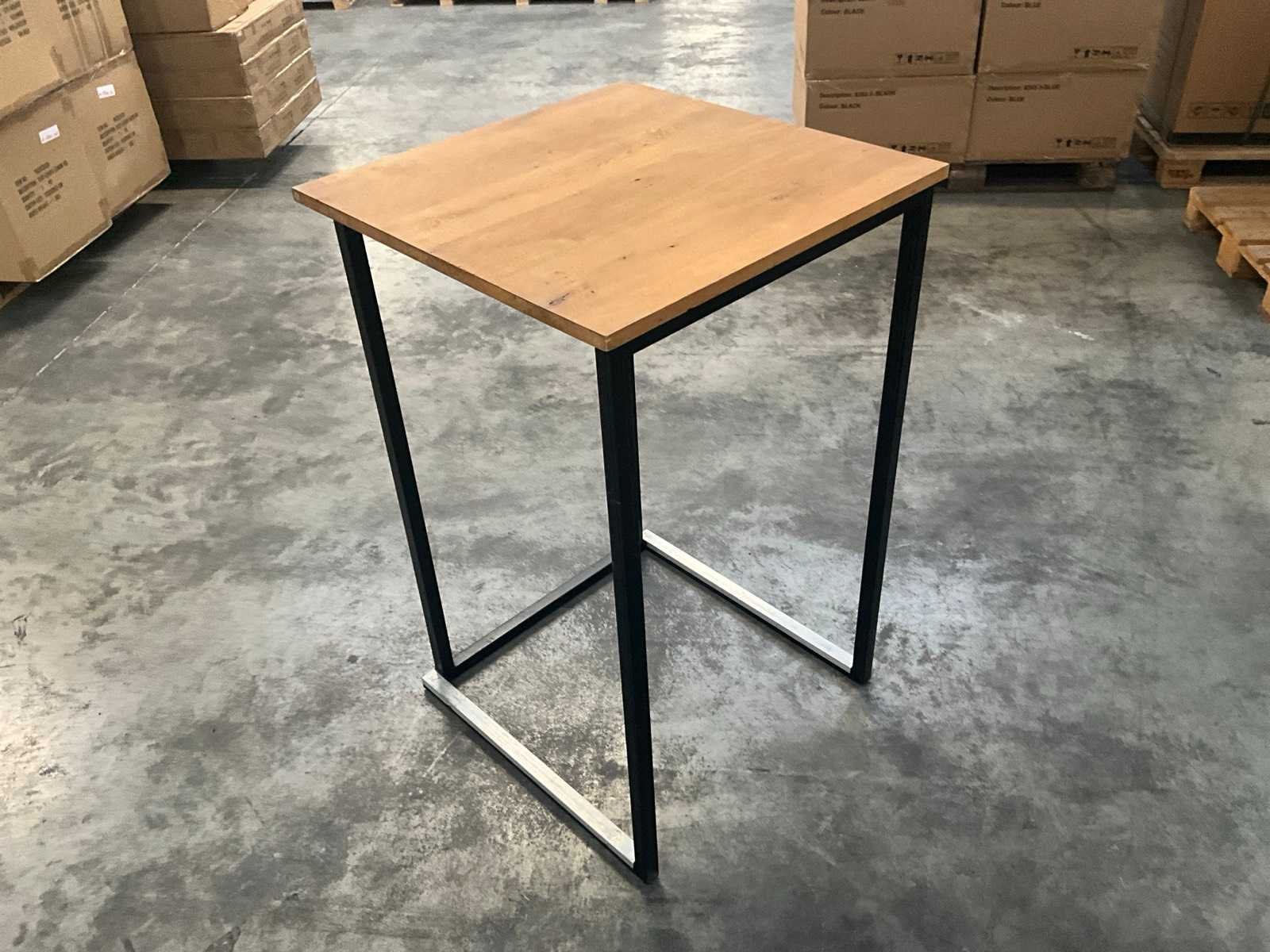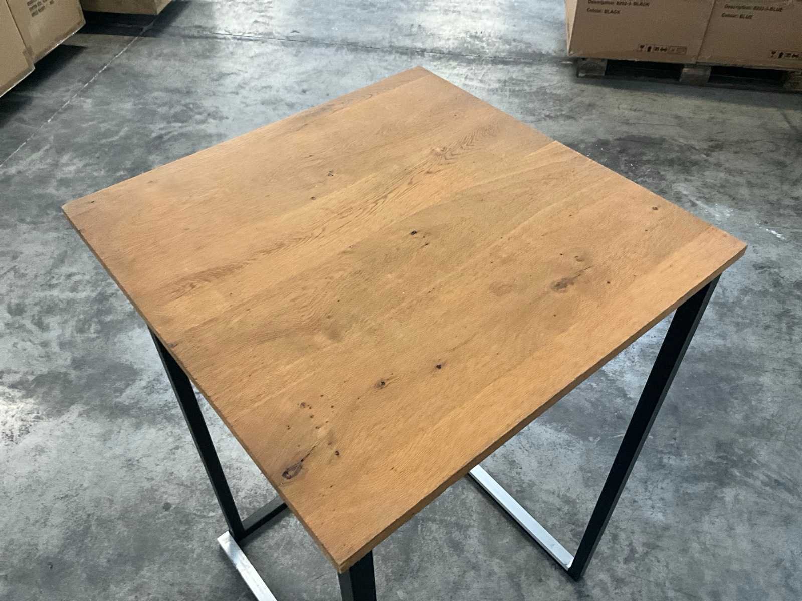 Compleet met 10 diverse houten bovenbladen, in verrijdbare kar met afmetingen:68x110x130cm Nee Merk: Flexfurn Lengte: 70cm Breedte: 70cm Hoogte: 110cm