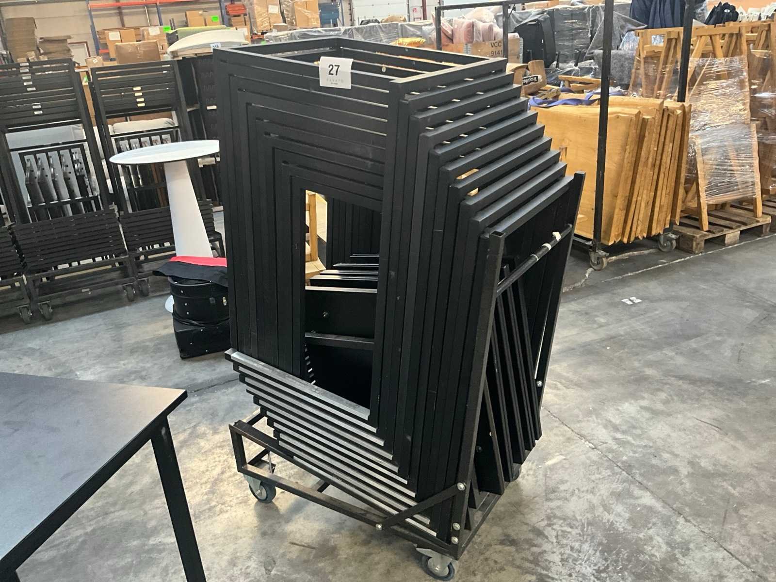 Compleet met 10 zwarte houten bovenbladen, in verrijdbare kar met afmetingen:68x110x130cm Nee Merk: Flexfurn Lengte: 70cm Breedte: 70cm Hoogte: 110cm