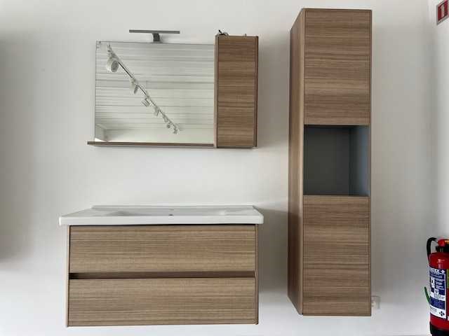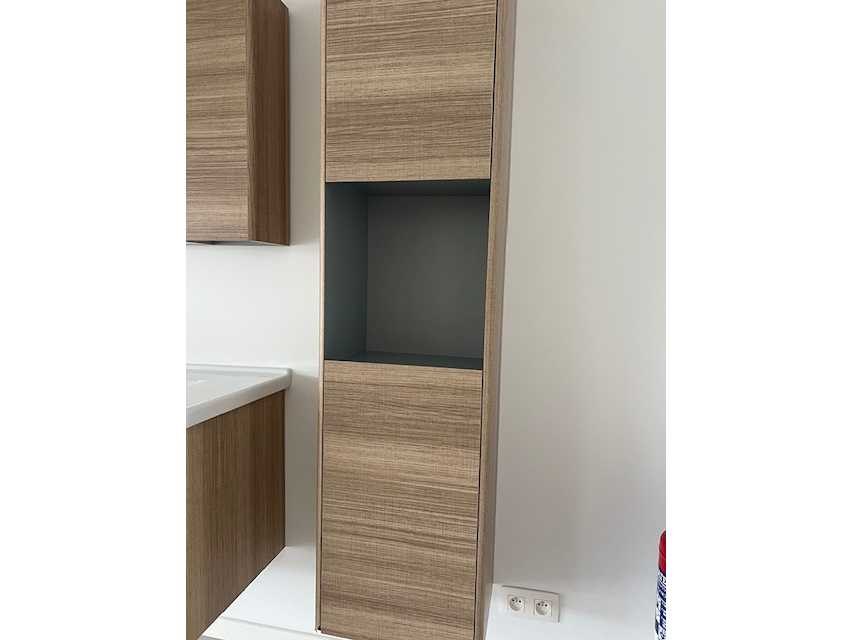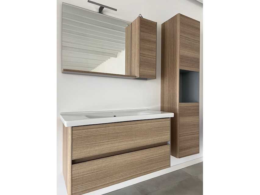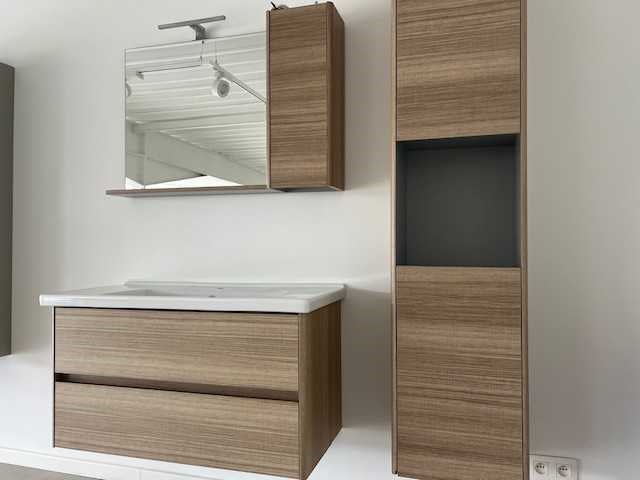 100cm, keramische wastafel, 2 lades, spiegel met kast en licht, zijkast ( 168x40cm) No Hoogte: 54cm Lengte: 100cm Breedte: 45cm Kleur: oak Wastafel: keramisch Spiegelkast: true Spiegel: ja Spiegel met verlichting: led Verlichting: led Lades: 2 Softclose: true Bevestigingsmateriaal: true Zijkast: ja