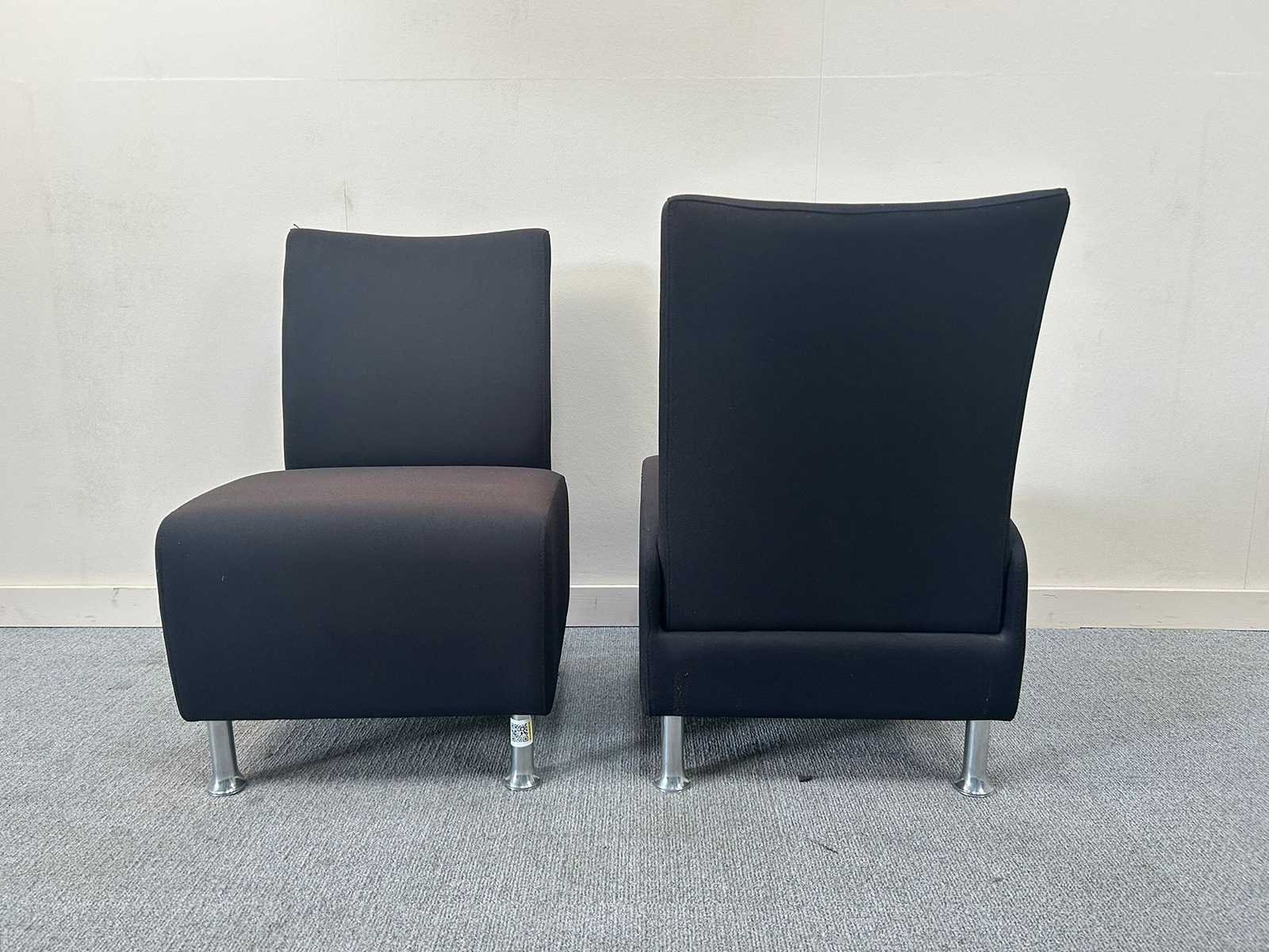 Een duo van 2 comfortabele ontvangstoelen in donker bruine stof, Met gebruikssporen, stofverzadiging. Nee Type: Ontvangststoel Kleur: Bruin Gewicht: 60kg Materiaal: Stof