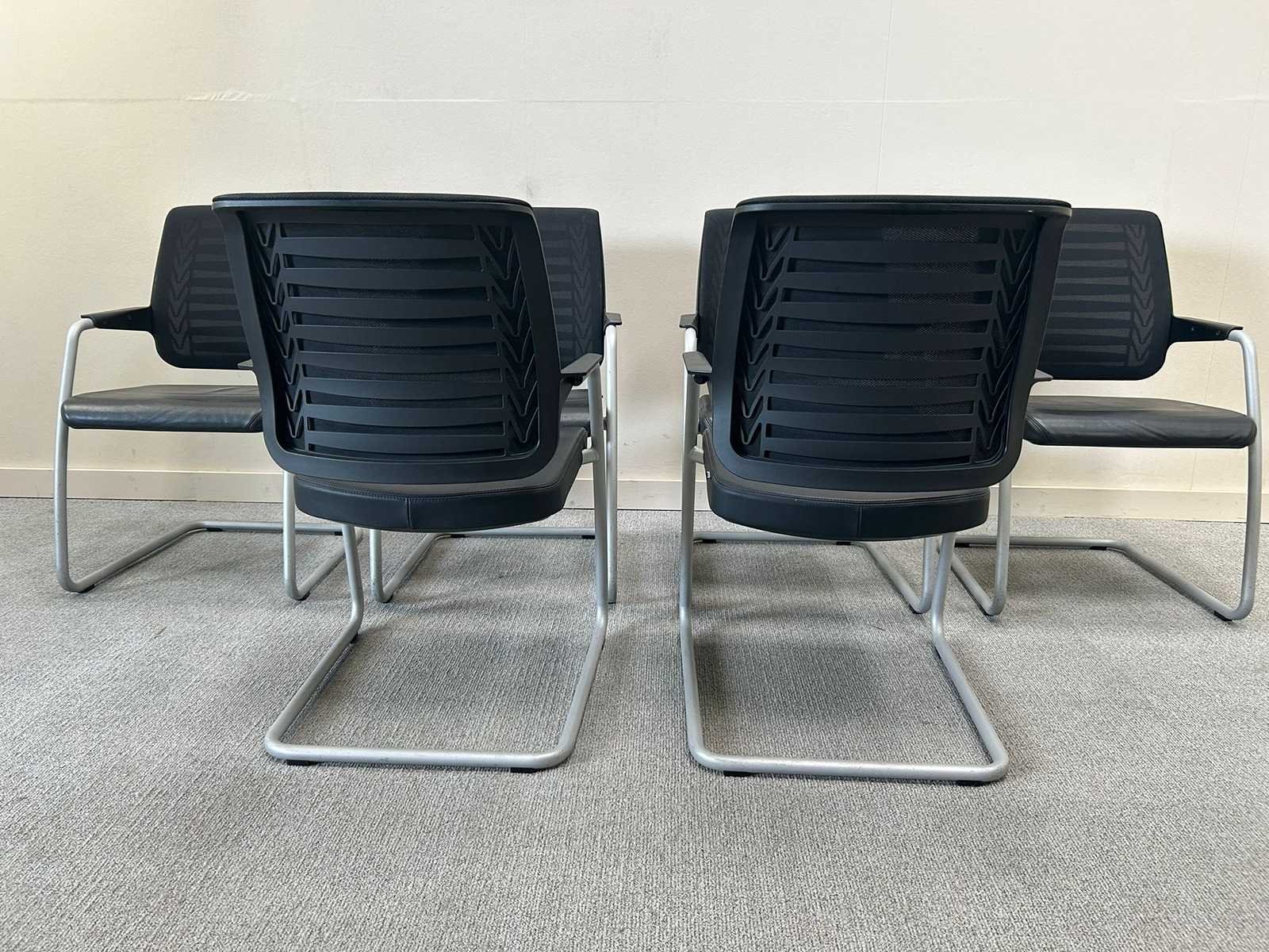 Een set van 6 Girsberger cantilever bezoekersstoelen in het zwart. Met gebruikssporen, staat kan variëren per item. Nee Merk: GIRSBERGER Type: Bezoekersstoel Kleur: Zwart Gewicht: 70kg Materiaal: Kunstleer / Mesh