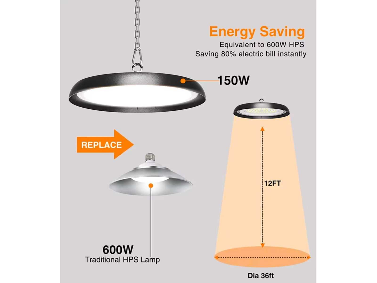 15 x Highbay LED SLIM 150W – 6500K Koud wit – Waterdichte UFO – Vermogen: 150W – Lichtstroom: 19.500 lumen – Kleurtemperatuur: 6.500K (koud wit) – IP-waarde: IP65 (waterdicht) – Inclusief DOB IC-driver – Beamhoek: 90° – IndexKleurweergave (IRC): >80 – Vermogensfactor: >0,95 – Spanning: 100-265V – Materialen: aluminium en PC – Afmetingen: Ø 290 x 70 mm – Kleur: zwart – Levensduur: 30.000 uur – Garantie: 2 jaar – Montageset niet inbegrepen. No Merk: Venus
