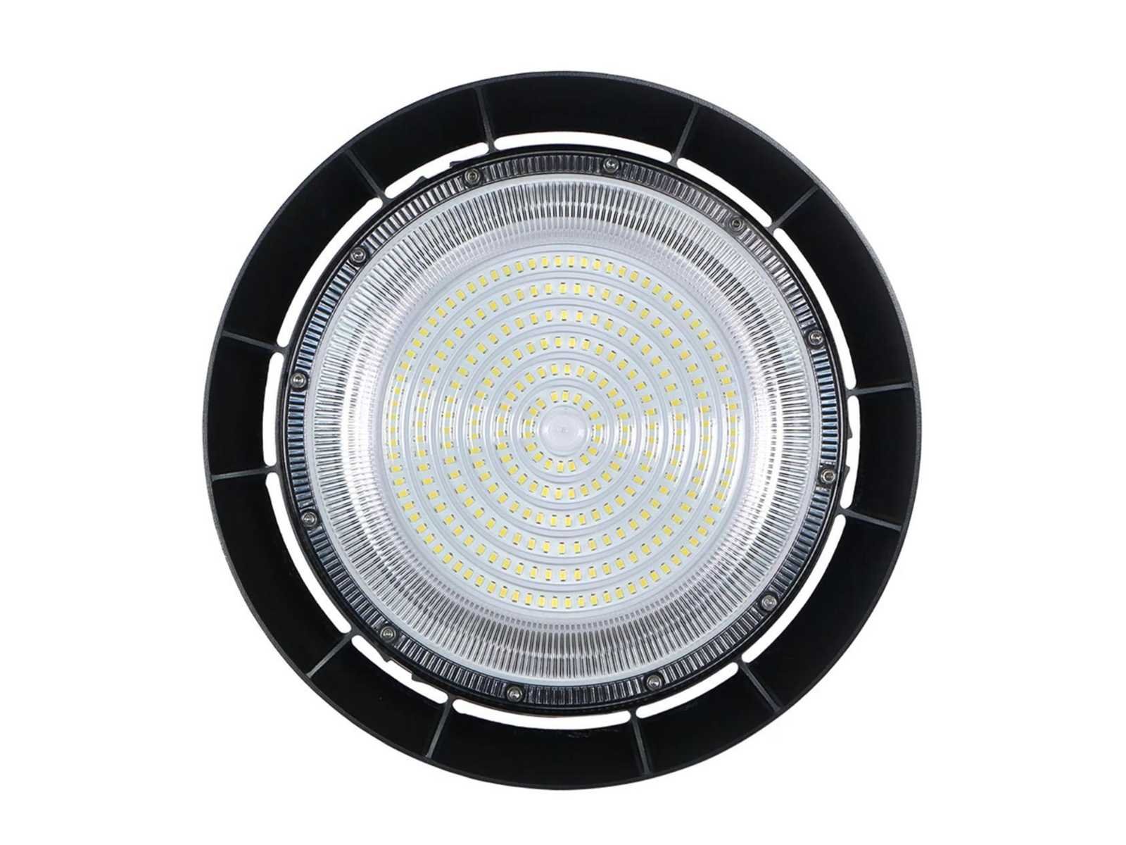 5 x Highbay LED SLIM 150W – 6500K Cool White – Waterdichte UFO – Vermogen: 150W – Lichtstroom: 19.500 lumen – Kleurtemperatuur: 6.500K (koud wit) – IP-waarde: IP65 (dicht) – Inclusief DOB IC driver – Beamingshoek: 90° – Kleurweergave-index (IRC): >80 – Vermogensfactor: >0,95 – Spanning: 100-265V – Materialen: aluminium en PC – Afmetingen: Ø 290 x 70 mm – Kleur: zwart – Levensduur: 30 000 uur – Garantie: 2 jaar – Montageset niet inbegrepen. No Merk: Venus
