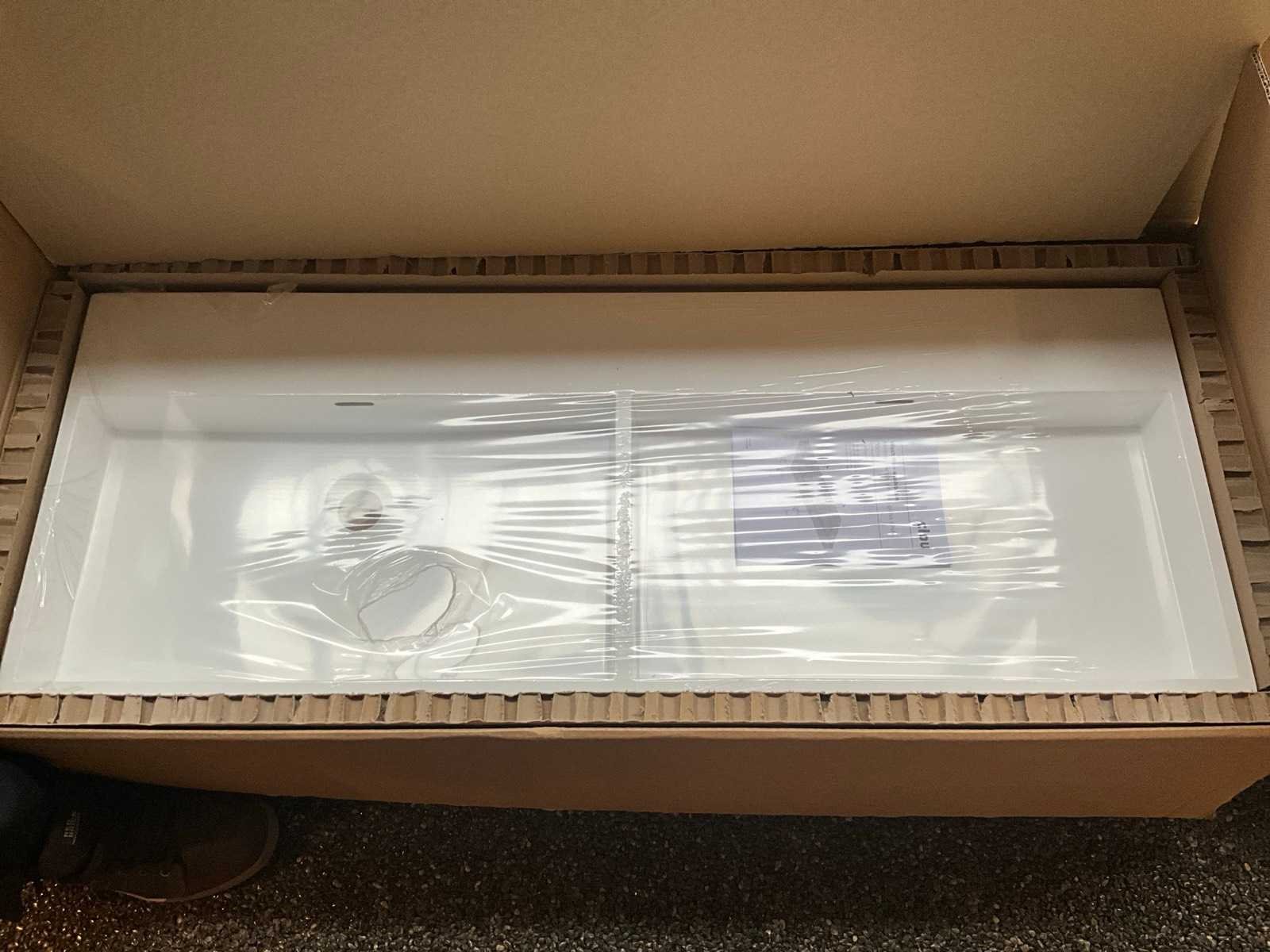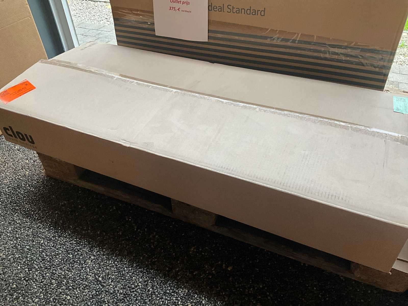 In originele verpakking Nee Merk: Clou Model: Wash Me Product type: Opbouw Kleur: Mineral marble - gloss white Lengte: 110cm Breedte: 42cm Hoogte: 12cm Materiaal: Porselein