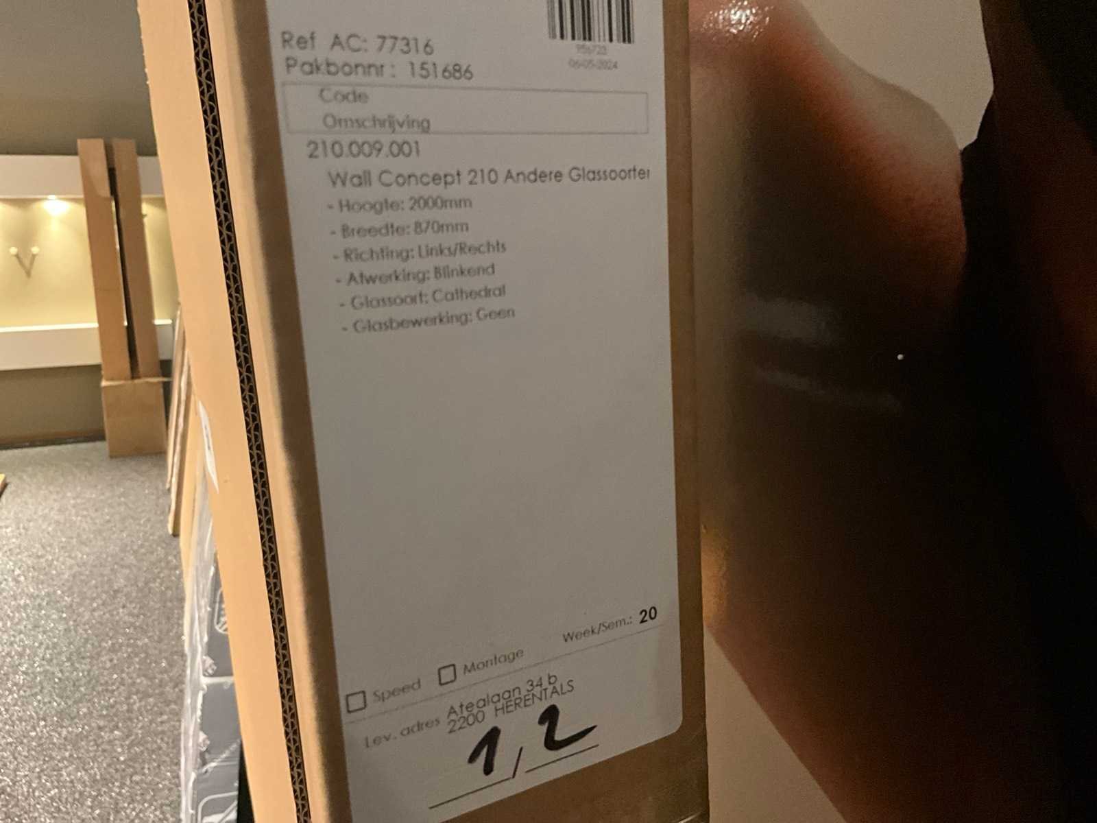 In gesloten originele verpakking Nee Merk: Aqua Concept Model: 210 Lengte: 87cm Hoogte: 200cm Materiaal: Glas Cathedral