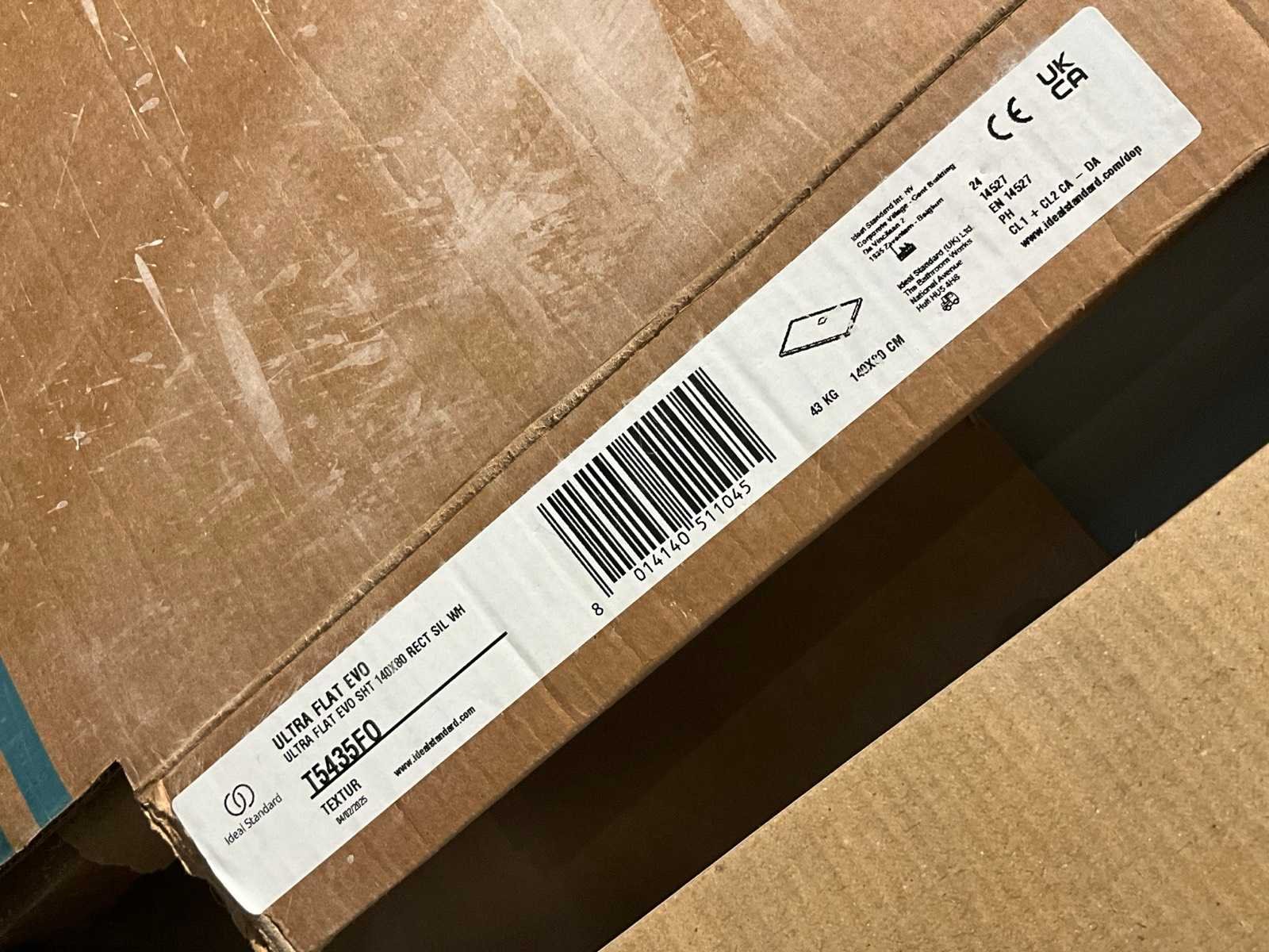 In gesloten originele verpakking Nee Merk: Ideal Standard Model: Ultra Flat EVO Kleur: Wit Lengte: 140cm Breedte: 80cm Materiaal: Composiet