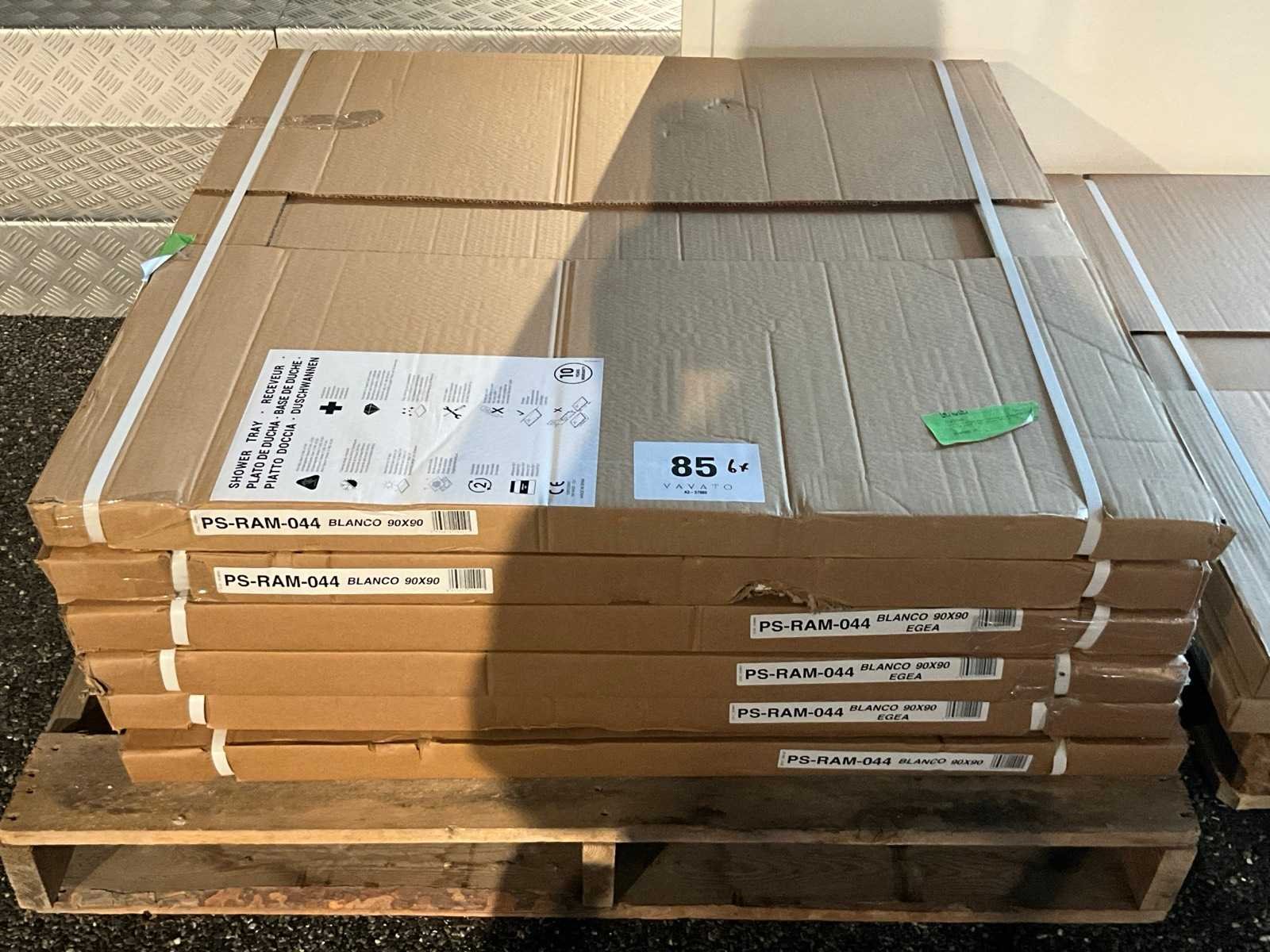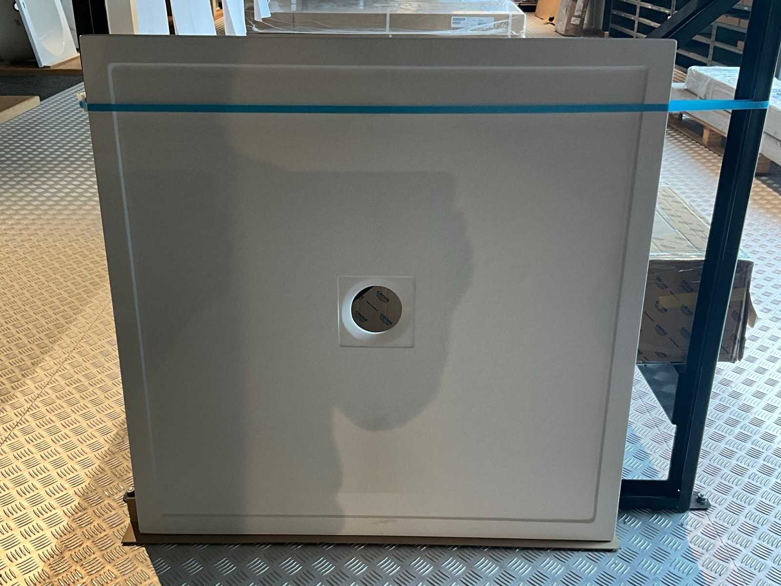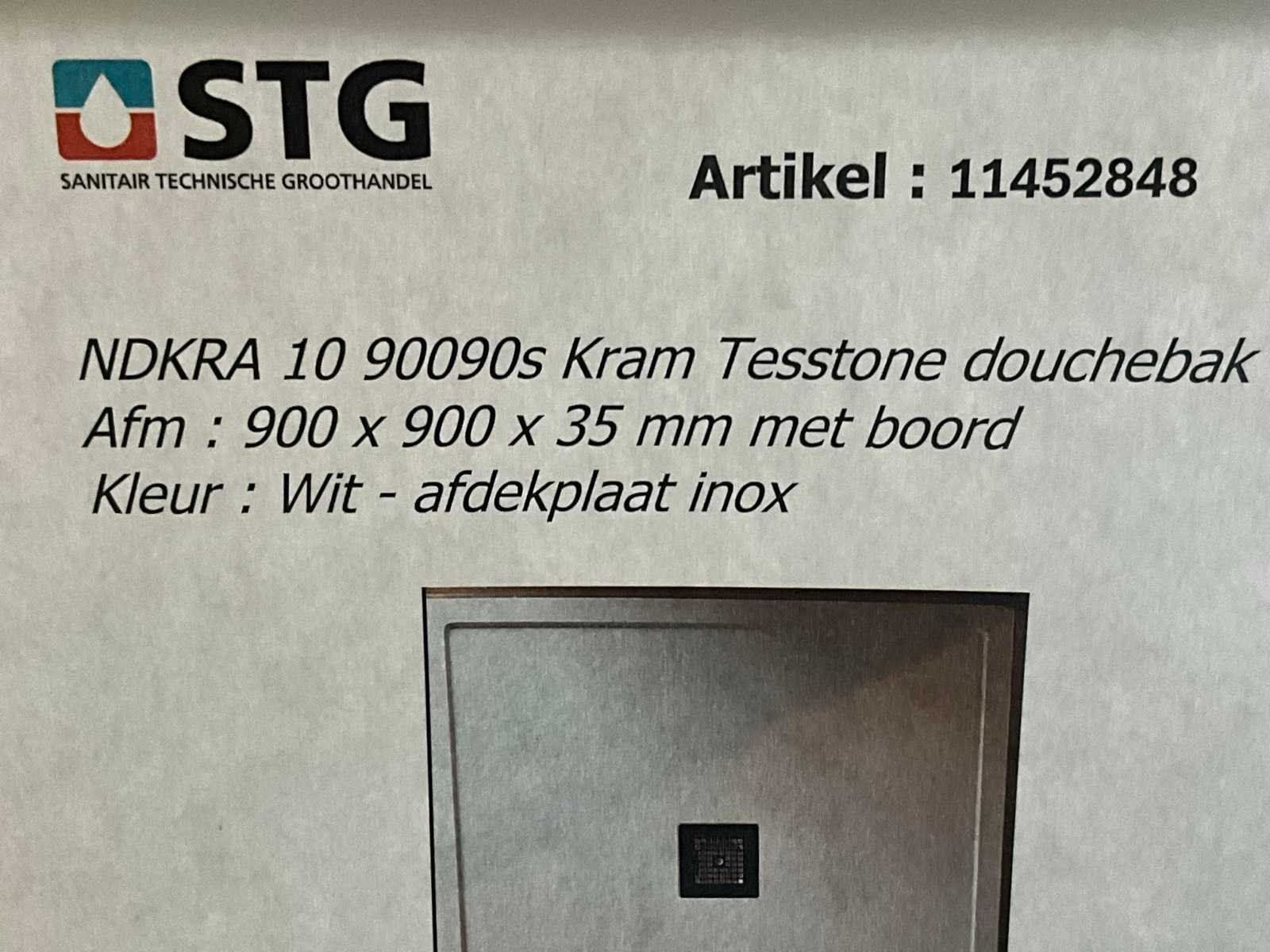 Antislip en voorzien van boord en inox afdekplaat, Waaronder 6 in gesloten originele verpakking Nee Merk: Kram Model: Tesstone Kleur: Wit Lengte: 90cm Breedte: 90cm Hoogte: 3.5cm Materiaal: Composiet