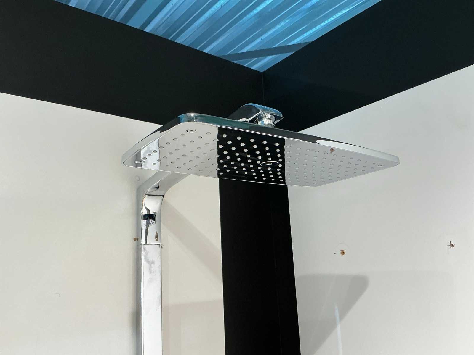 Met afmetingen hoofddouche: 36 x 19cm. Compleet met handdouche en thermostaat Hansgrohe. Nee Merk: Hansgrohe Kleur: Chrome Lengte: 14 Breedte: 36 Hoogte: 115 Materiaal: Aluminium