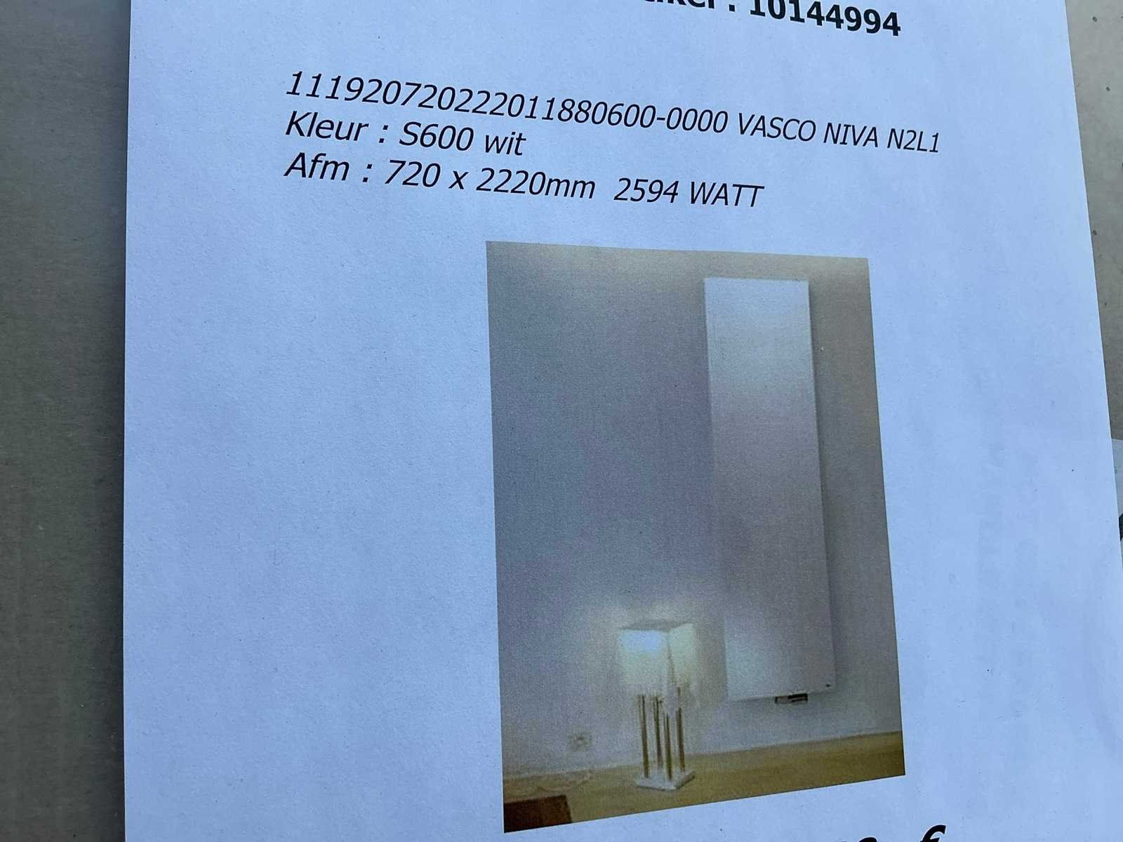 Kleur: S600 Wit Afgifte volgens aanwijzing. Nee Merk: Vasco Type: Niva N2L1 Vermogen: 2594W Verticaal: true Totale afmeting Breedte: 72mm Totale afmeting Hoogte: 222mm