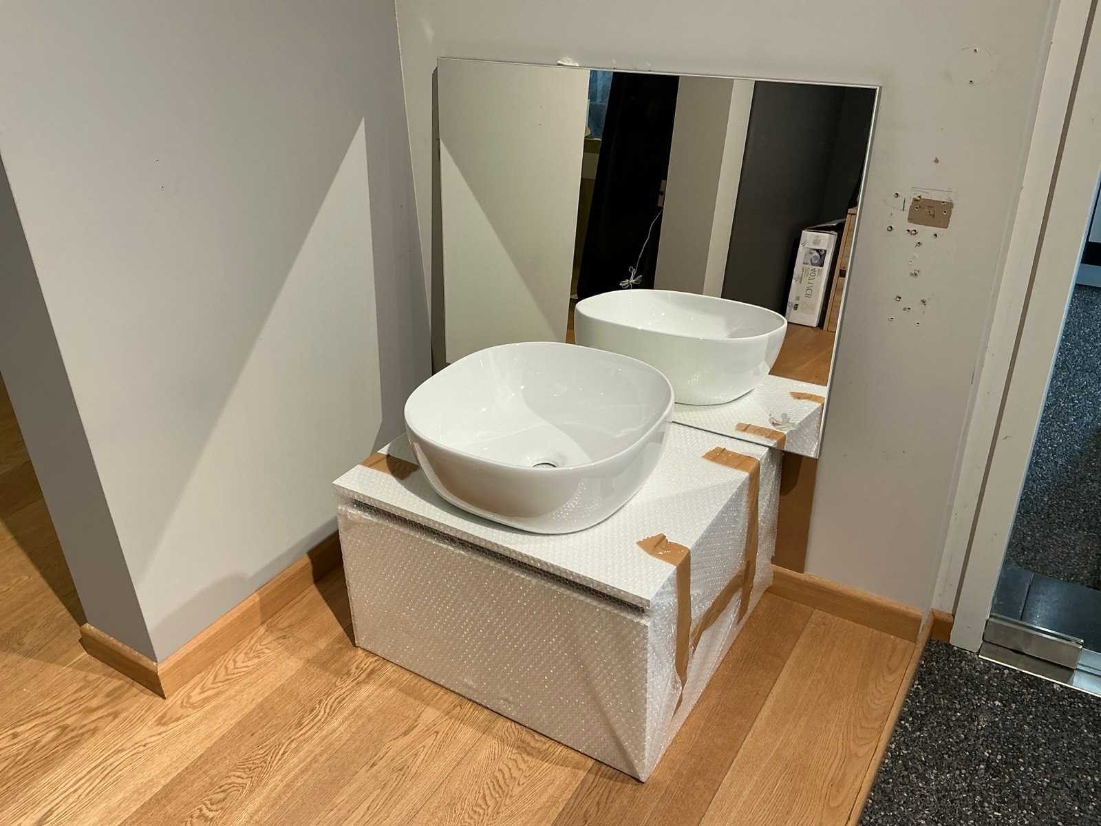 Opbouw wastafel met afmetingen ca. 41 x 41 x 15cm + onderkast met afmetingen ca. 60 x 37 x 37cm voorzien van 1x schuiflade + spiegel met afmetingen ca. 80 x 60cm. Nee