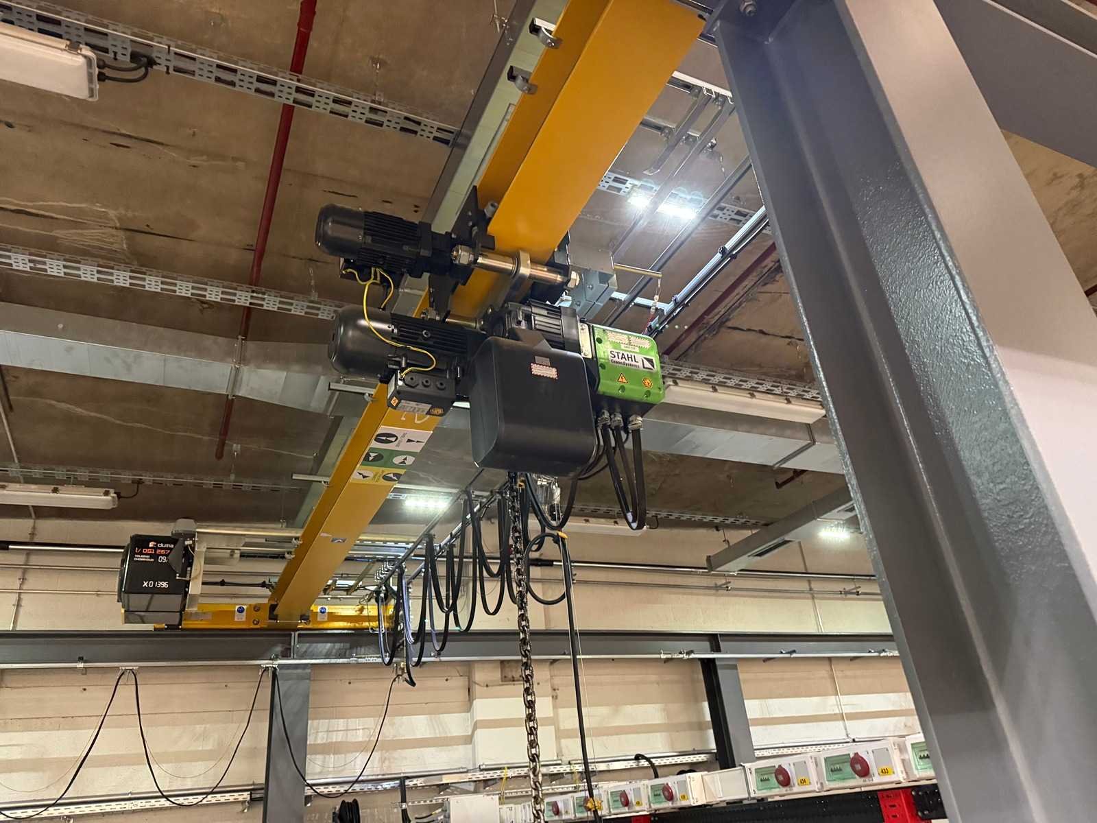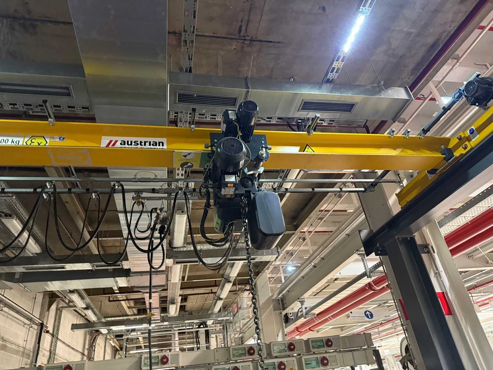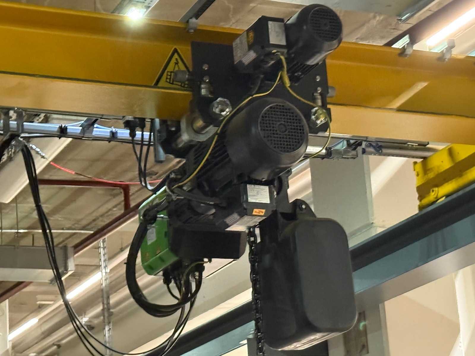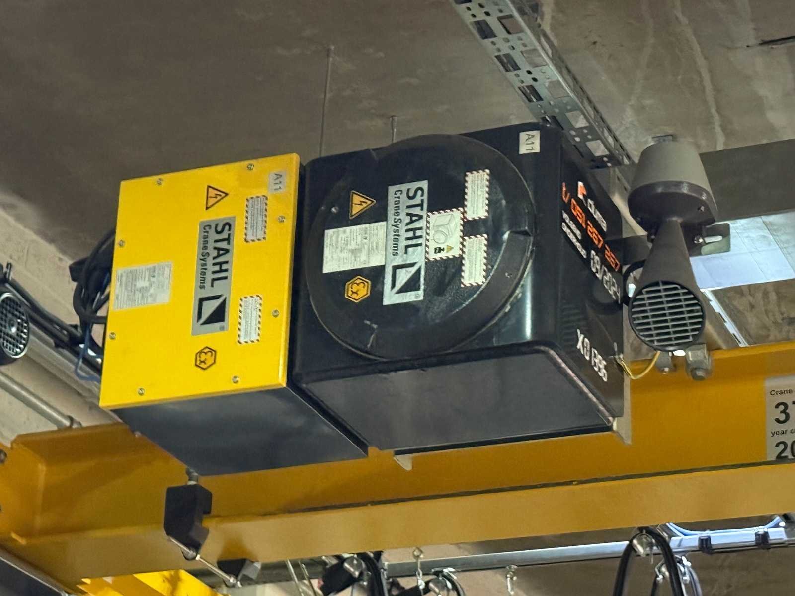 Configuratie: Dubbelligger bovenloopkraansysteem op stalen draagconstructie Uitgerust met STAHL ST elektrische kettingtakels met gemotoriseerde trolley en dwarsverplaatsingsaandrijving Geïntegreerde pendelbediening voor heffen en oversteken Stroom- en besturingsbekabeling met festoensysteem Rails en structurele kolommen inbegrepen zoals afgebeeld Beschrijving: Compacte bovenloopkraanopstelling, ideaal voor licht industrieel hijsen, assemblagelijnen of onderhoudswerkplaatsen. De kranen zijn uitgerust met hoogwaardige STAHL takels, die bekend staan om hun precisiehijsen, lage geluidsniveaus en een lange levensduur. Elke unit draait op een stalen brugbalk van Oostenrijkse makelij die op een robuust frame is gemonteerd, wat zorgt voor een soepele en betrouwbare werking over het volledige werkgebied. Conditie: Operationeel tot ontmanteling. In uitstekende visuele en technische staat, met weinig slijtage. Professioneel onderhouden en klaar voor hergebruik. Afmetingen (ongeveer): Overspanning: 6-8 m per brug Hoogte onder de balk: ± 3 m Hoogte draagconstructie: ± 3,5 m Opmerkingen: Compleet systeem inclusief takel, balk, rails en stalen draagframe No Merk: STAHL Type: ST Bouwjaar: 2018 Hijsvermogen: 250kg Met kraanbalk: true Met kraanboek: true