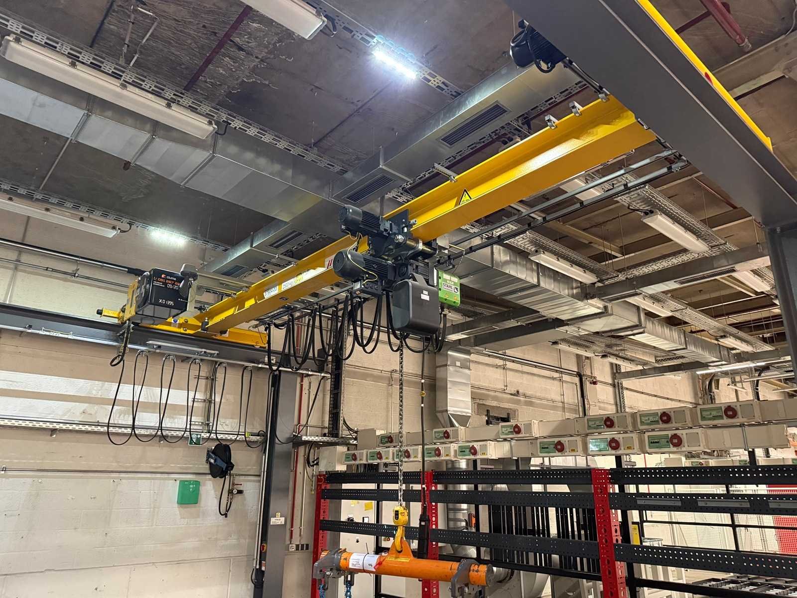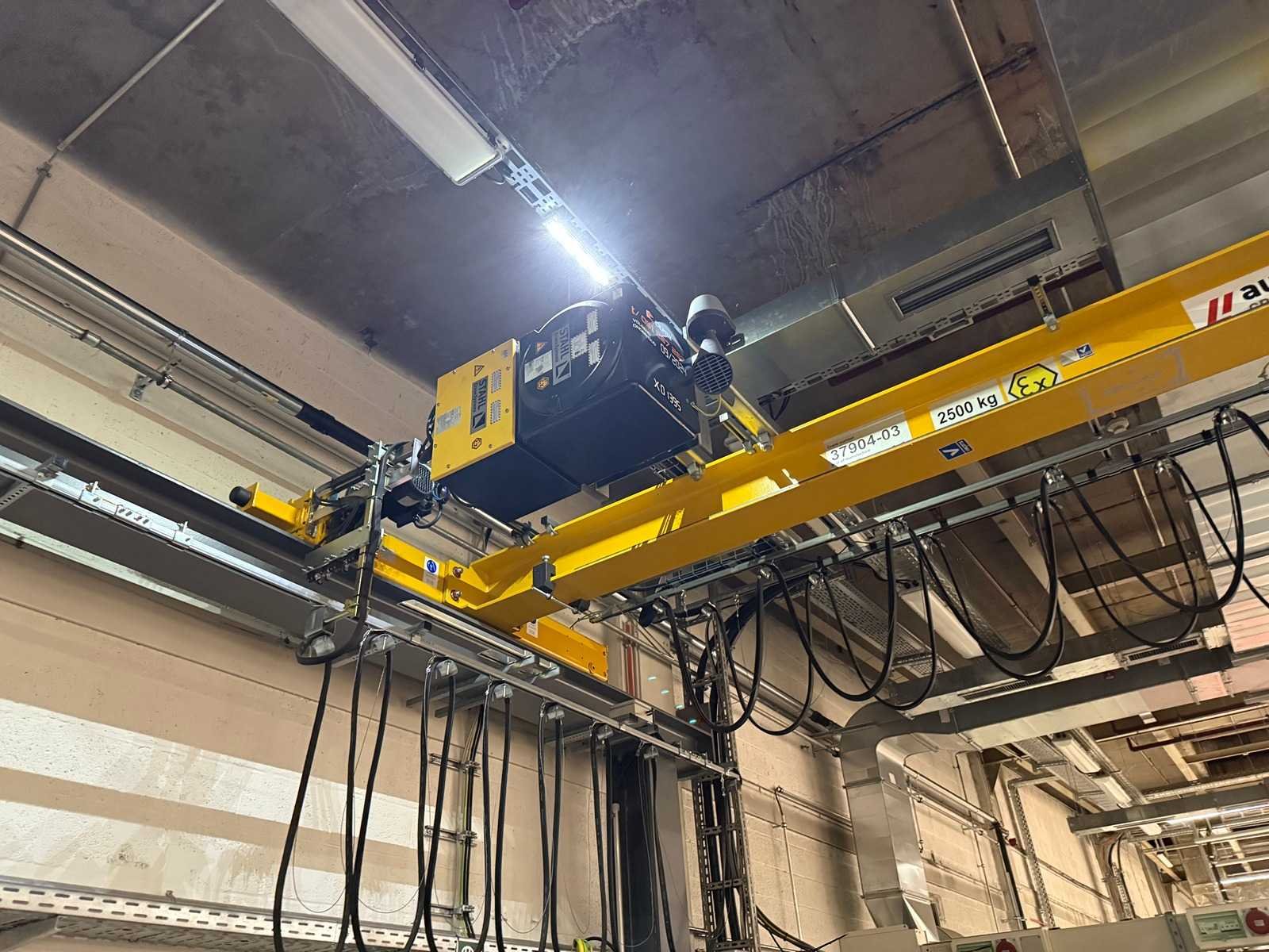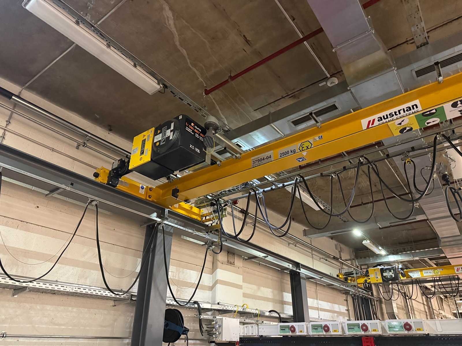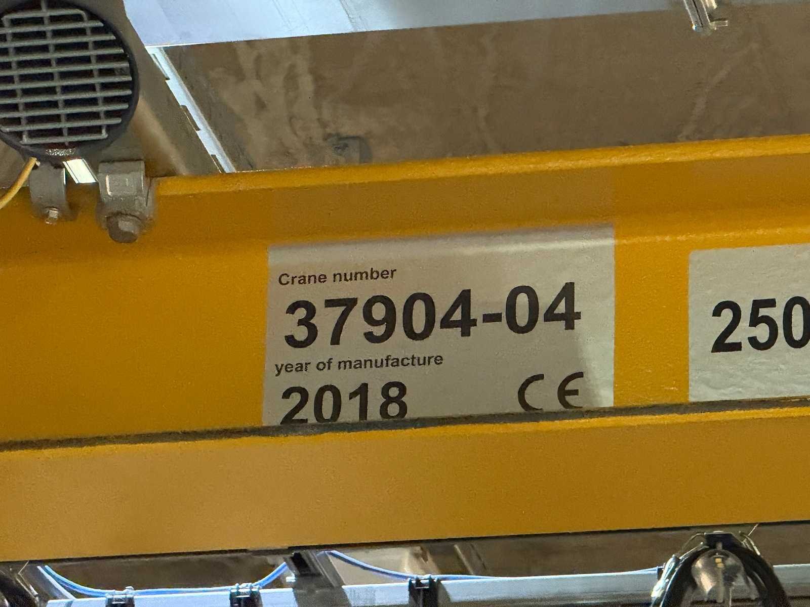 Configuratie: Dubbelligger bovenloopkraansysteem op stalen draagconstructie Uitgerust met STAHL ST elektrische kettingtakels met gemotoriseerde trolley en dwarsverplaatsingsaandrijving Geïntegreerde pendelbediening voor heffen en oversteken Stroom- en besturingsbekabeling met festoensysteem Rails en structurele kolommen inbegrepen zoals afgebeeld Beschrijving: Compacte bovenloopkraanopstelling, ideaal voor licht industrieel hijsen, assemblagelijnen of onderhoudswerkplaatsen. De kranen zijn uitgerust met hoogwaardige STAHL takels, die bekend staan om hun precisiehijsen, lage geluidsniveaus en een lange levensduur. Elke unit draait op een stalen brugbalk van Oostenrijkse makelij die op een robuust frame is gemonteerd, wat zorgt voor een soepele en betrouwbare werking over het volledige werkgebied. Conditie: Operationeel tot ontmanteling. In uitstekende visuele en technische staat, met weinig slijtage. Professioneel onderhouden en klaar voor hergebruik. Afmetingen (ongeveer): Overspanning: 6-8 m per brug Hoogte onder de balk: ± 3 m Hoogte draagconstructie: ± 3,5 m Opmerkingen: Compleet systeem inclusief takel, balk, rails en stalen draagframe No Merk: STAHL Type: ST Bouwjaar: 2018 Hijsvermogen: 250kg Met kraanbalk: true Met kraanboek: true