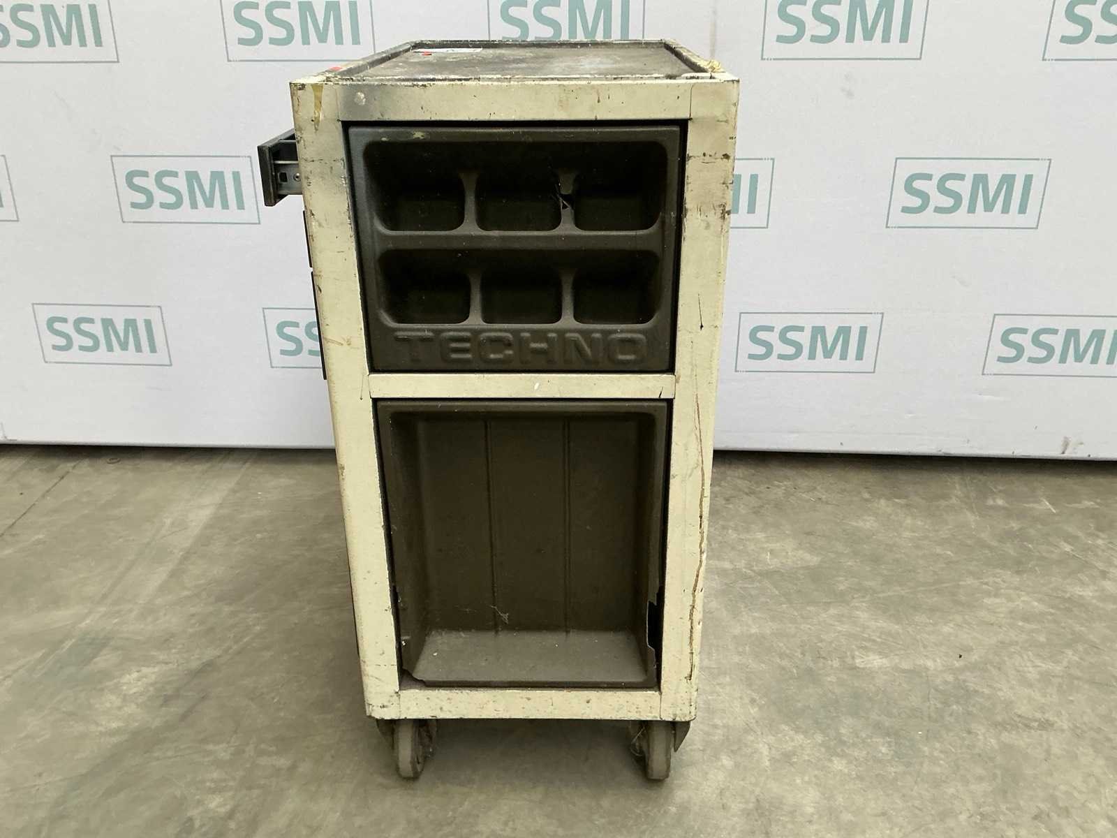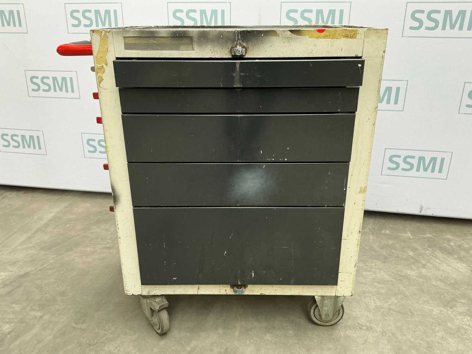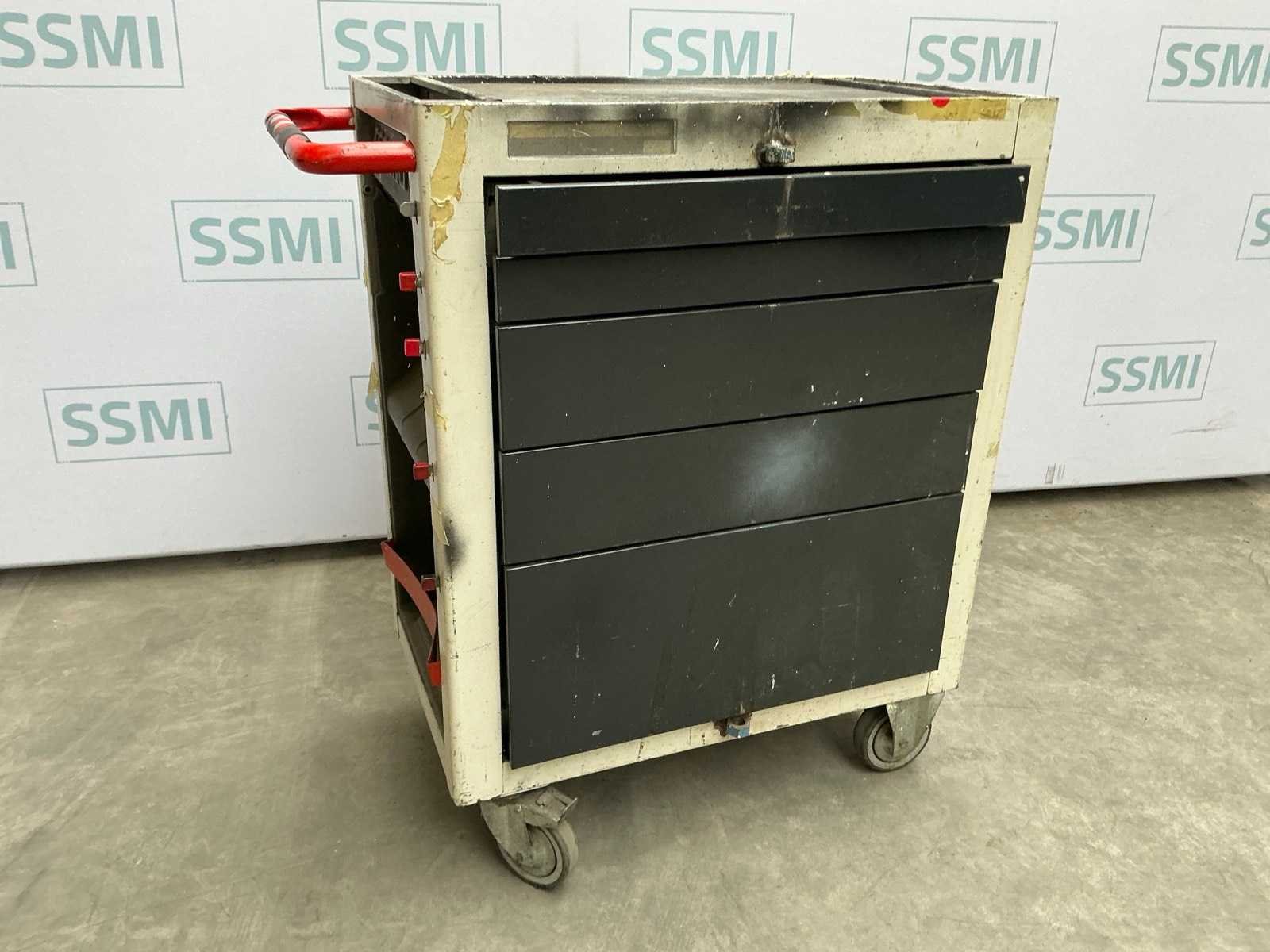 Voorzien van 4 transportwielen waarvan 1 met rem Nee Merk: FACOM Type: Techno 5 laden Aantal laden: 5 Met inhoud: true Totale afmeting L: 900mm Totale afmeting Breedte: 480mm Totale afmeting Hoogte: 980mm