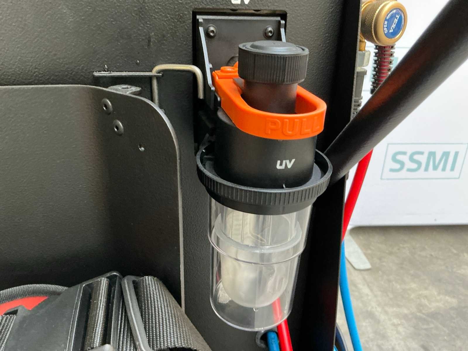 Fluid group R744/2; max 200bar; 800w ; Voorzien van 4 transportwielen waarvan 2 met rem Nee Merk: TEXA Type: K744R Bouwjaar: 2022 Serienummer: AKKNT306553 Aansluiting: 230V Totale afmeting L: 620mm Totale afmeting Breedte: 680mm Totale afmeting Hoogte: 1080mm