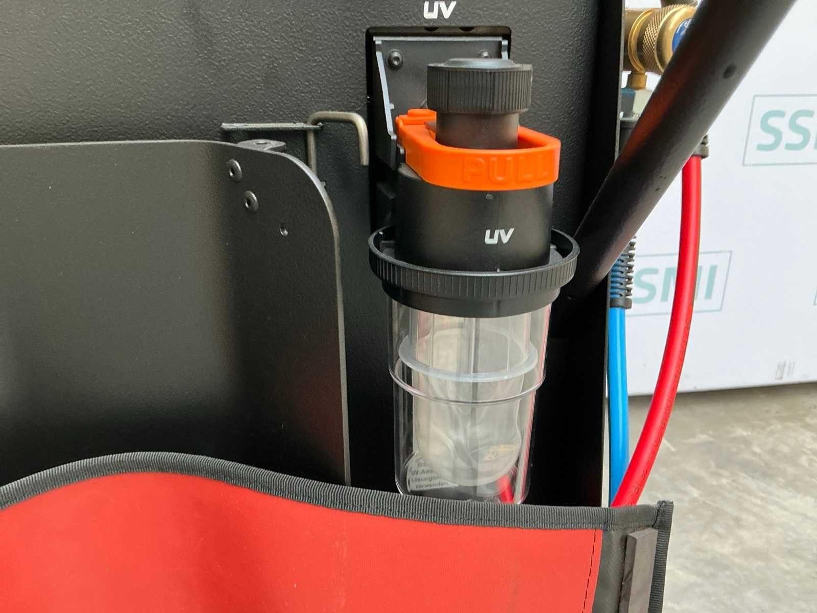Fluid group R744/2; max 200bar; 800w ; Voorzien van 4 transportwielen waarvan 2 met rem Nee Merk: TEXA Type: K744R Bouwjaar: 2022 Serienummer: AKKNT306565 Aansluiting: 230V Totale afmeting L: 620mm Totale afmeting Breedte: 680mm Totale afmeting Hoogte: 1080mm