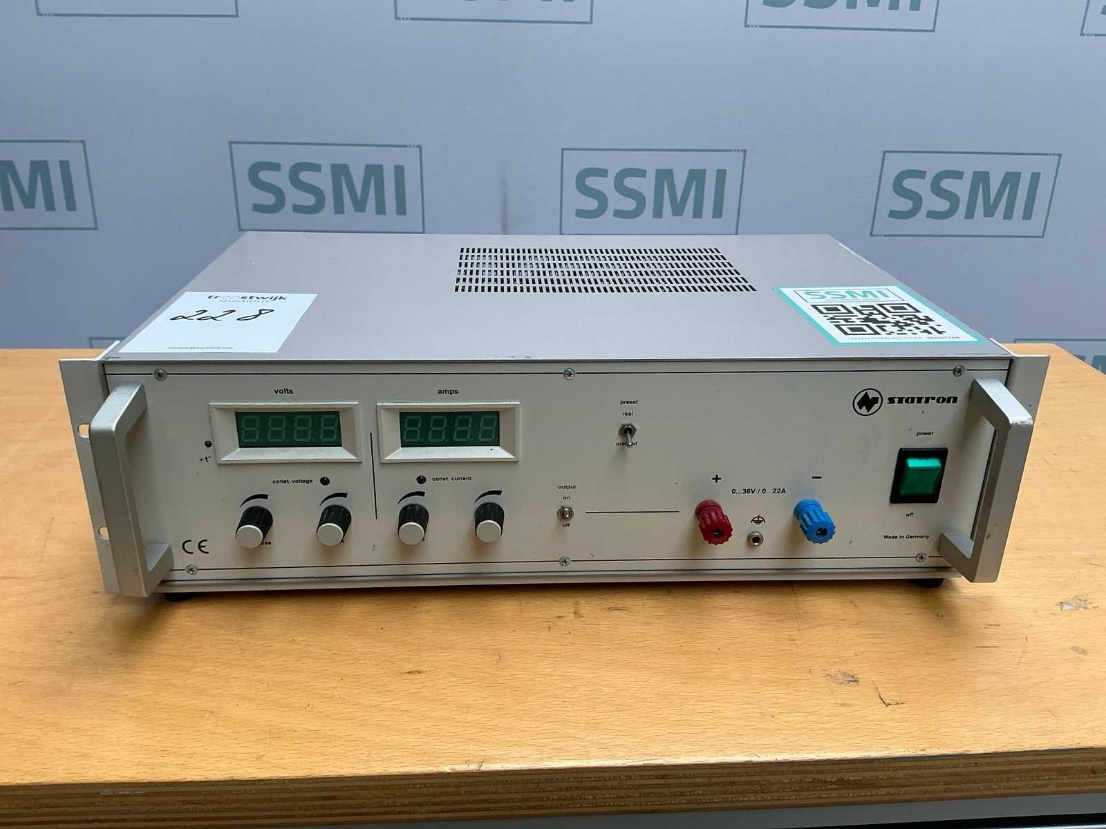 Geschikt voor 19’ rekmontage; output regelbaar 0-36 Vdc / 0-22A Nee Merk: STATRON Type: 3254.1 Serienummer: 0906028 Aansluiting: 230V Totale afmeting L: 480mm Totale afmeting Breedte: 380mm Totale afmeting Hoogte: 140mm