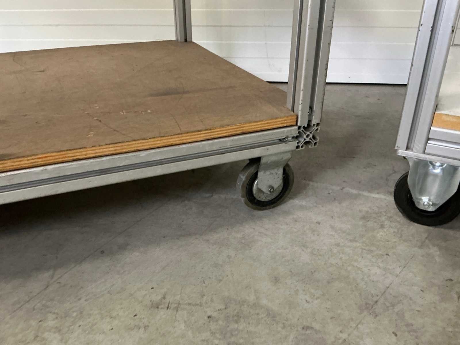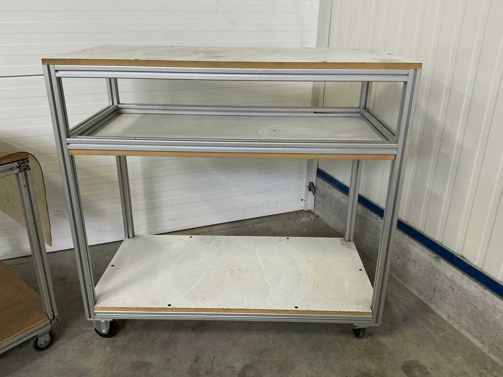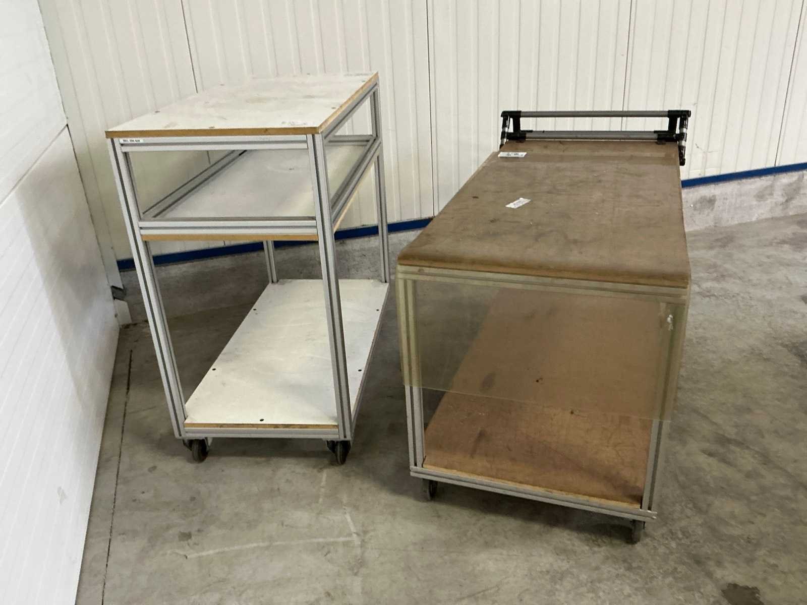 1x met 2 legborden 165x80x95cm LxBxH en 1x met 3 legborden 120x61x115cm LxBxH Nee