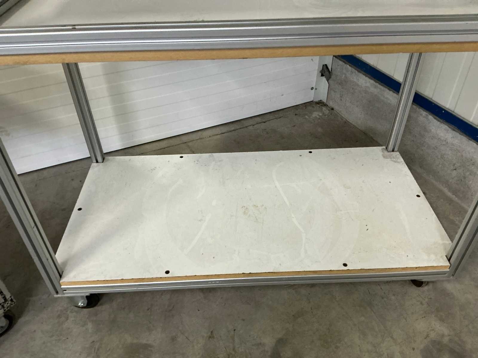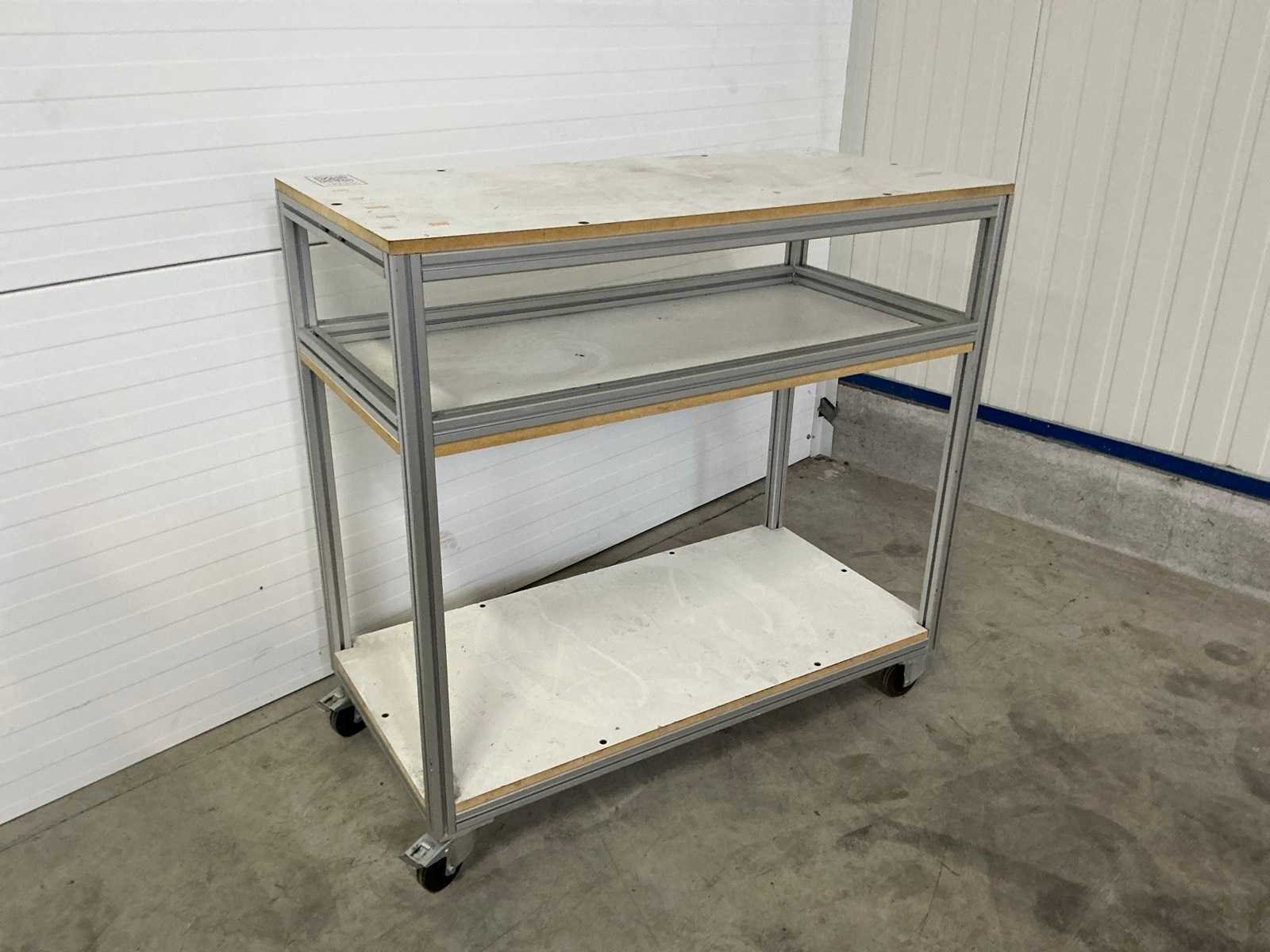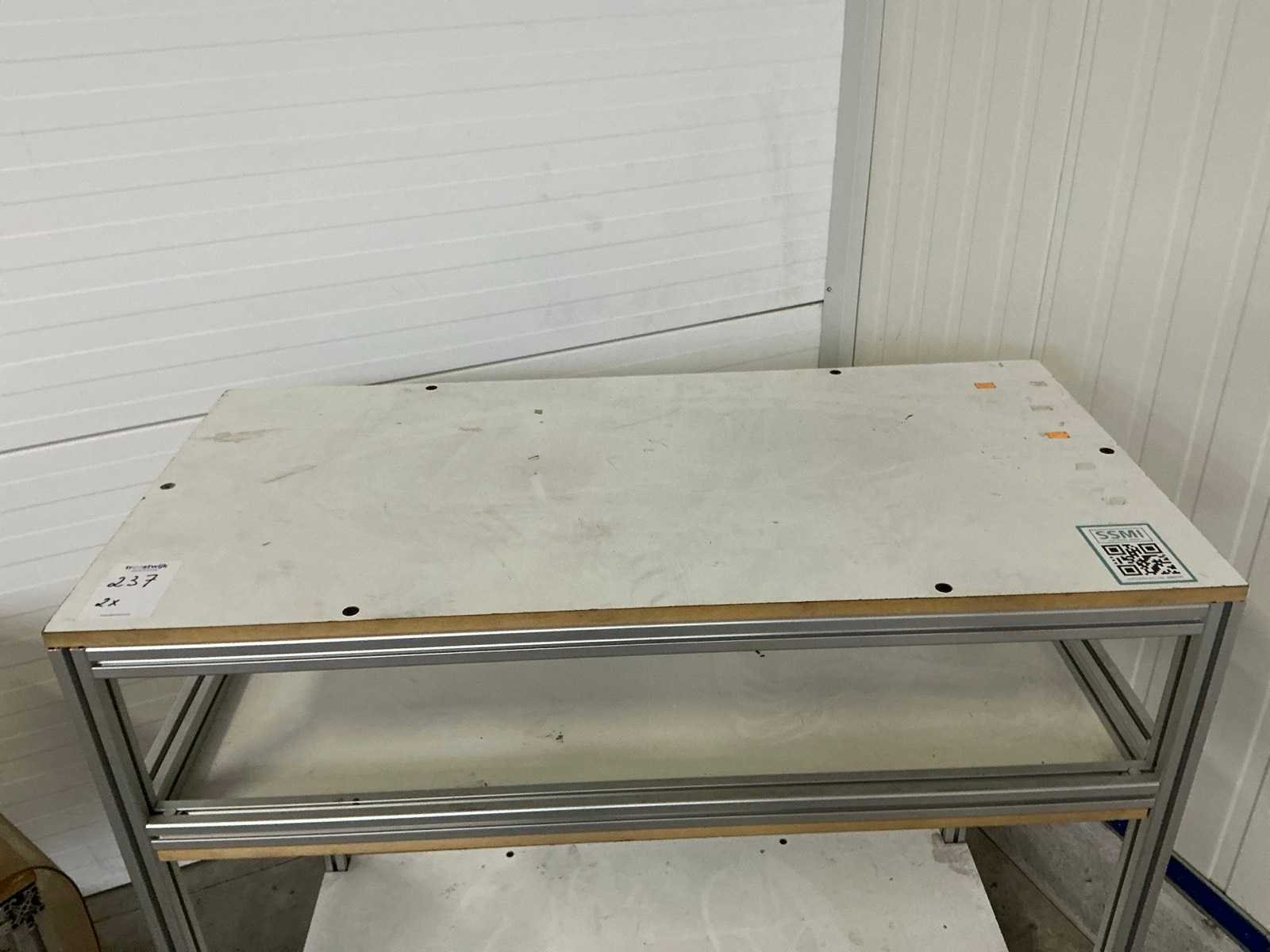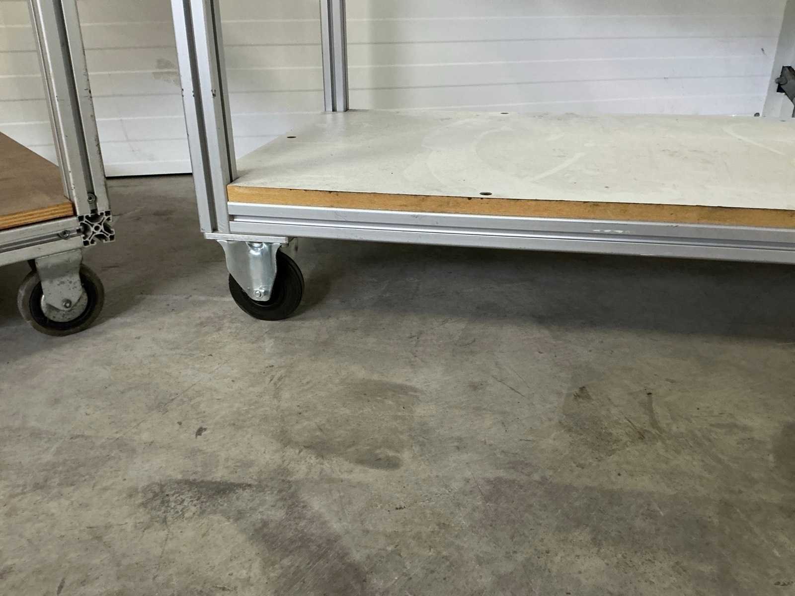 1x met 2 legborden 165x80x95cm LxBxH en 1x met 3 legborden 120x61x115cm LxBxH Nee