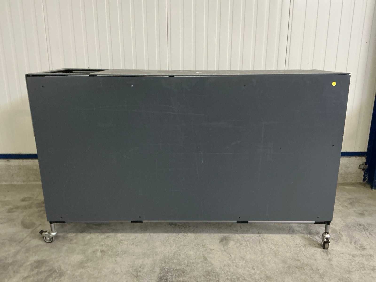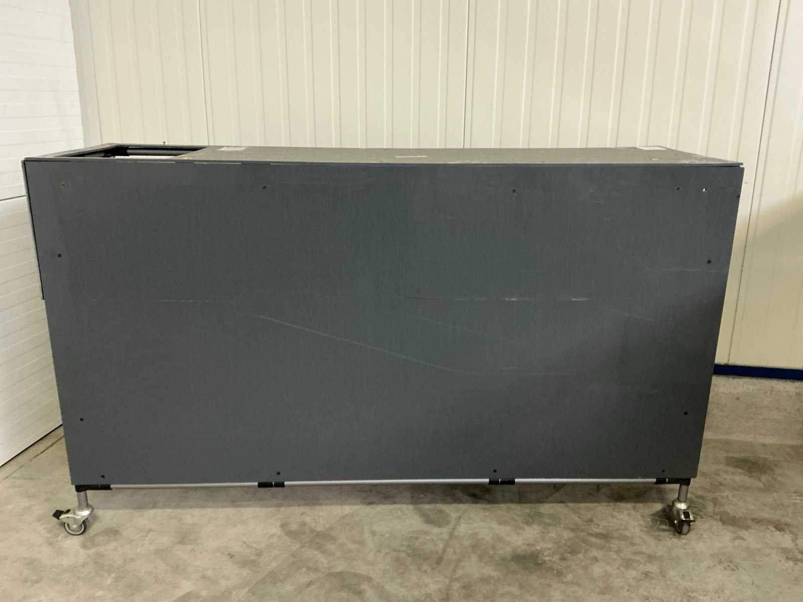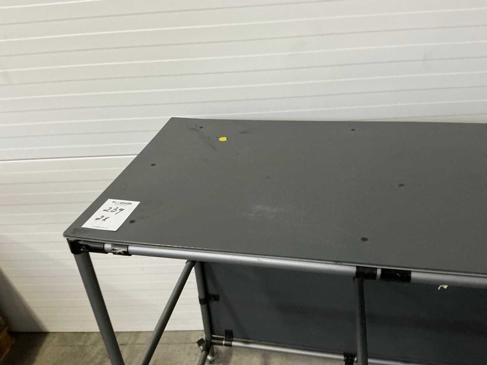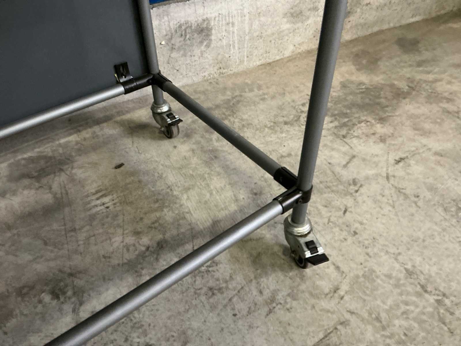 Legbordhoogte 20 en 70cm mogelijk; nu zonder legbord; voorzien van 4 zwenkwielen met rem; met achterwand Nee Lengte: 201cm Breedte: 60cm Hoogte: 121cm Materiaal: Kunststof