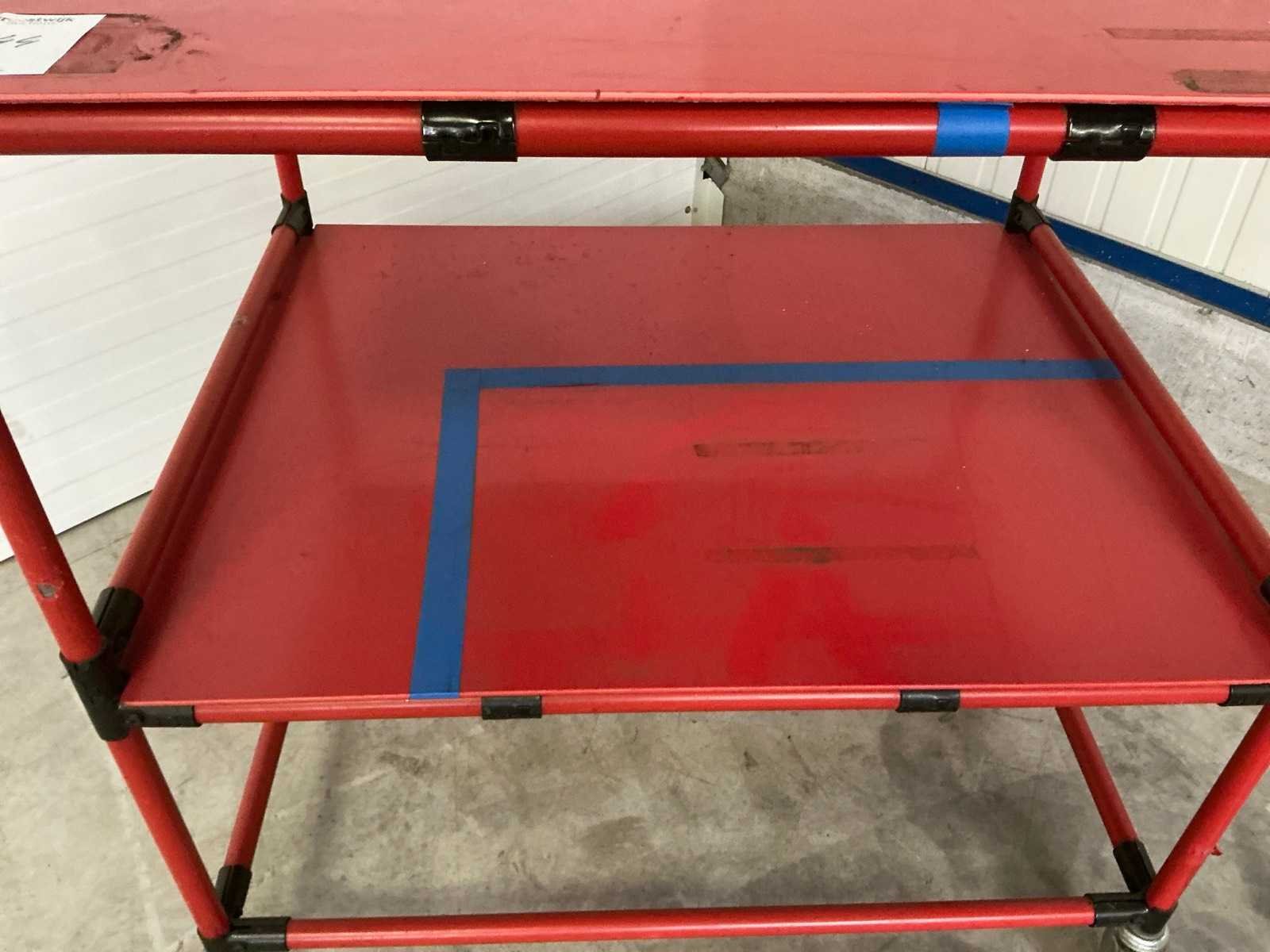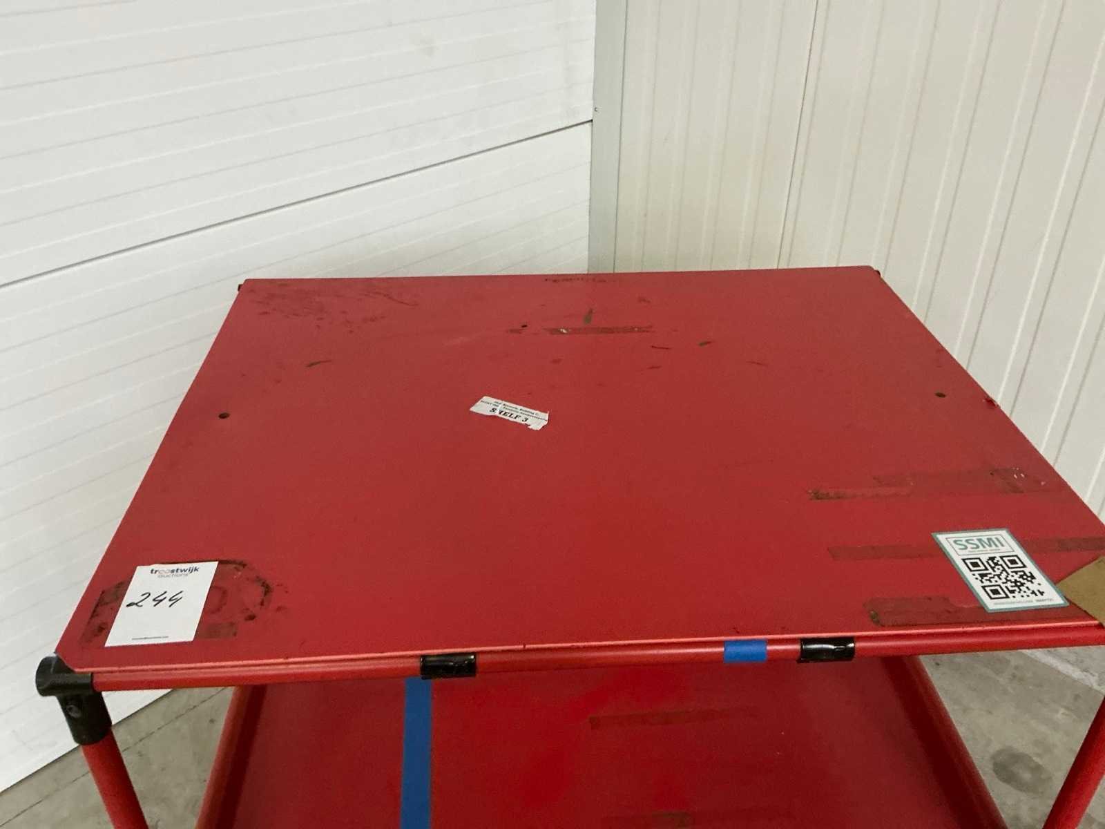 Legbordhoogte = 18 en 56cm; voorzien van 4 zwenkwielen met rem Nee Lengte: 103cm Breedte: 80cm Hoogte: 103cm