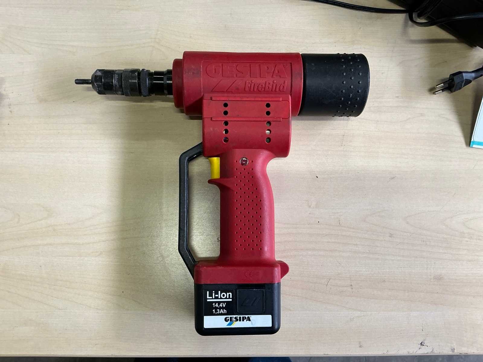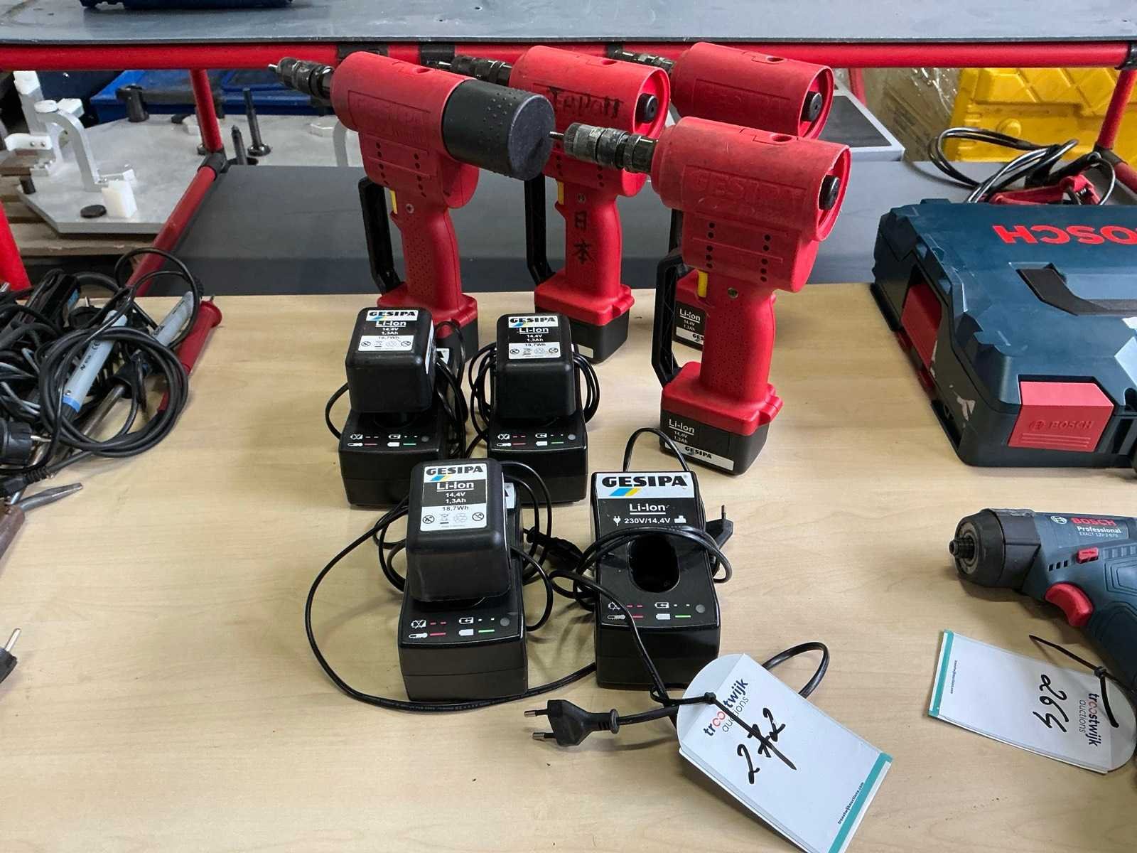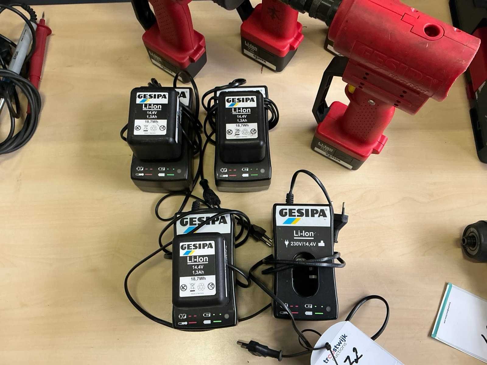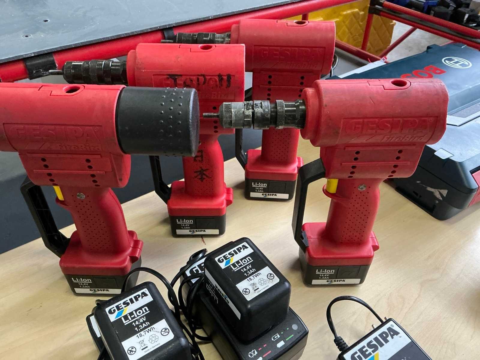 7 accu’s 14,4 volt; 4 laadstations Nee Merk: GESIPA Type: Firebird