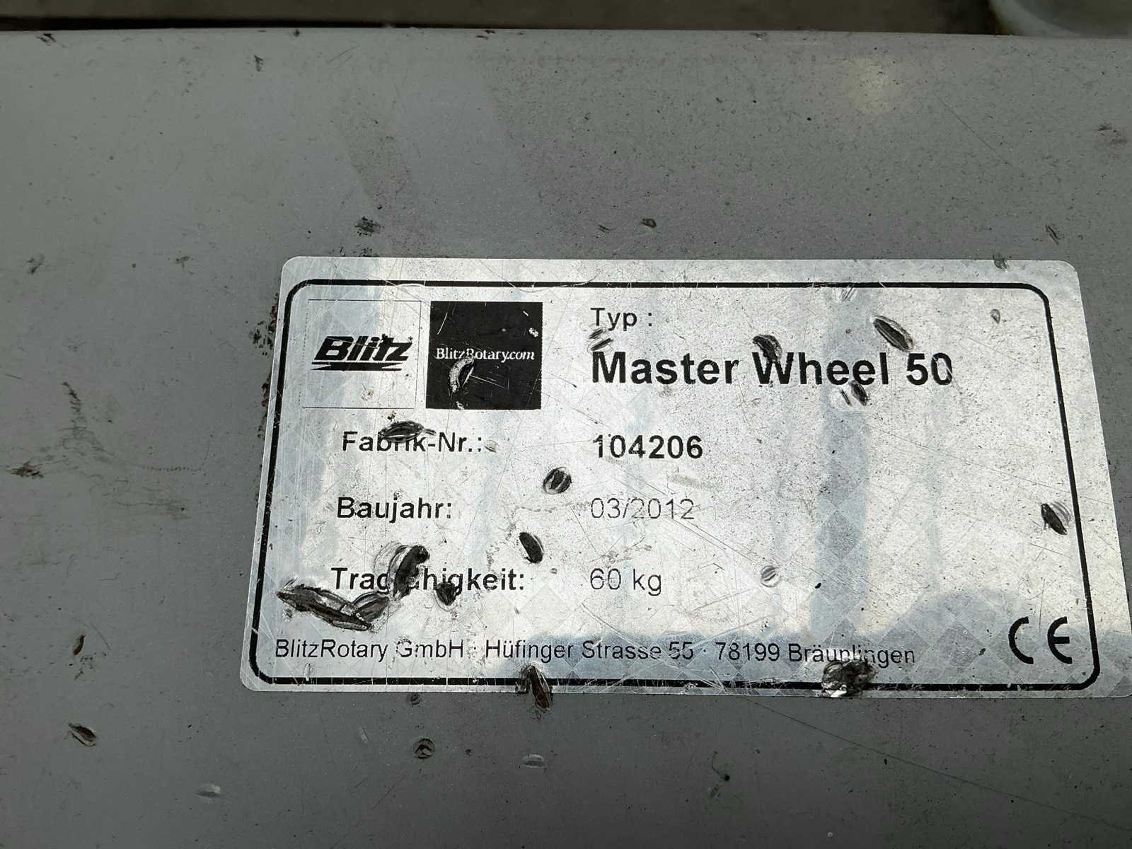 Draagvermogen 60kg Nee Merk: BLITZ Type: Master wheel 50 Bouwjaar: 2012 Serienummer: 104206 Totale afmeting L: 740mm Totale afmeting Breedte: 840mm Totale afmeting Hoogte: 1870mm