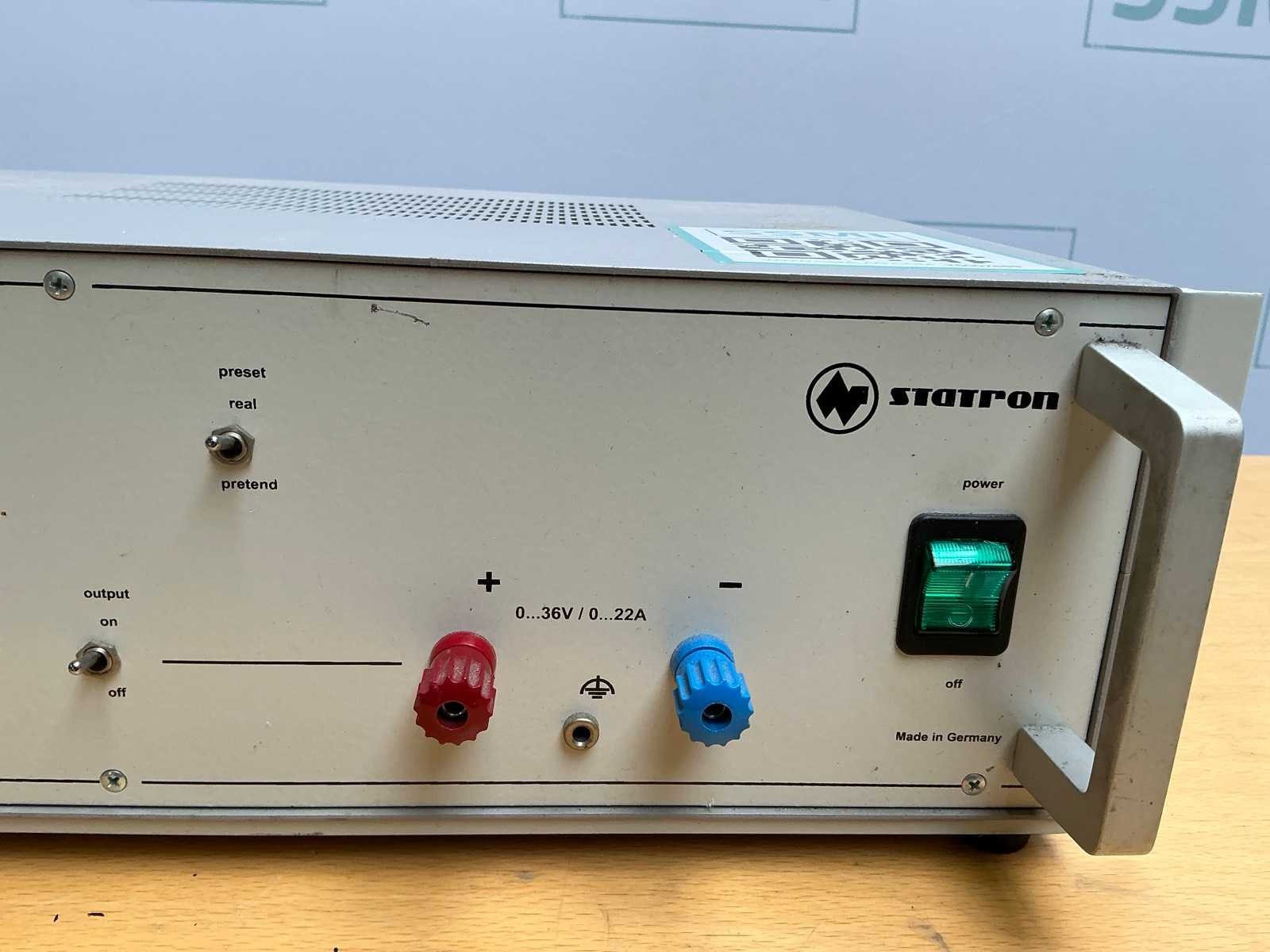 Geschikt voor 19’ rekmontage; output regelbaar 0-36 Vdc / 0-22A Nee Merk: STATRON Type: 3254.1 Serienummer: 0805001 Aansluiting: 230V Totale afmeting L: 480mm Totale afmeting Breedte: 380mm Totale afmeting Hoogte: 140mm