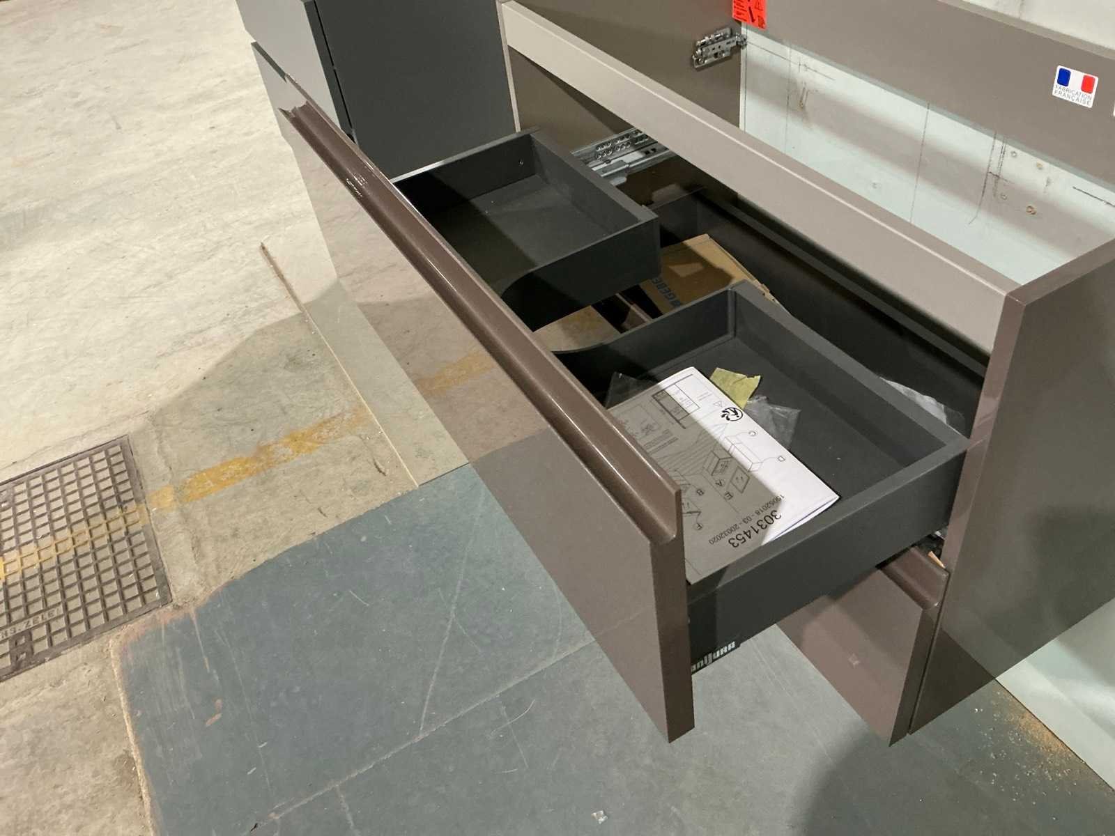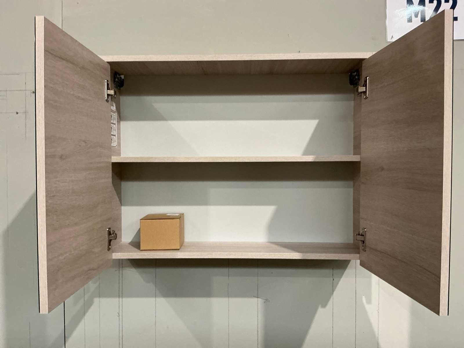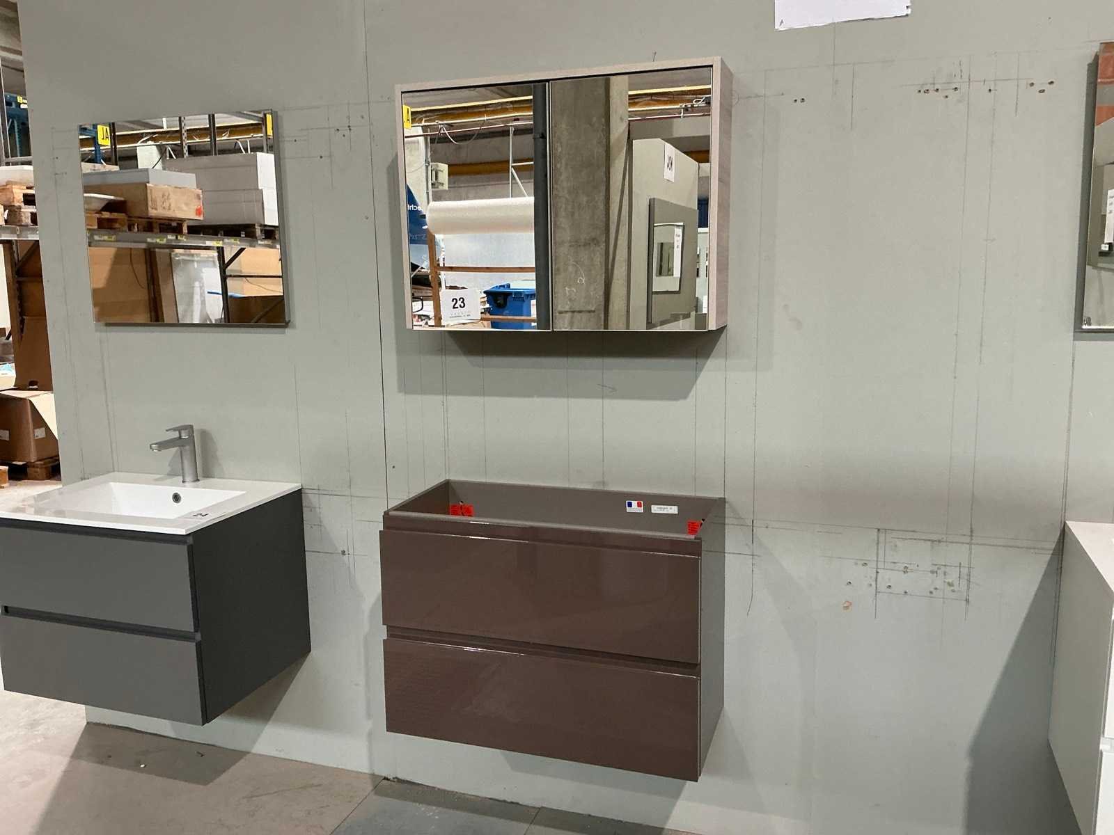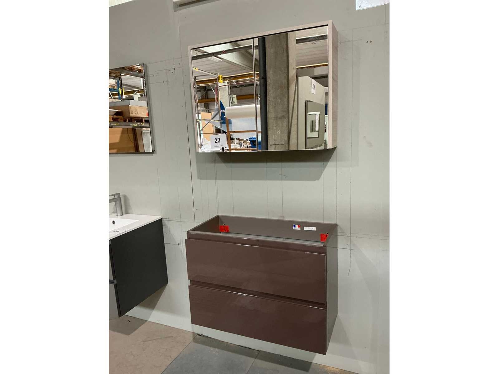 Onderkast voorzien van 2x schuiflade met afmetingen ca. 80 x 40 x 57cm + spiegelkast voorzien van 2x deur met afmetingen 80 x 60 x 20cm. Door koper te demonteren van omgeving. Nee