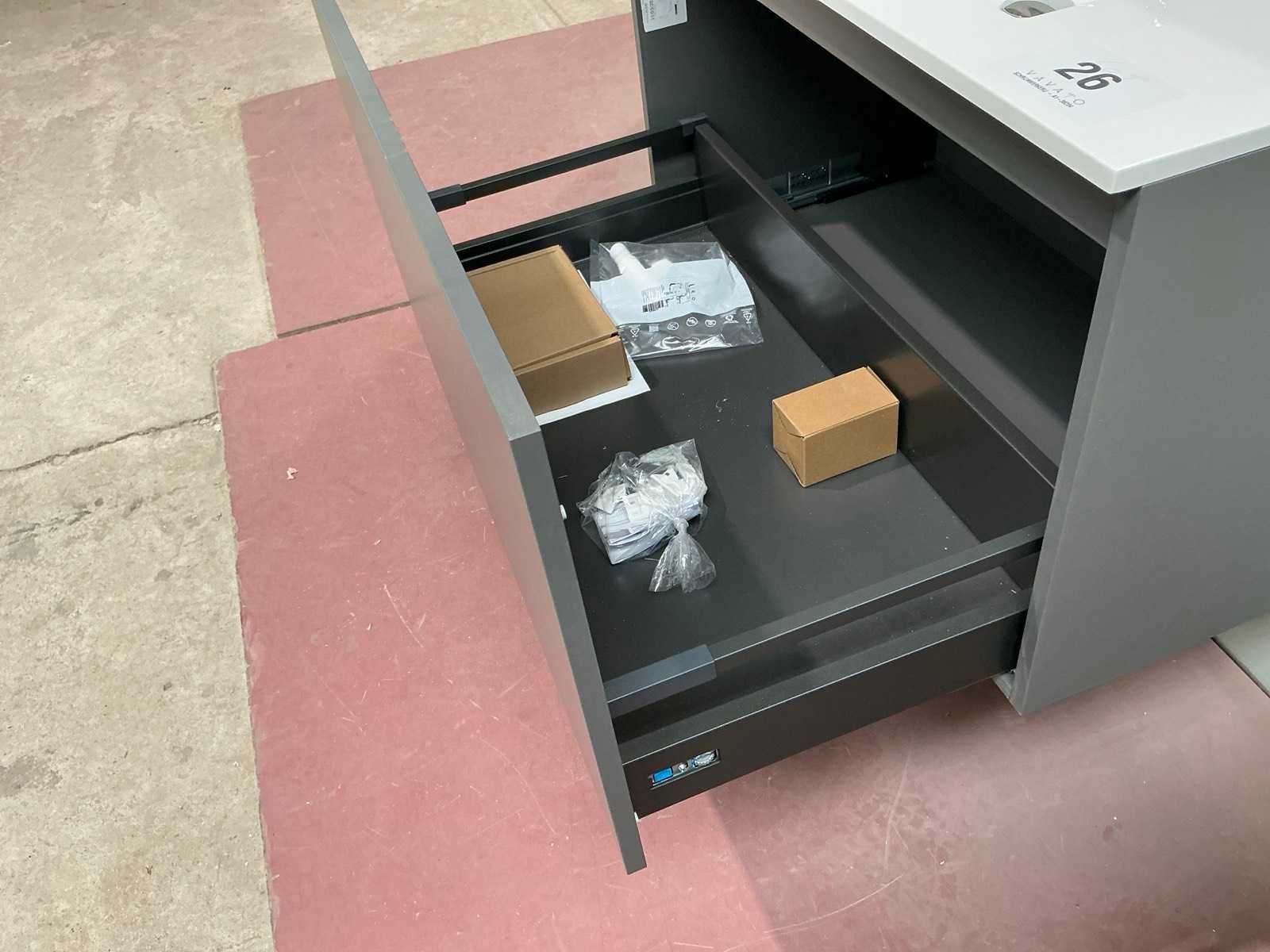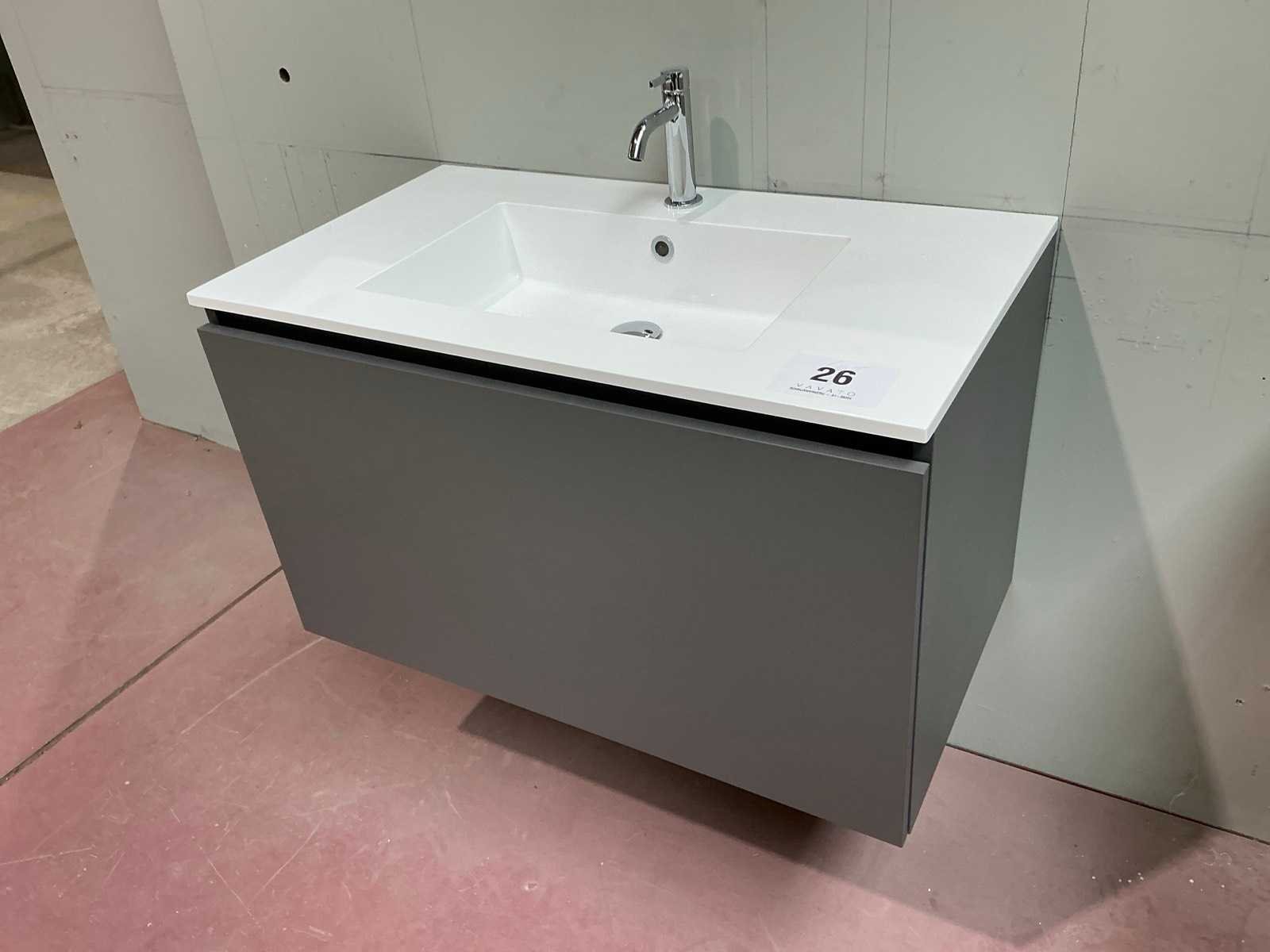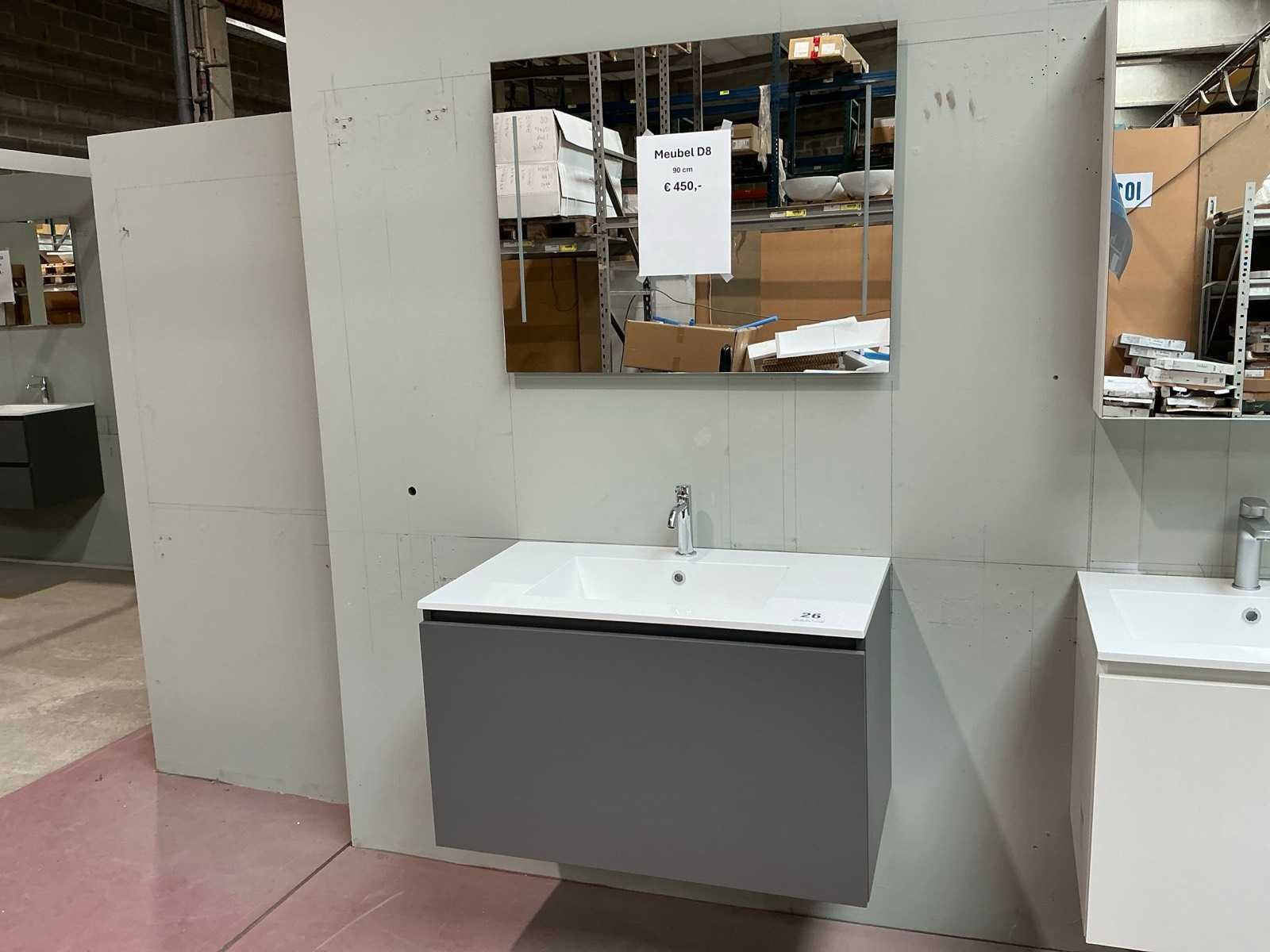Voorzien van 1x schuiflade en enkele wastafel. Compleet met kraanwerk Sky en spiegel voorzien van ledverlichting met afmetingen ca. 90 x 70cm. Door koper te demonteren van omgeving. Nee Lengte: 90cm Breedte: 50cm Hoogte: 53cm