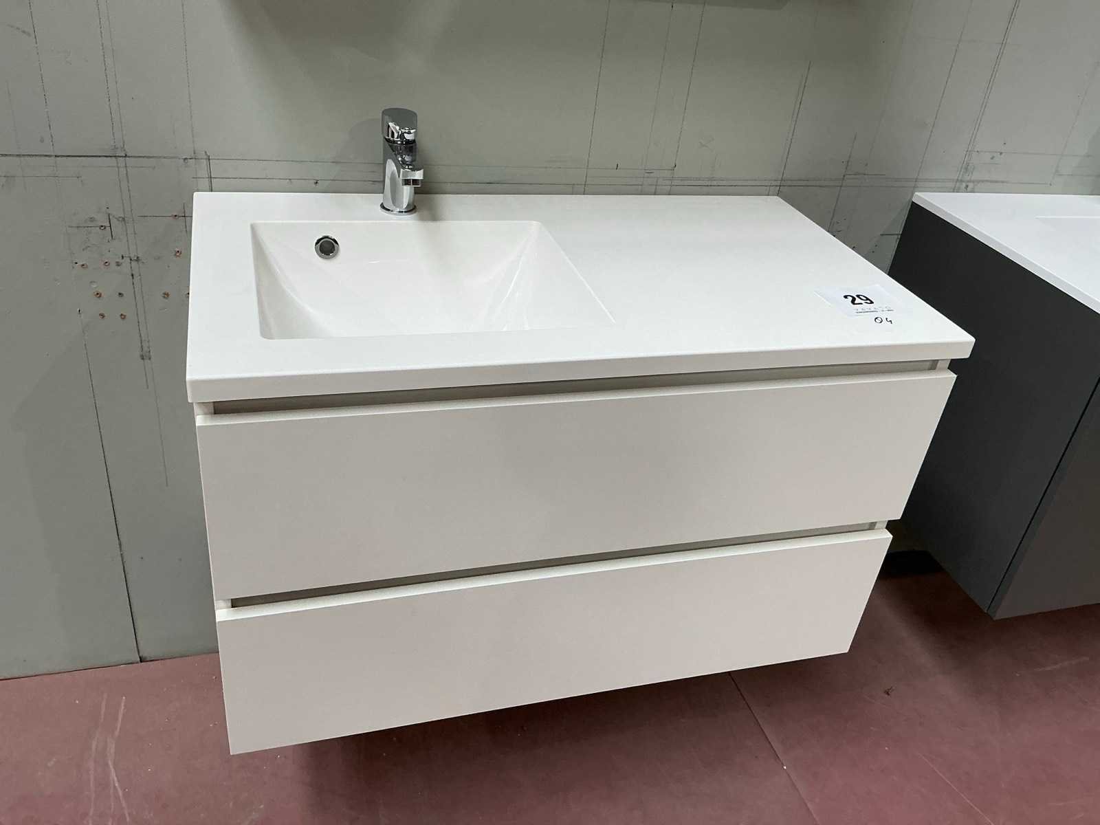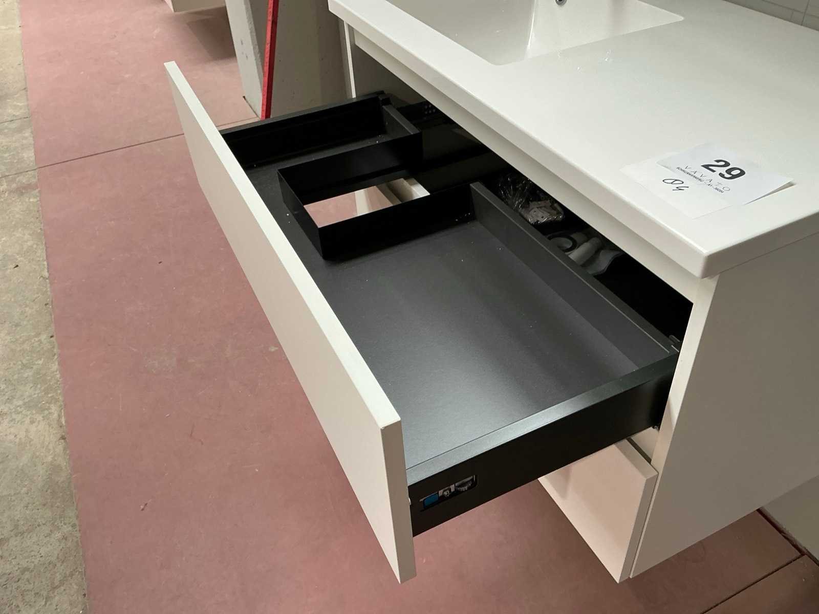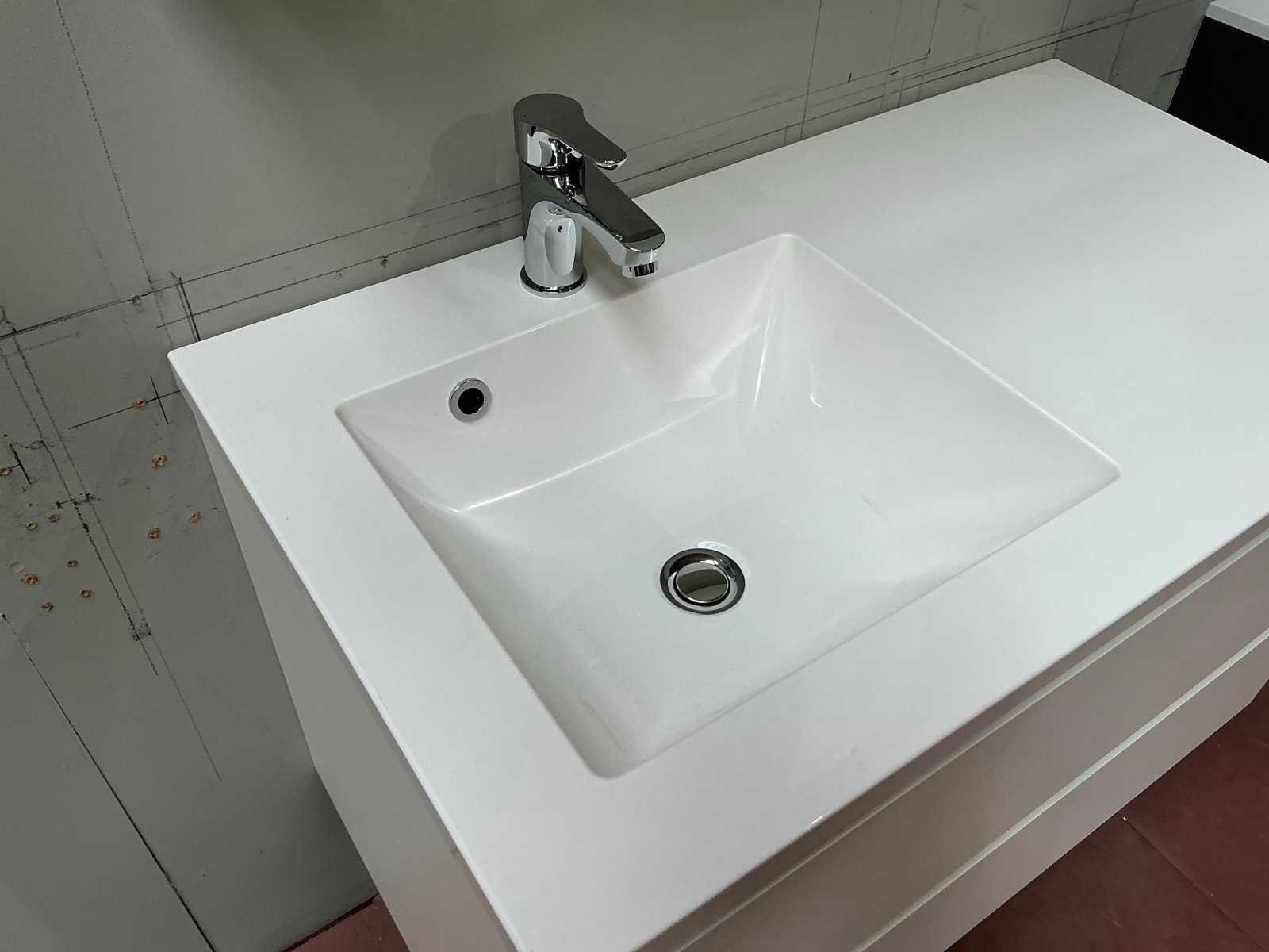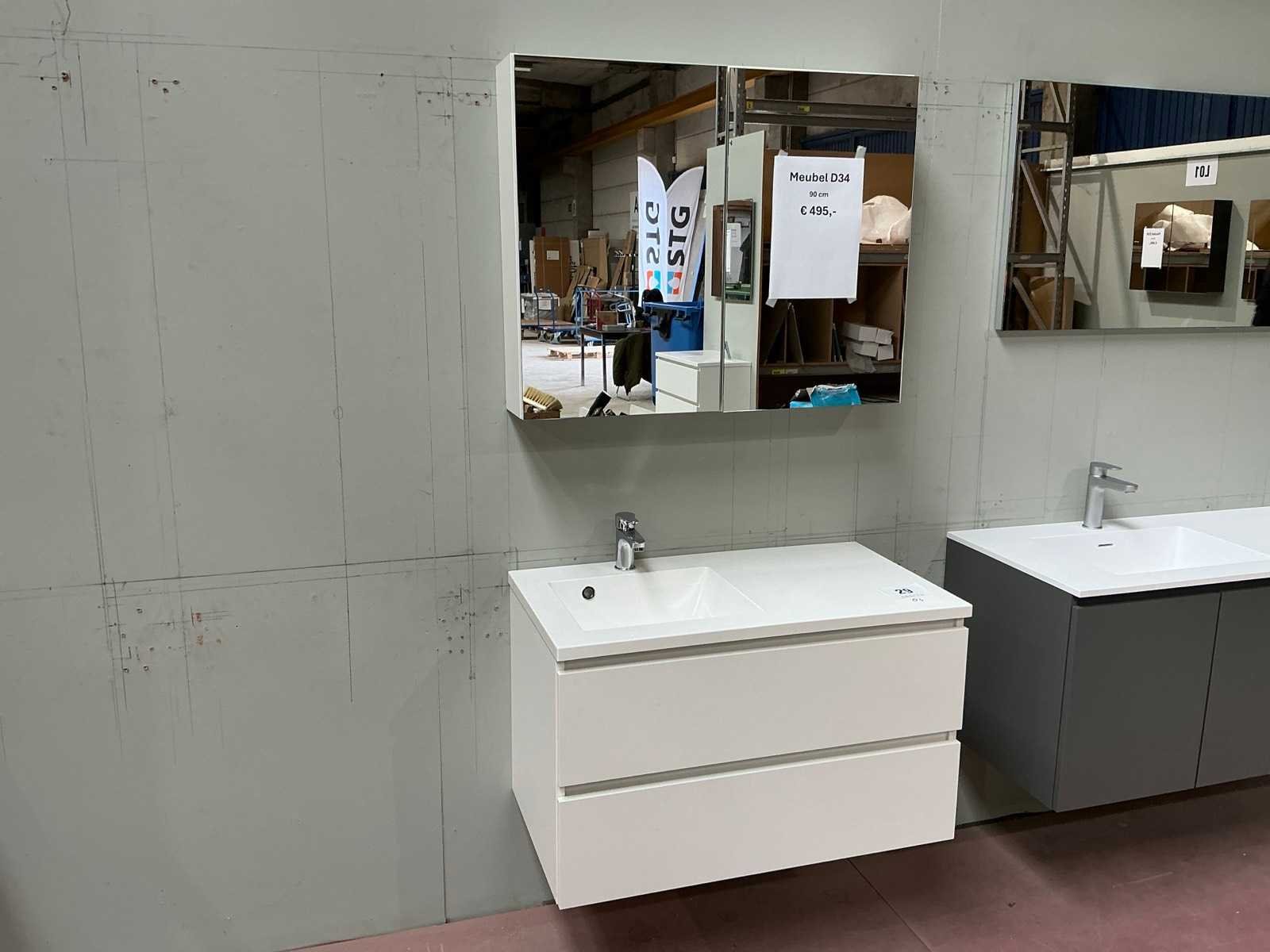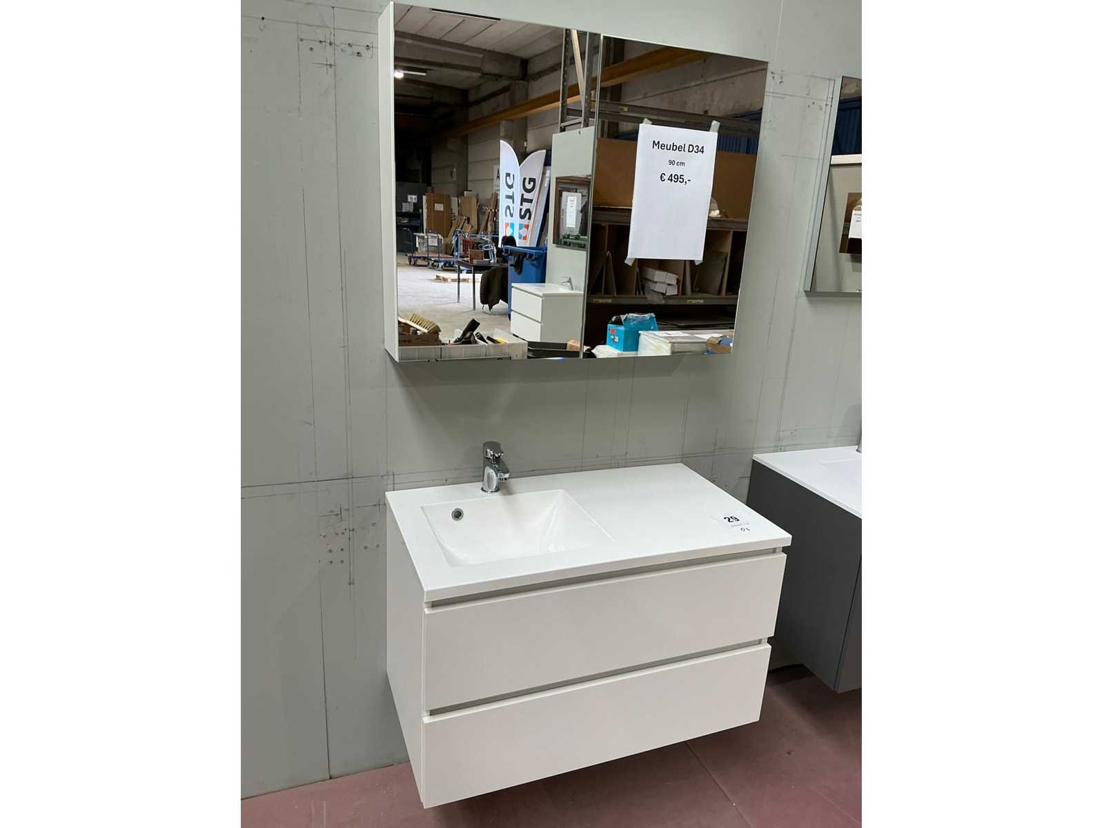 Voorzien van 2x schuiflade en enkele wastafel. Compleet met kraanwerk Ideal Standard en spiegelkast met afmetingen ca. 90 x 72x 18cm. Door koper te demonteren van omgeving. Nee Lengte: 90cm Breedte: 50cm Hoogte: 55cm