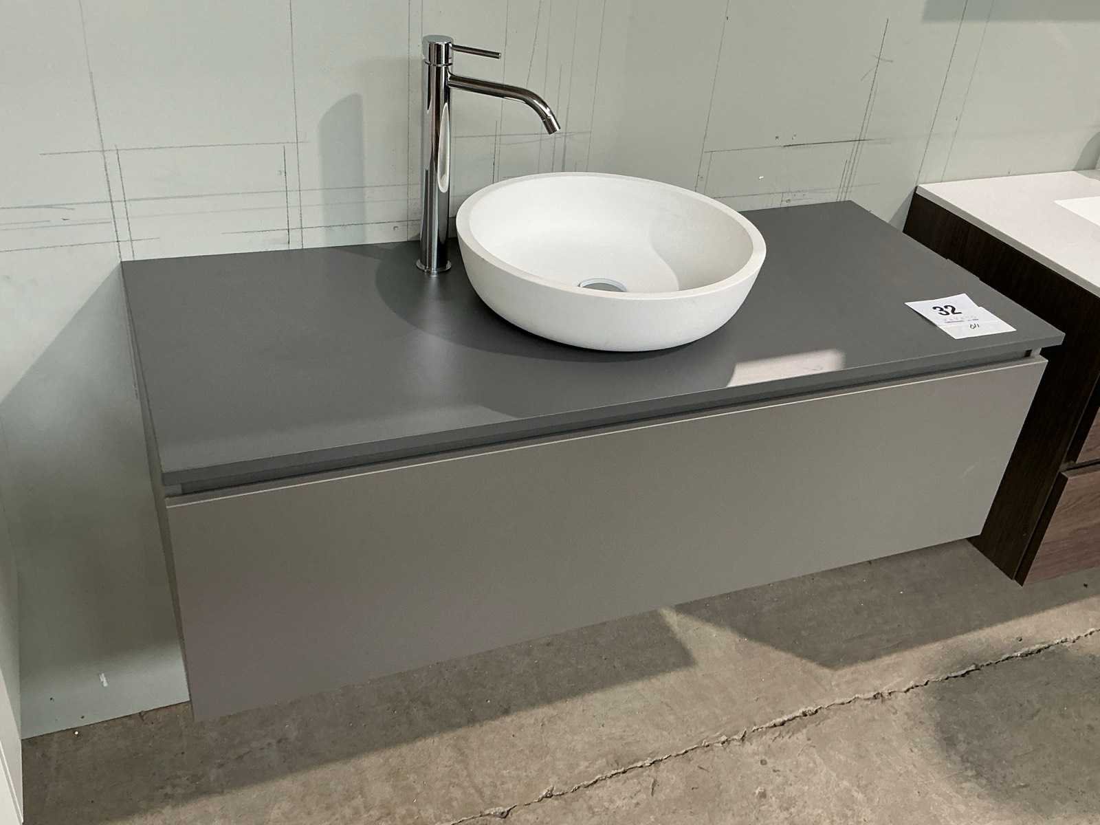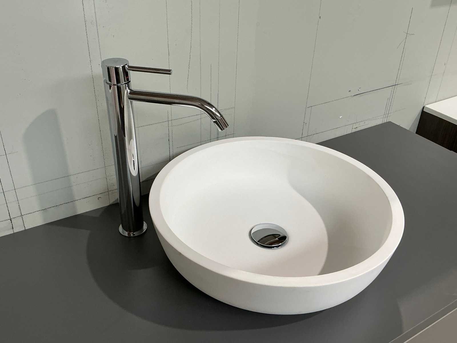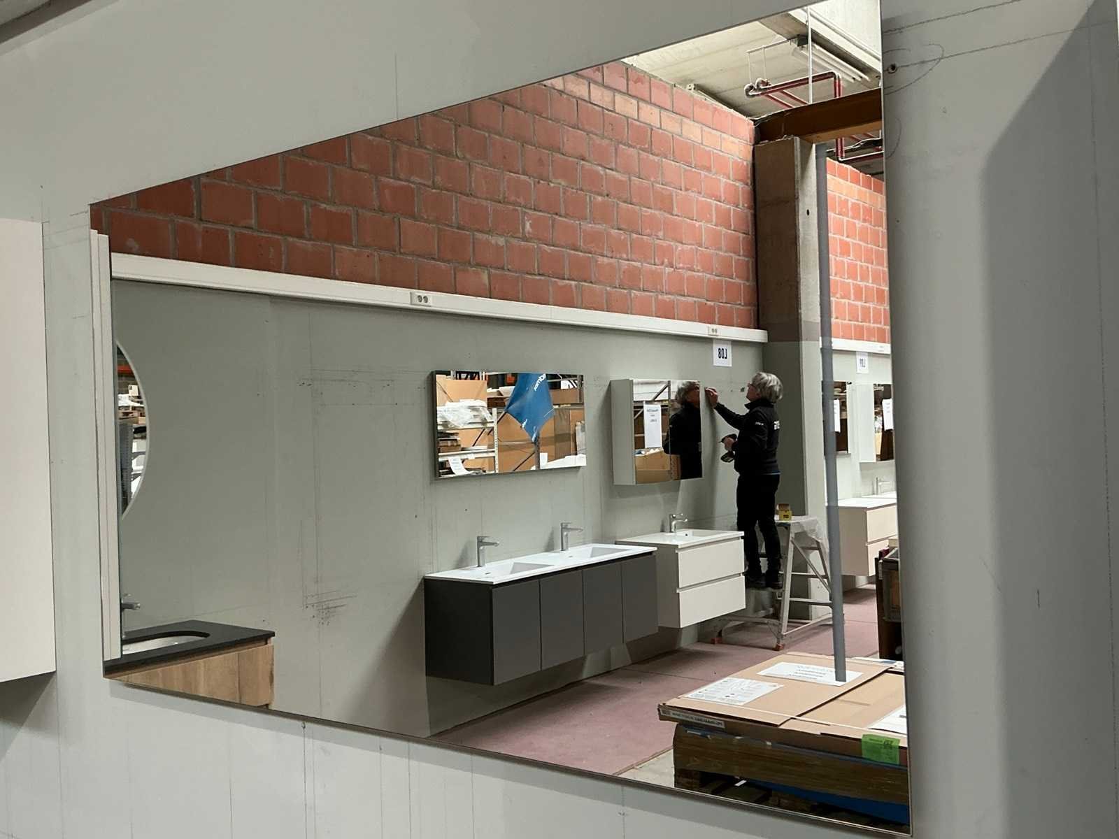 Voorzien van 1x schuiflade. Compleet met opbouw waskom, kraanwerk Paffoni en spiegel met afmetingen ca. 120 x 70cm. Door koper te demonteren van omgeving. Nee Merk: Sleurs Lengte: 120cm Breedte: 50cm Hoogte: 37cm