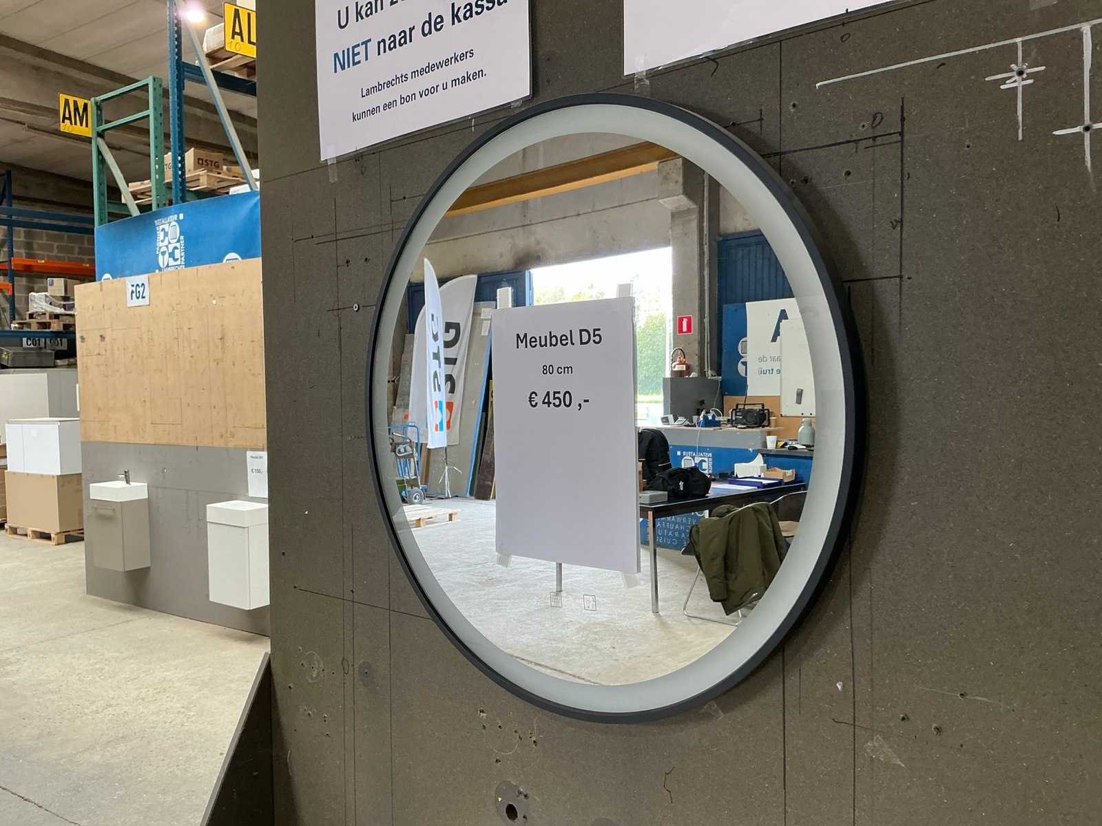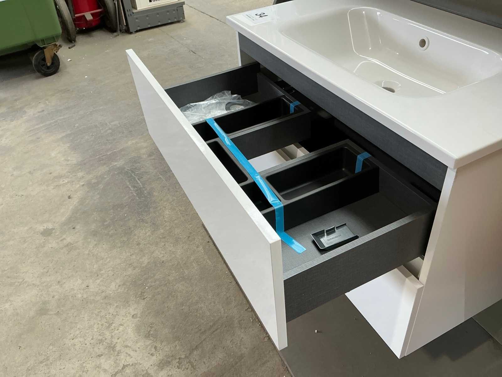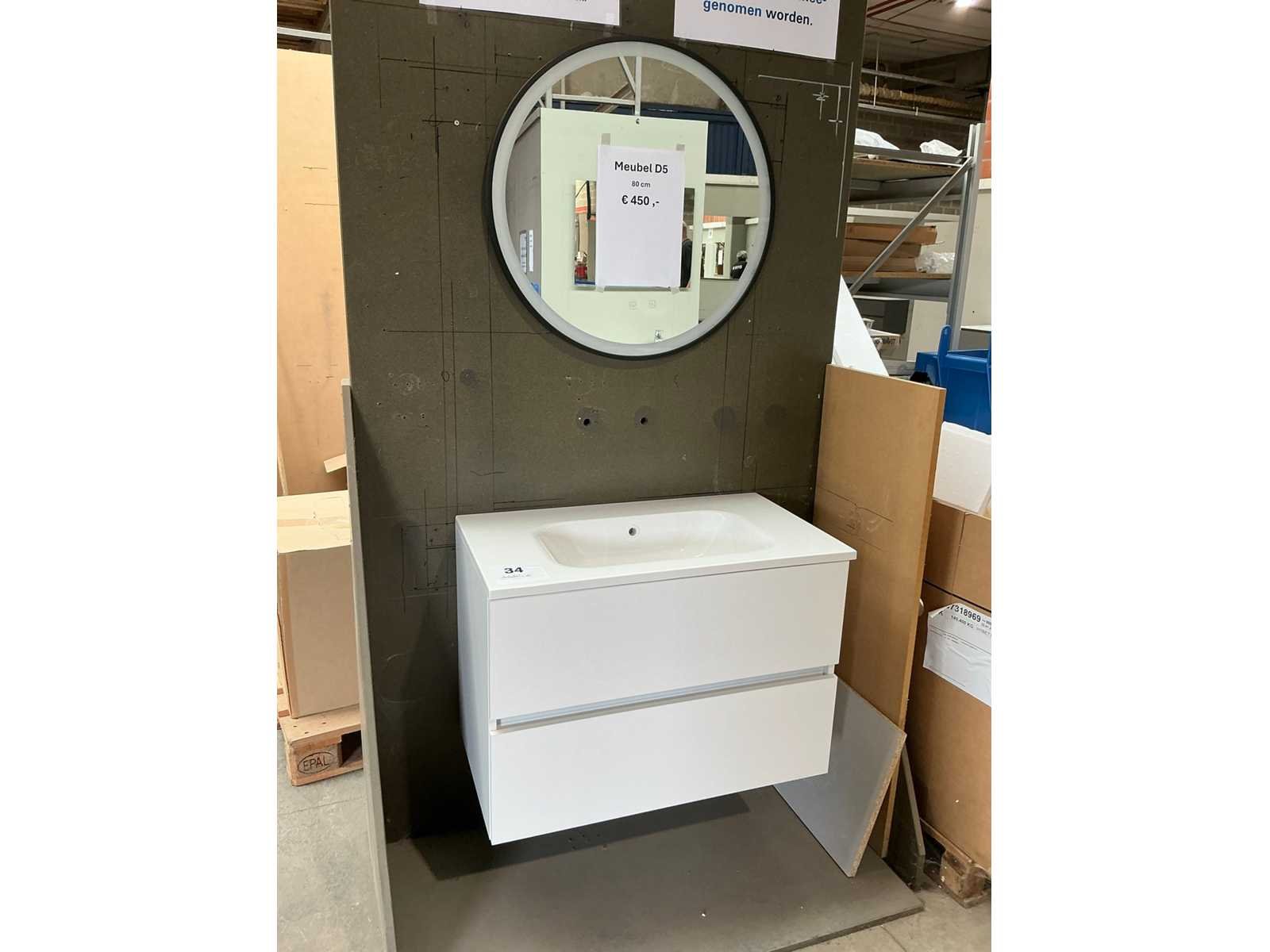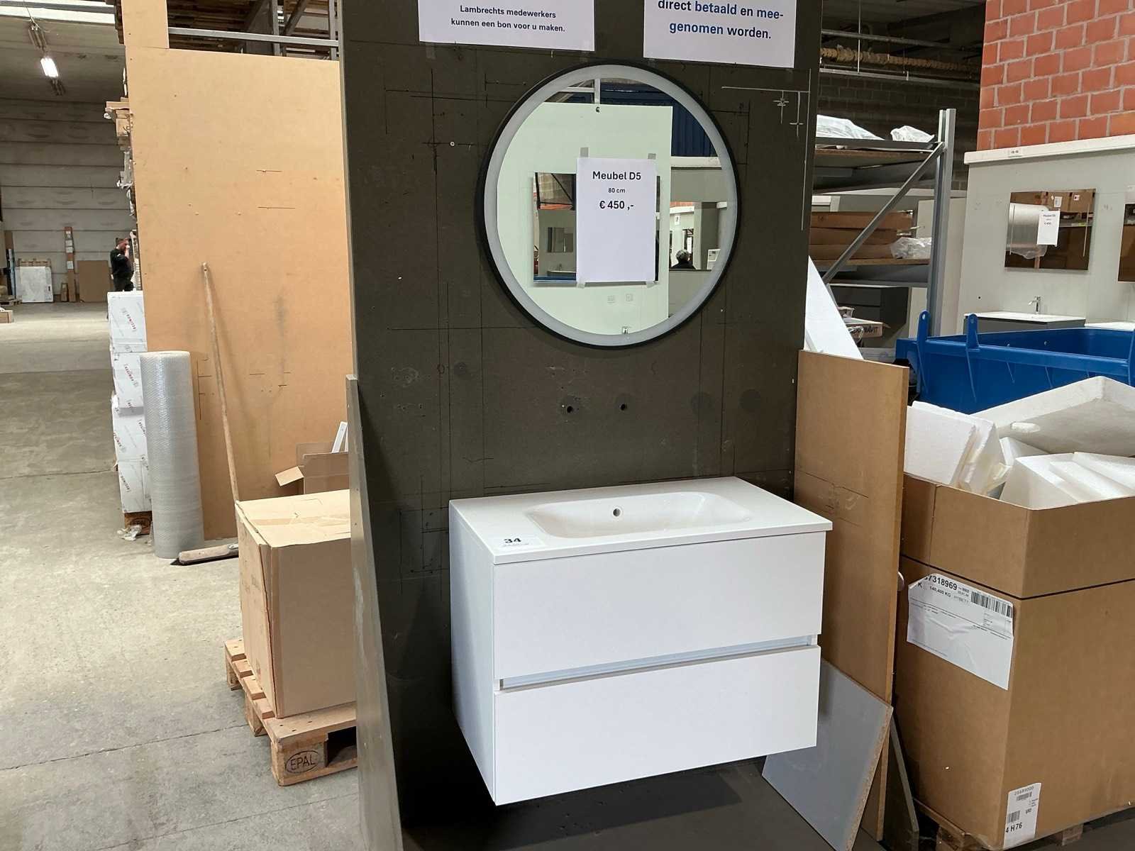 Voorzien van 2x schuiflade en enkele wastafel. Compleet spiegel voorzien van verlichting en verwarming met dia 70cm. Door koper te demonteren van omgeving. Nee Lengte: 90cm Breedte: 46cm Hoogte: 57cm