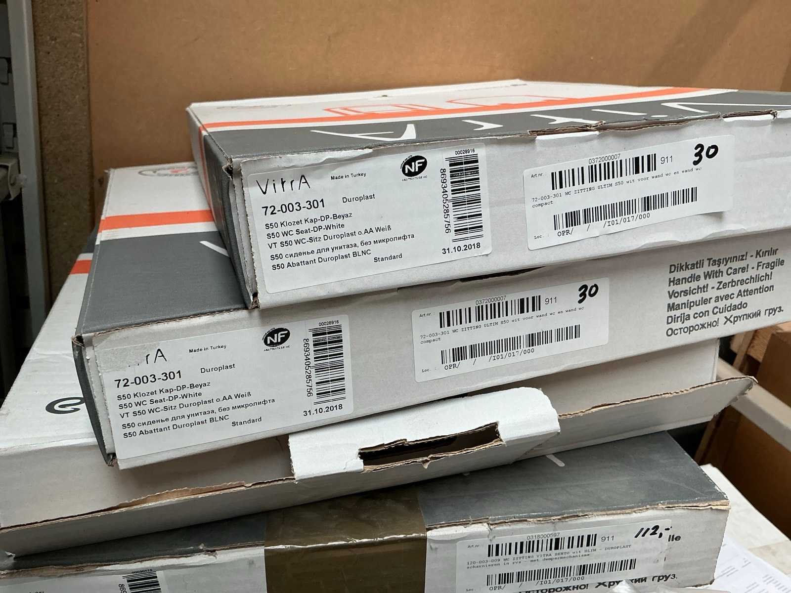 Waaronder Duravit, Villeroy & Boch en Vitra. Afgifte volgens aanwijzing. Nee