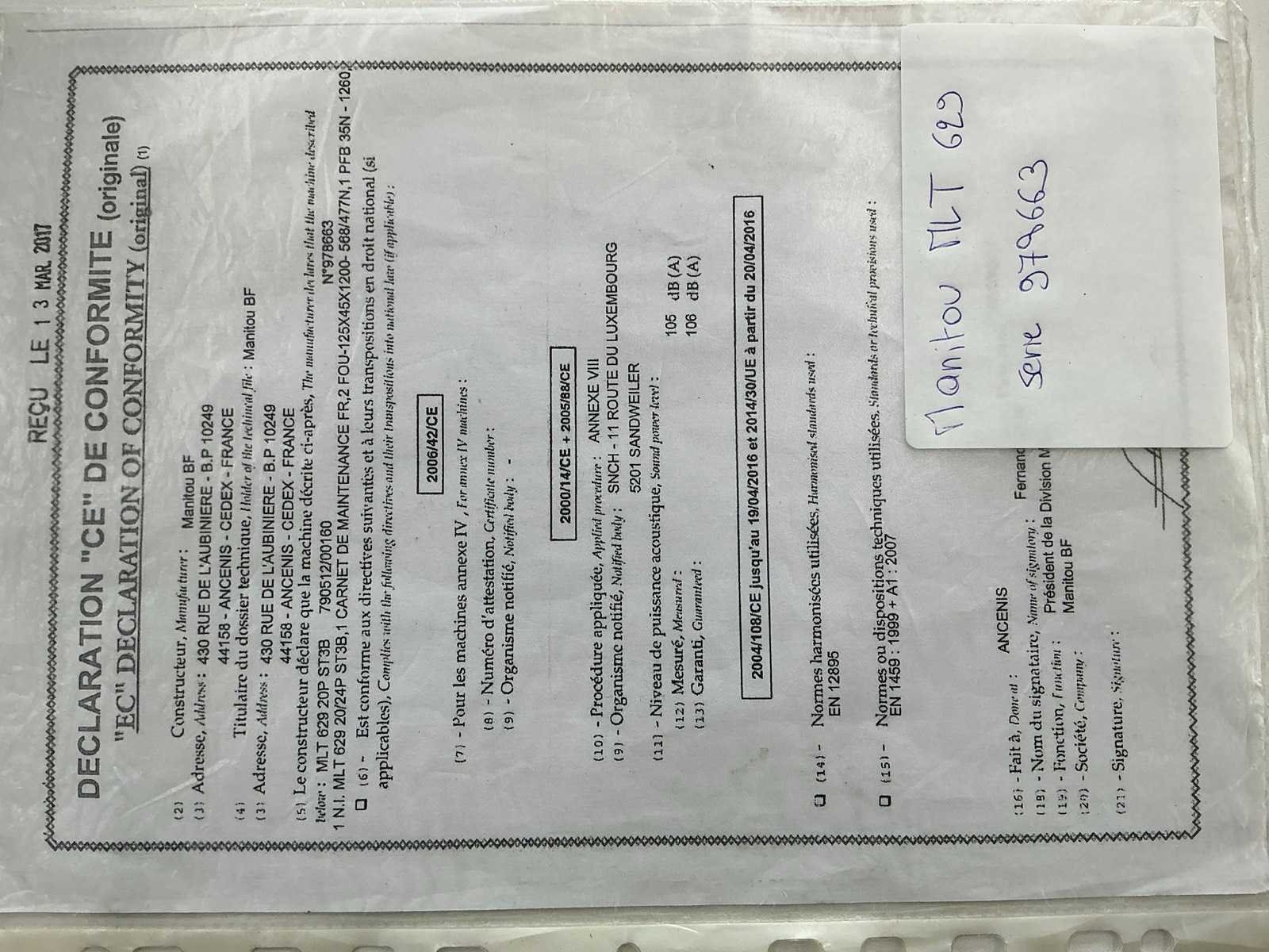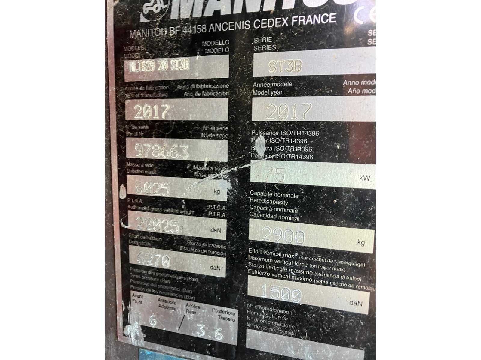 Cabine met airco , geveerde stoel , dubbel werkende hydraulisch ventiel op de mast , Manitou snelwissel , met origineel conformiteit attest No Merk: Manitou Type: ML 629 Bouwjaar: 2017 Serienummer: 978663 Motorvermogen (kW): 75kW Hefvermogen: 2900kg Hefhoogte: 6000mm Cabine: true Vierwielaandrijving 4x4: true Luchtbanden: true Afgelezen urenstand: 6918 Eigen gewicht: 6025kg Totale afmeting L: 4830mm Totale afmeting Breedte: 2000mm Totale afmeting Hoogte: 2210mm