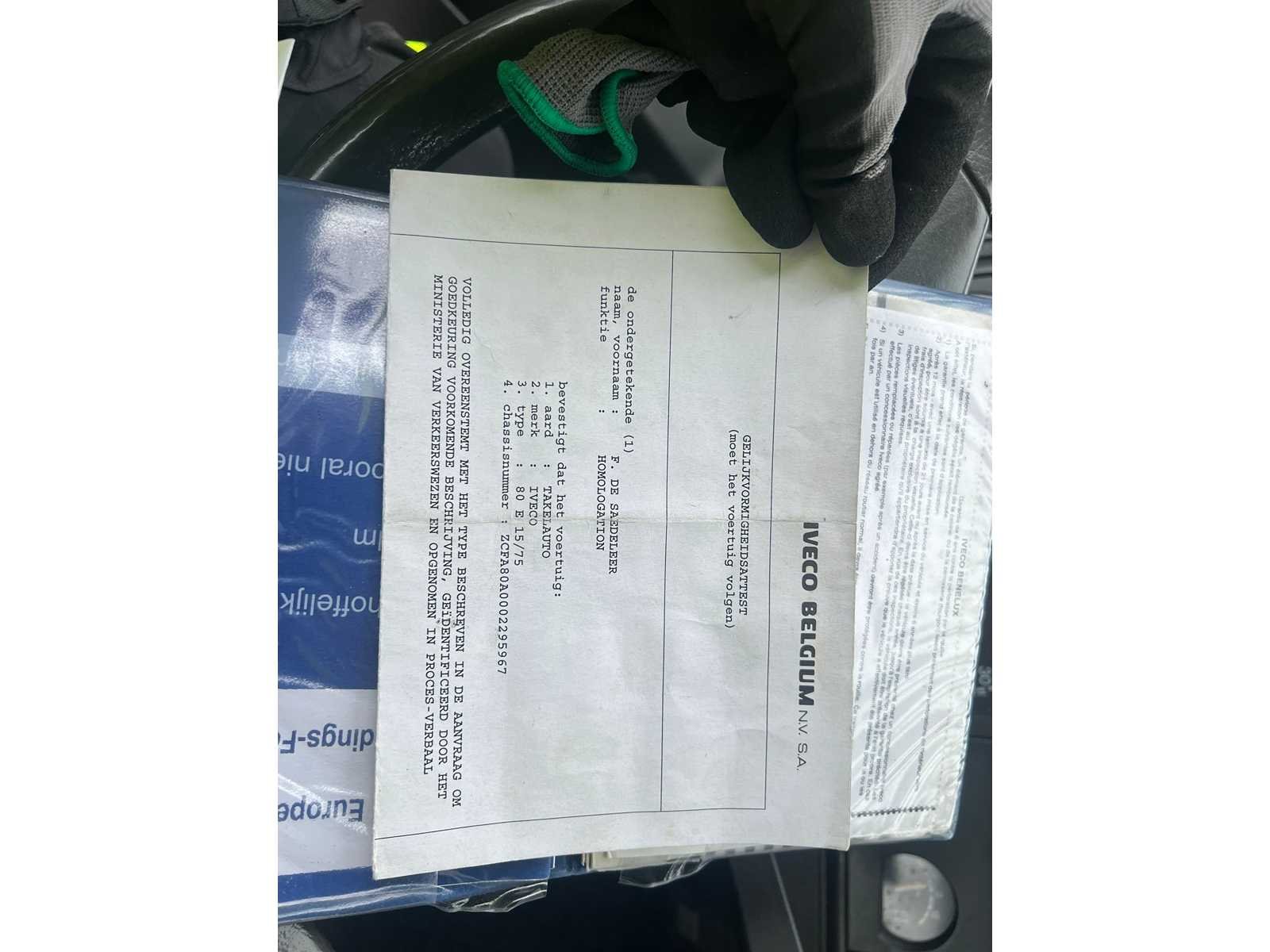1 STE EIGENAAR GOEDE STAAT ALLES WERKT PERFECT TOT OP HEDEN ALTIJD GEBRUIKT ALLE PAPIEREN EN SLEUTELS AANWEZIG Nee Merk: IVECO Type: 80E15/75TAKELWAGEN Bouwjaar: 2000 Chassisnummer VIN: ZCFA80A0002295967 Kilometerstand bij opname: 18732447km Datum eerste toelating: 09-03-2000 Type transmissie: Handmatig Emissieklasse: 2 Hydraulische laadklep: true Eigen gewicht: 4795kg Nationaliteit documenten: BELGIE Kentekenpapieren compleet?: true Diesel: true