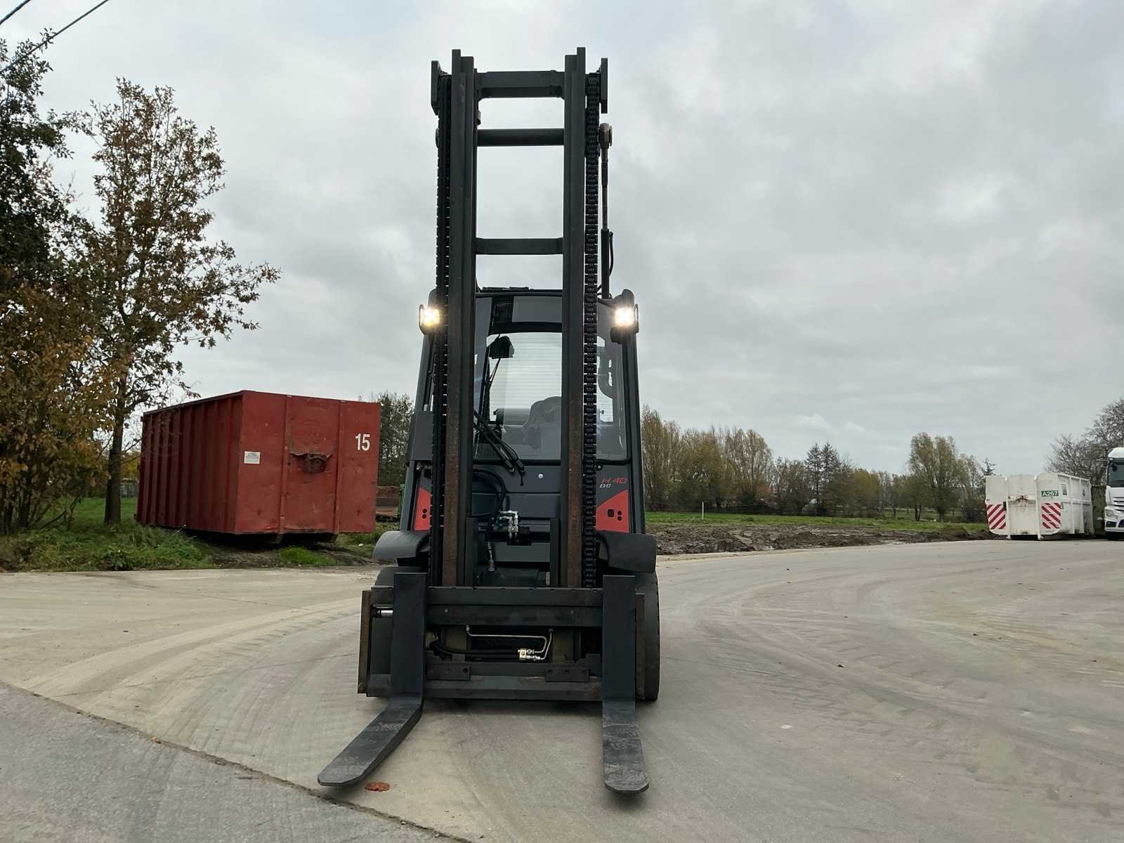 No Merk: Linde Type: H40T-02 Bouwjaar: 2014 Serienummer: H2X394E01272 Brandstof: LPG Mast: duplex Soort band: Volrubber banden Aantal wielen: 4 Afgelezen urenstand: 5200 Side-shift: true Duplex mast: true Eigen gewicht: 6235kg Hefvermogen: 4000kg Lepellengte: 1200mm Min. hefhoogte: 0mm Hefhoogte: 5000mm Vol rubber banden: true Totale afmeting L: 3200mm Totale afmeting Breedte: 1300mm Totale afmeting Hoogte: 3300mm LPG: true