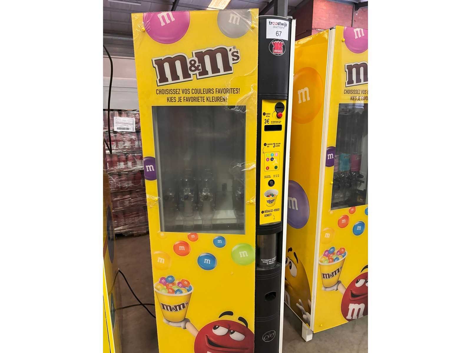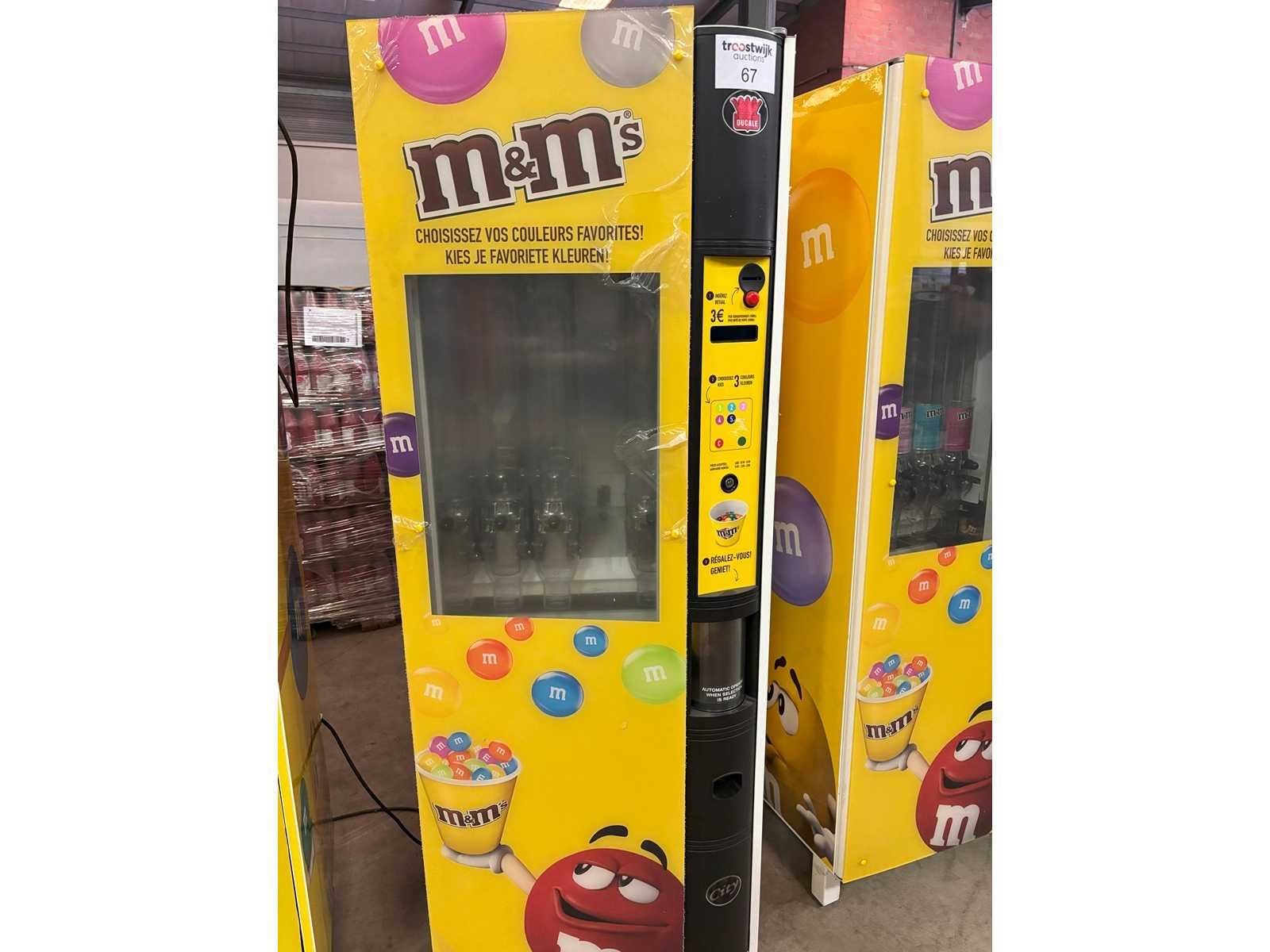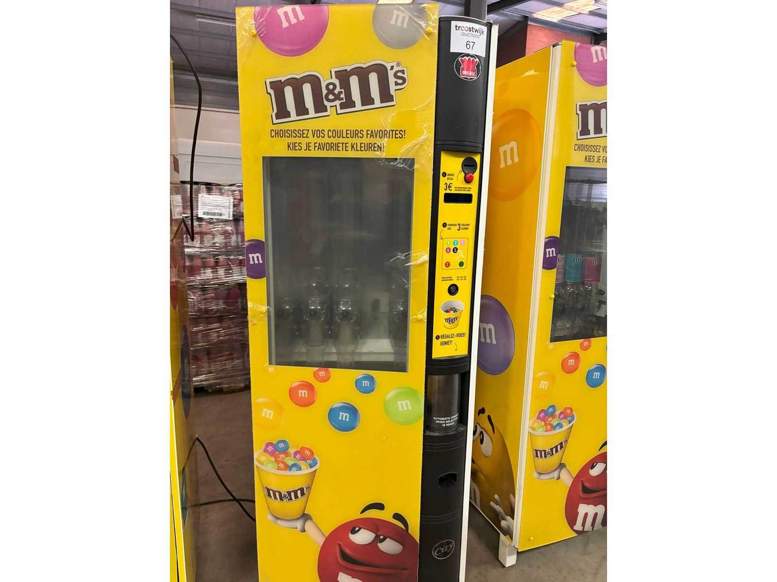 Automaat voor verkoop van M&M's of andere soorten snoep of nootjes in staat waarin toestel zich bevindt Nee Merk: Ducale Model: Bulkvendor Kleur: Geel Gewicht: 250kg Lengte: 80cm Breedte: 80cm Hoogte: 183cm
